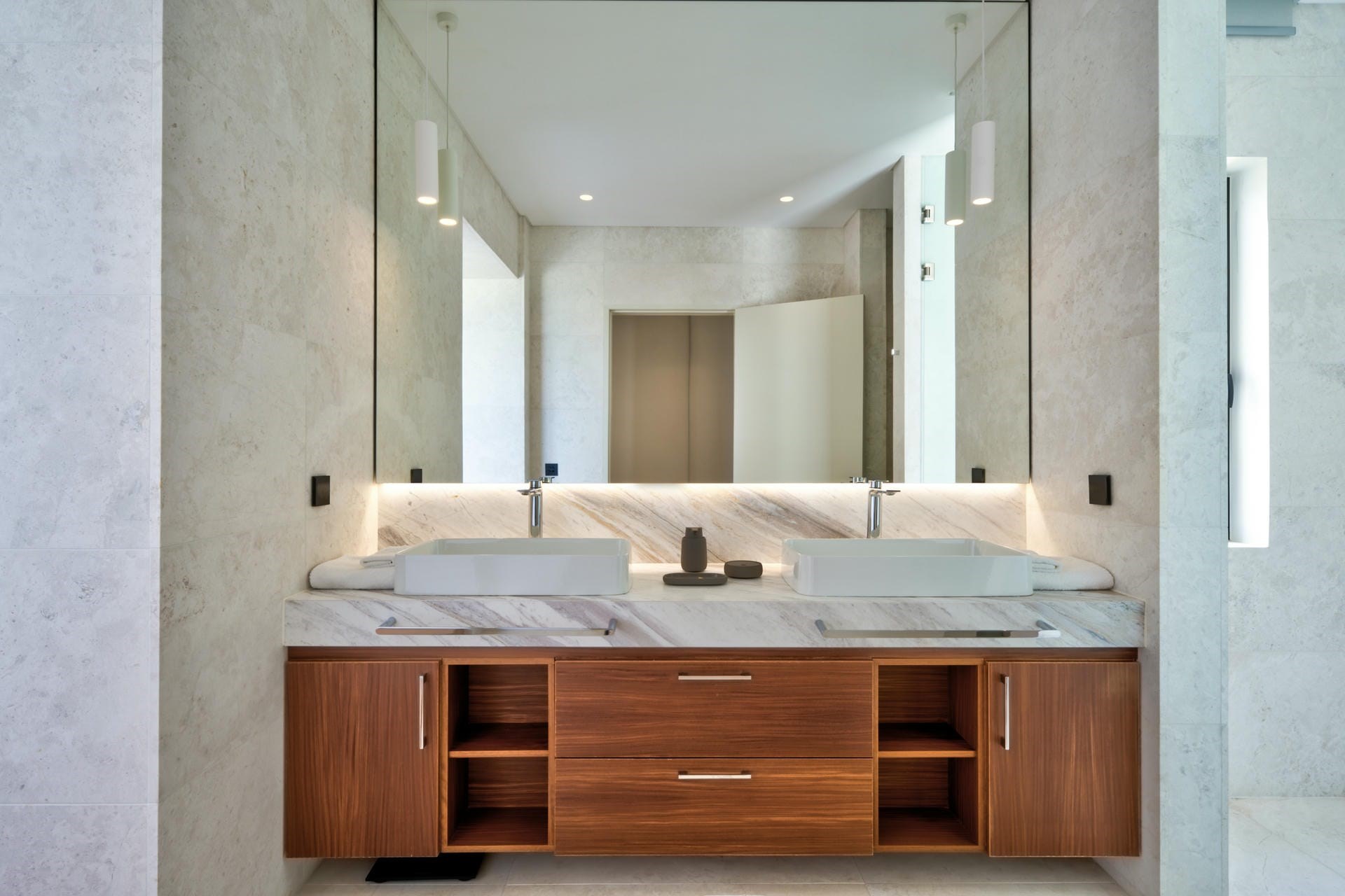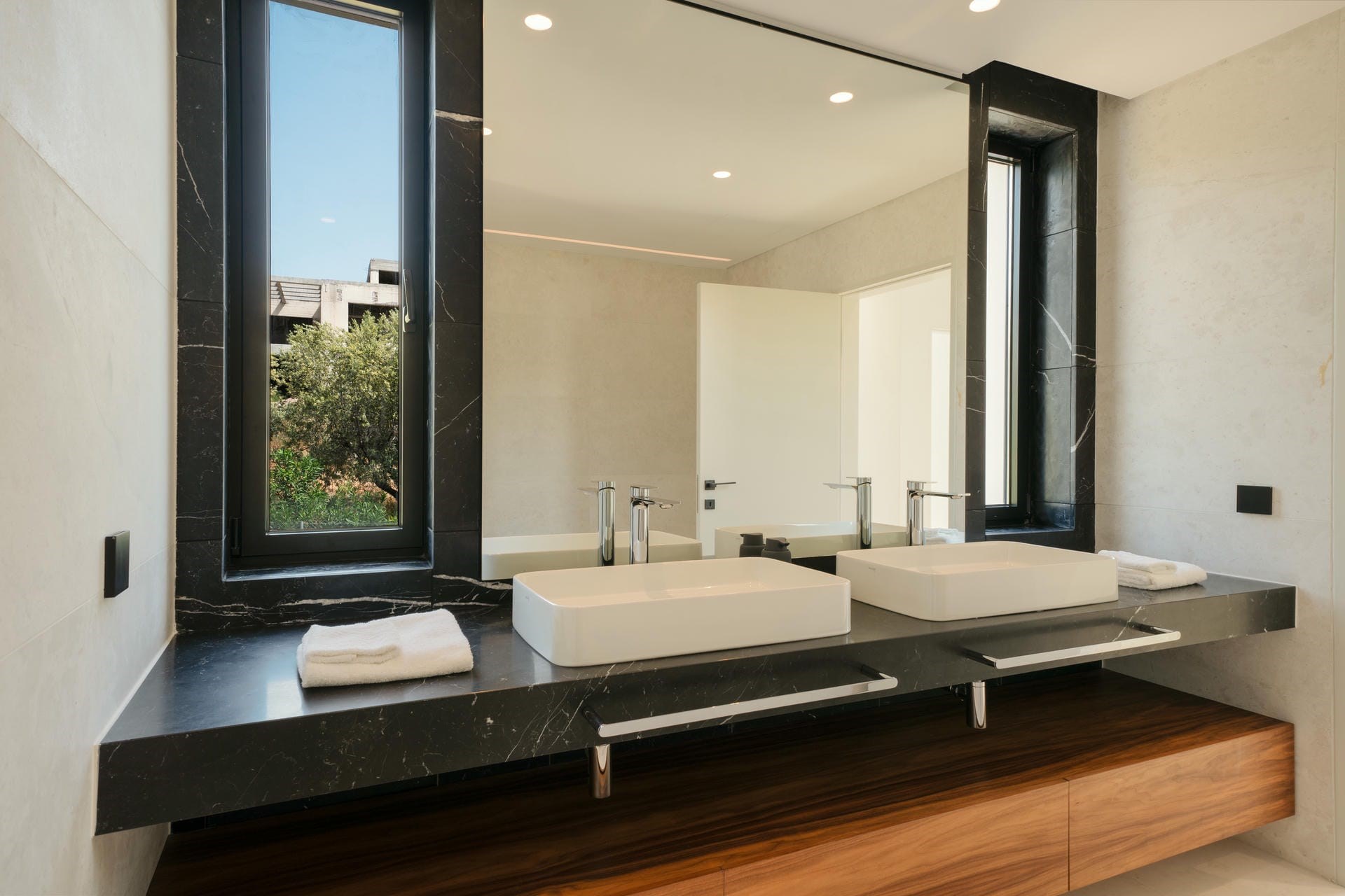 Moreover, the villa features a roof terrace for quieter moments and a series of outdoor living and dining areas that make the most of the spectacular views. A barbecue area and outdoor kitchen make everything easy for laid-back meals at home, while spa facilities, including a hammam, sauna, and plunge pool, add an indulgent edge. Every detail has been carefully curated for ultimate relaxation and seamless indoor-outdoor living.