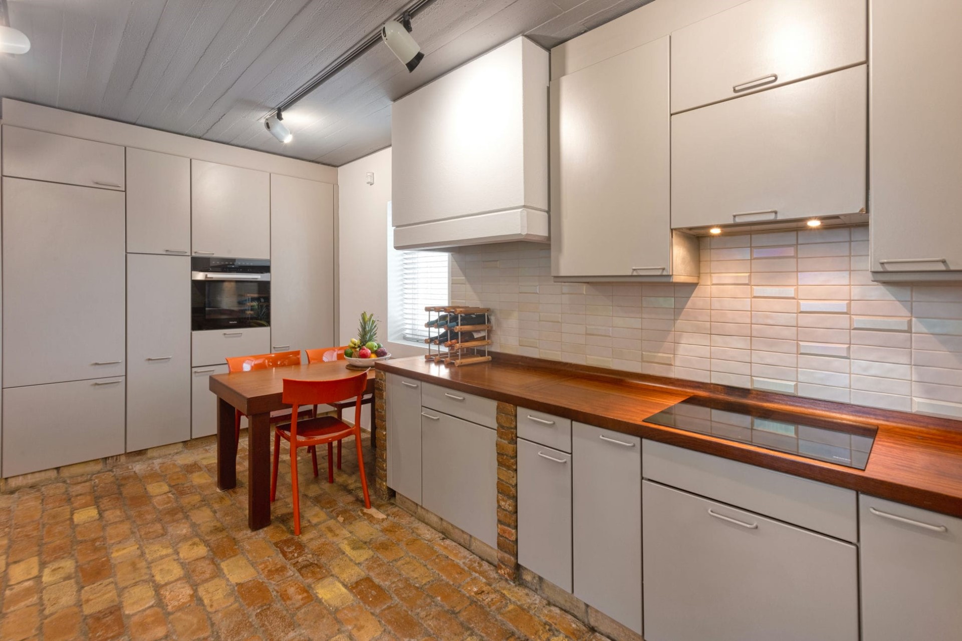 Indoors, the high-beamed ceilings and large windows give a sense of space, whilst exposed bricks offer a warm and homely feel. The main living room features plush seating and designer furniture, perfectly blending comfort and style.