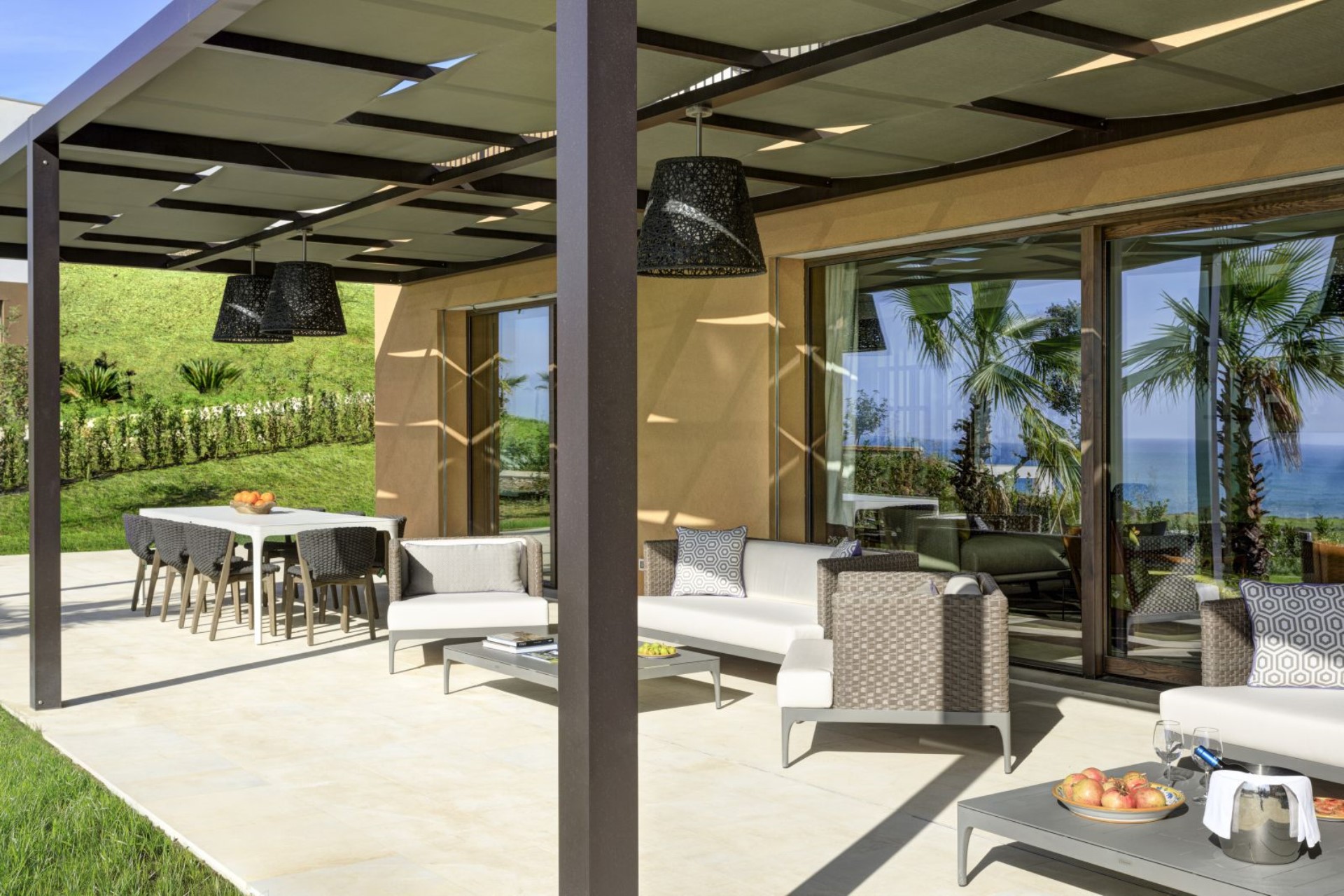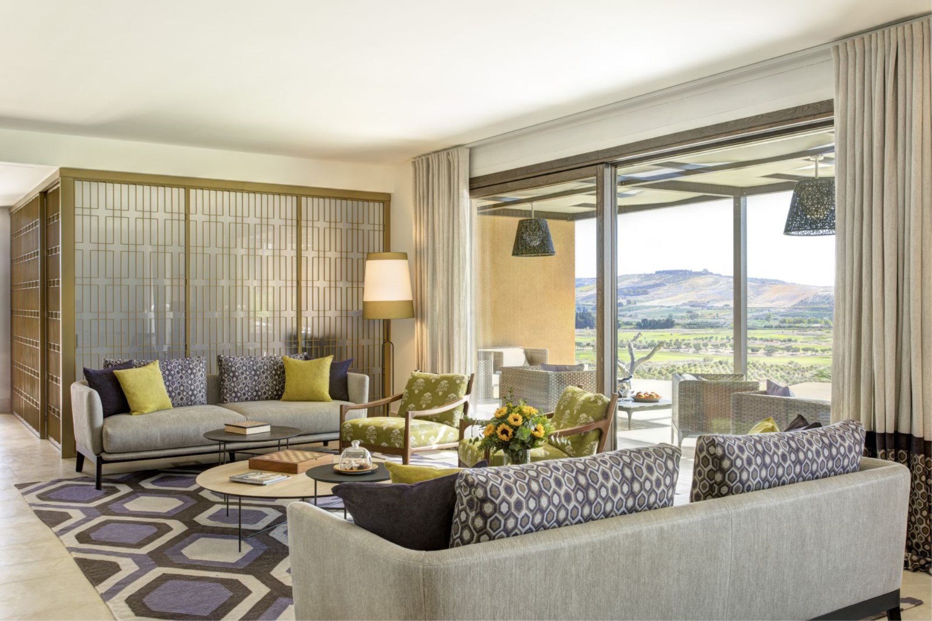 Villa Smeraldo is located within Rocco Forte Verdura Resort in Sicily. Guests have access to all the resort facilities including two golf courses, several tennis courts and other sports facilities, extensive spa facilities, kids’ clubs, multiple restaurants and bars, conference facilities, and shopping boutiques. Guests can take a golf buggy to the resort’s private sandy beach in just 15 minutes.