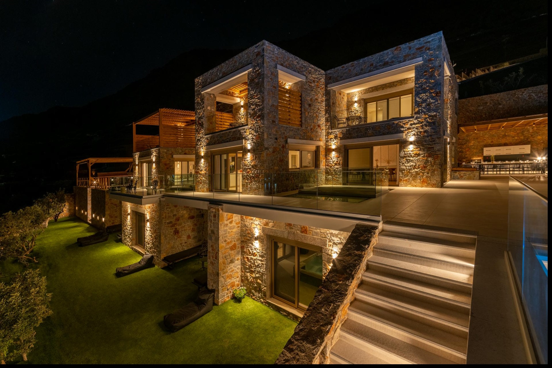 Nestled into the hillside of Plaka, Crete, is the beautiful stone-built Villa Spinalonga. This stunning property offers uninterrupted sea and island views from its many private terraces, large pool, and expansive gardens.