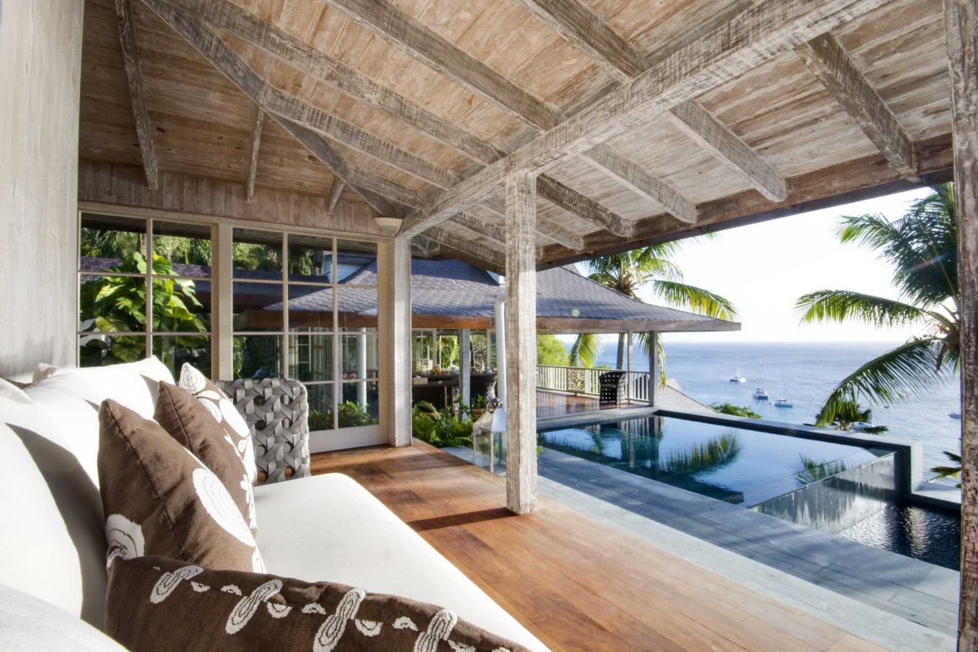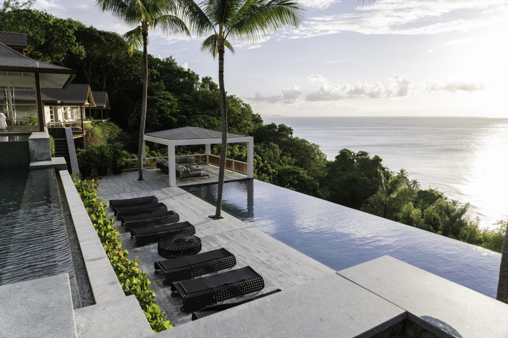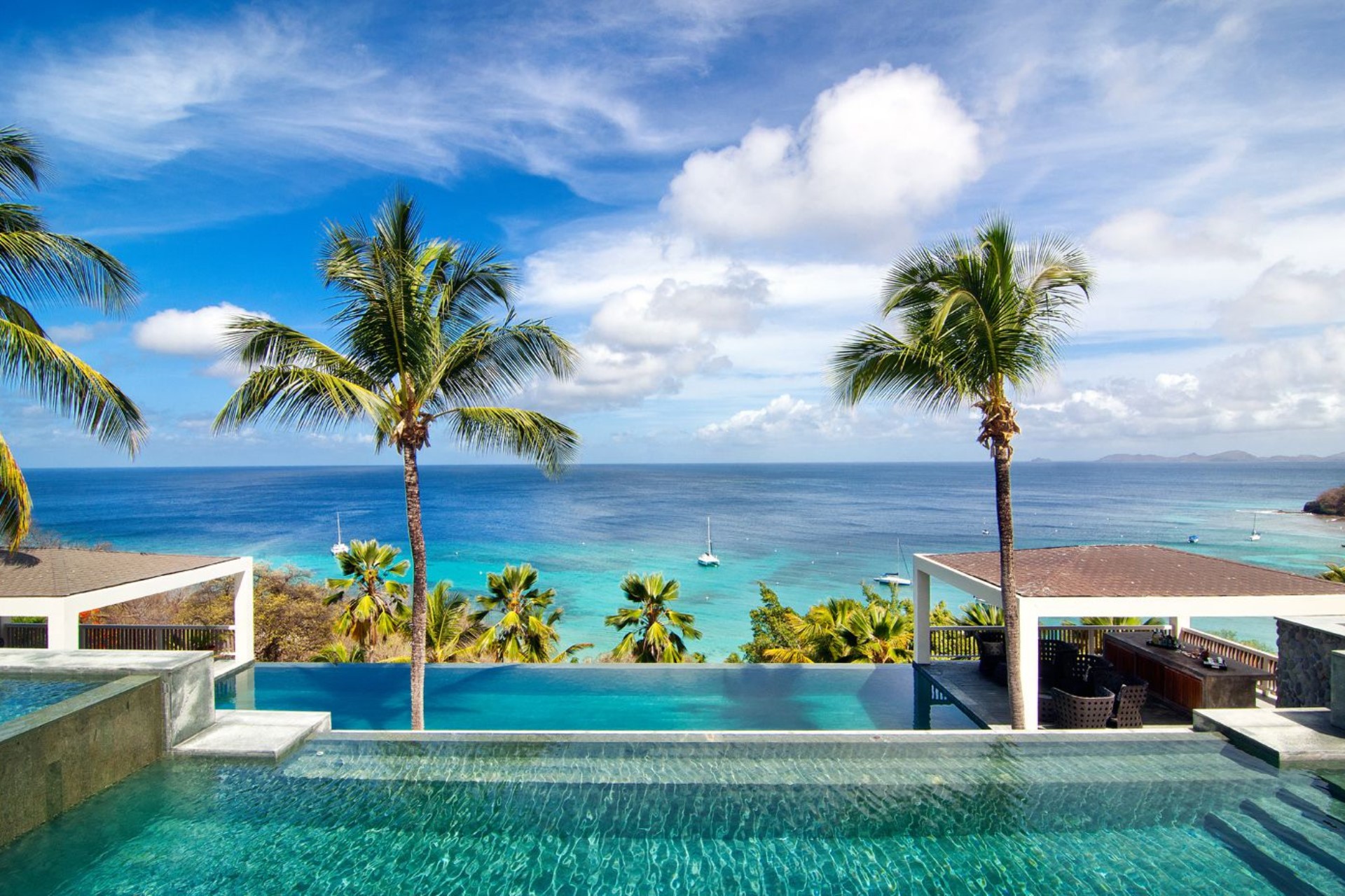 A traditional Caribbean villa with infinity pool overlooking Britannia Bay