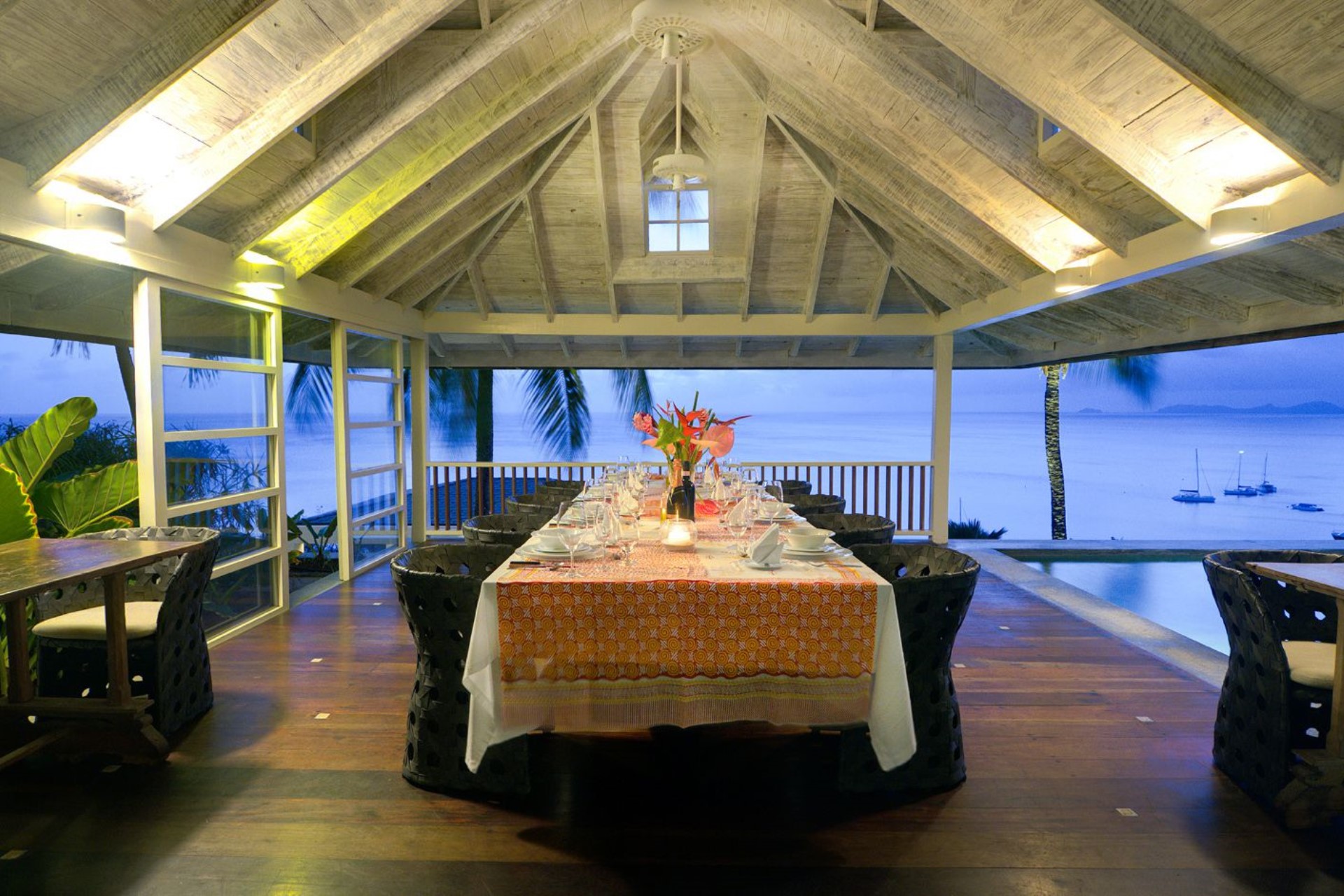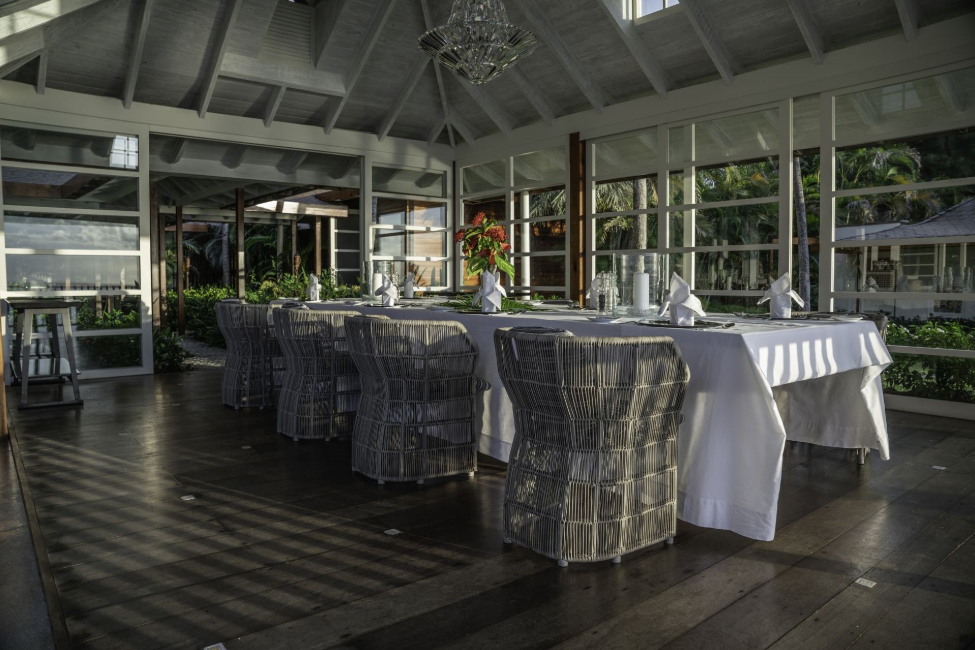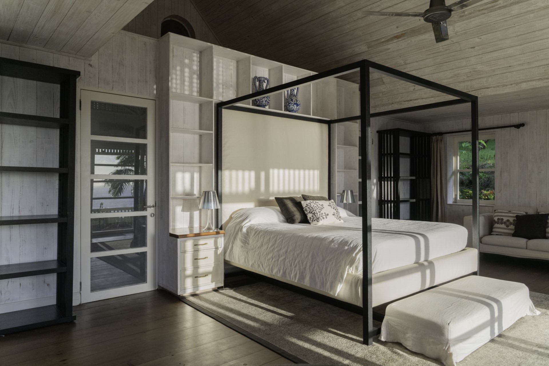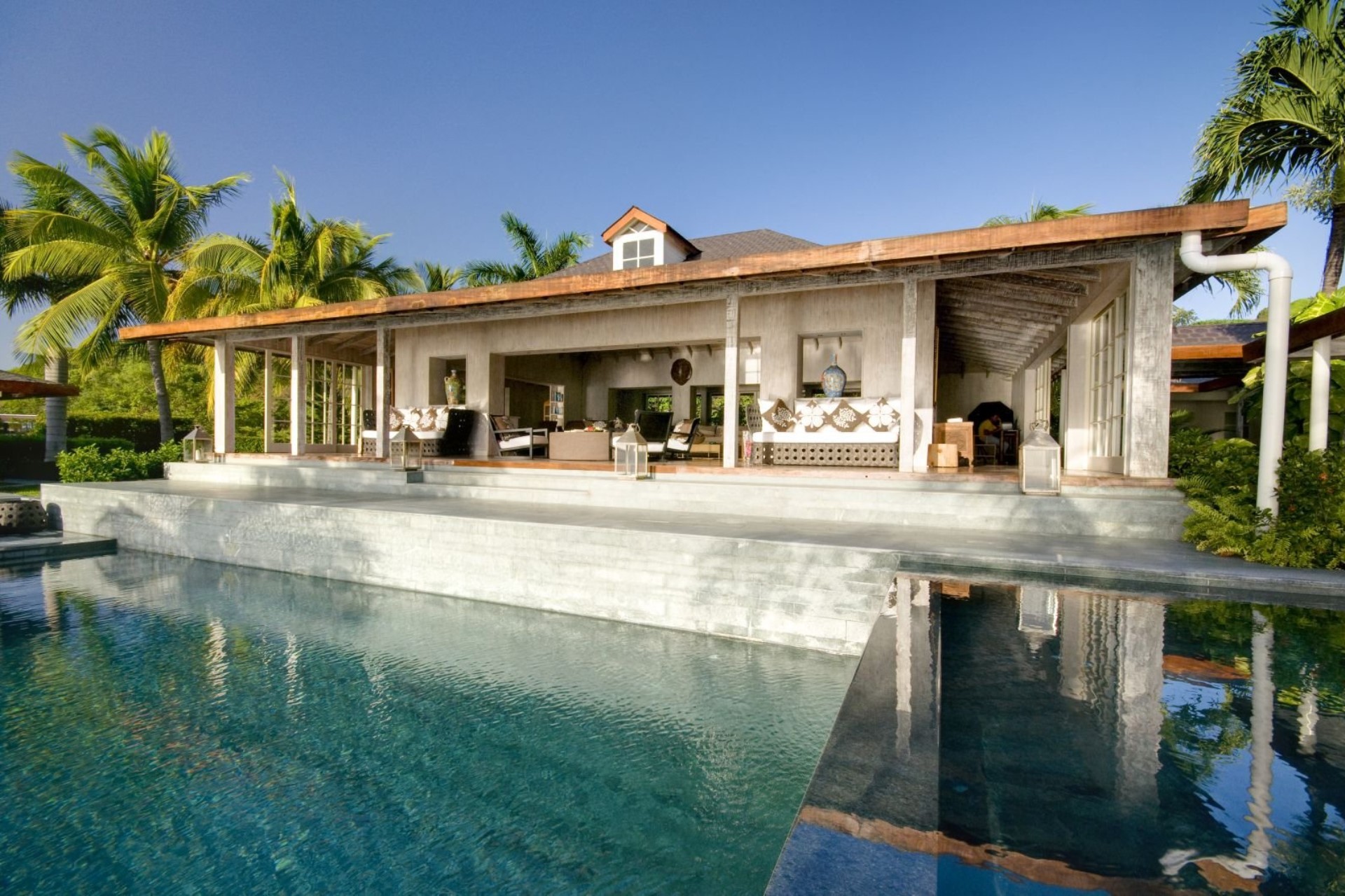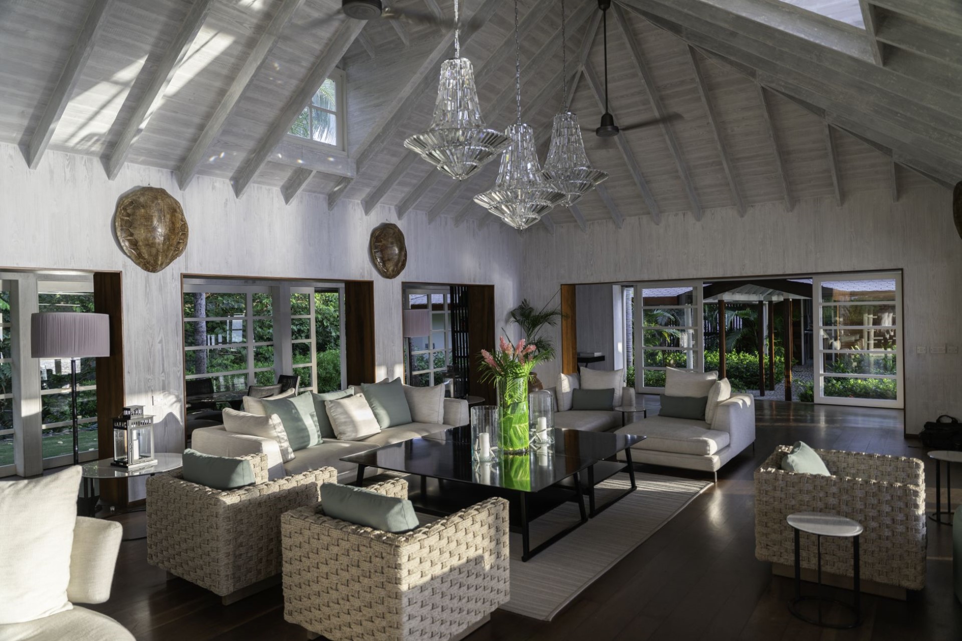 Indoors, the villa seamlessly combines traditional Caribbean design with chic Italian furnishings. The living and dining rooms are very generous and have a glamourous style featuring natural ivory and rattan furniture. The high-beamed ceiling maintains the cool ambience whilst the selection of simple local artefacts roots the villa amidst its location perfectly.