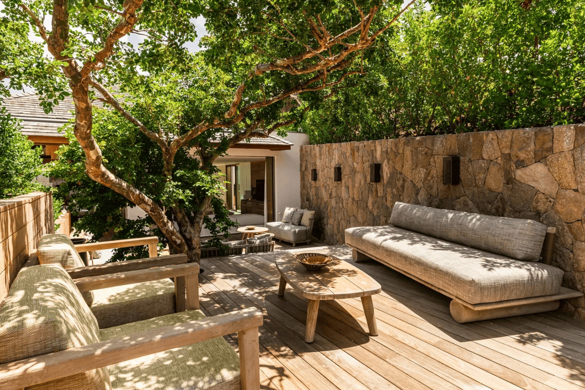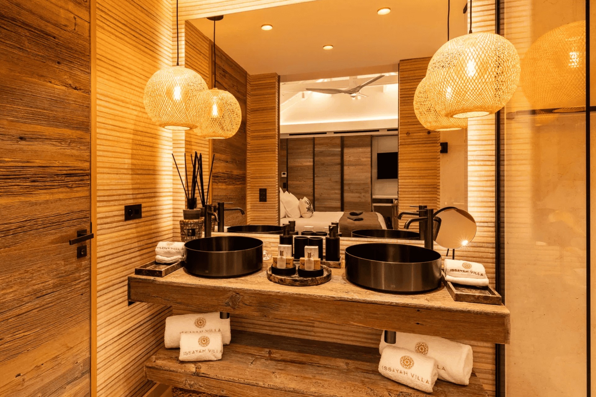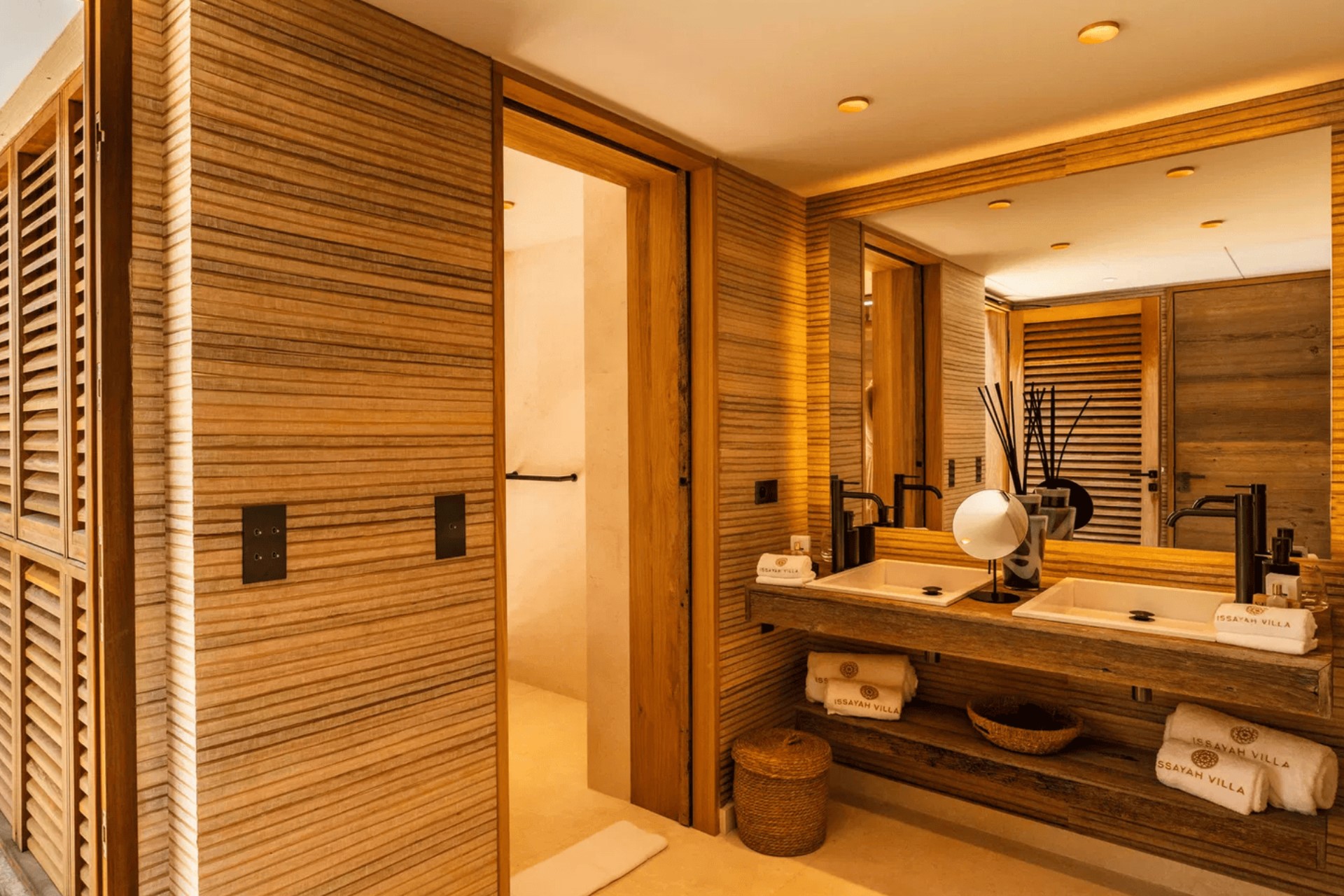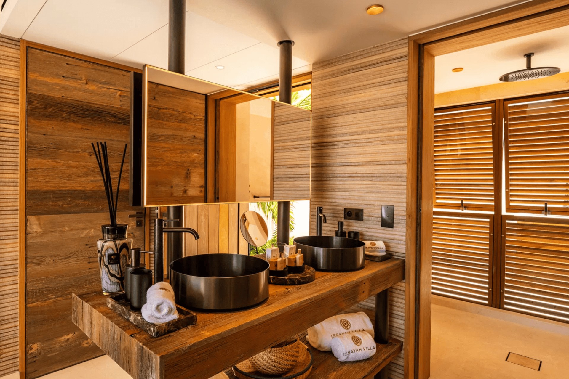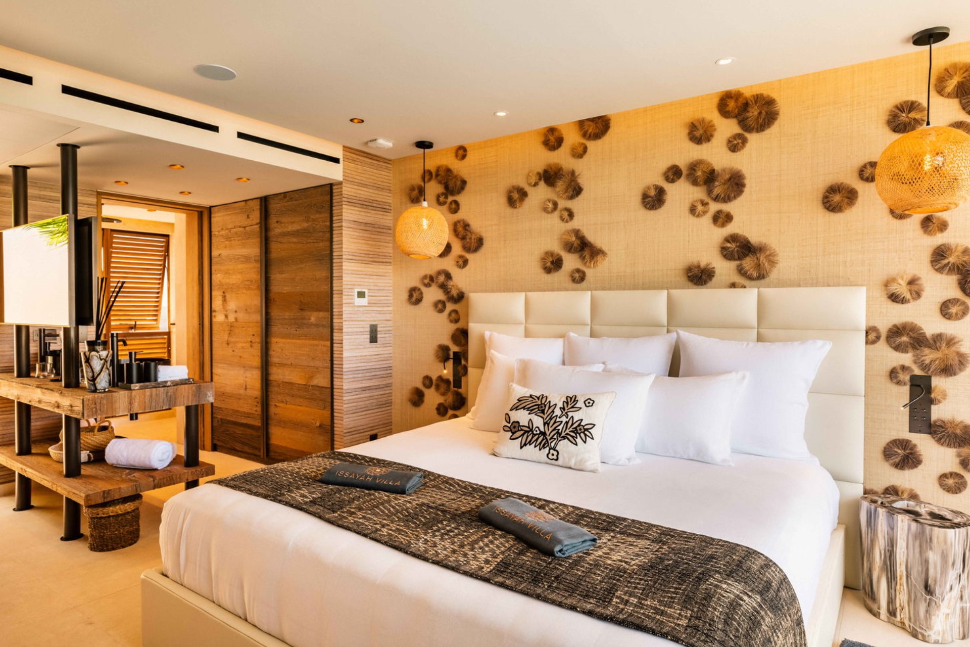 Each of the villa’s three air-conditioned bedrooms is thoughtfully designed to ensure comfort and privacy, featuring king-size beds, en-suite bathrooms, and refined décor. Large windows and terrace access in the bedrooms provide seamless integration with the villa’s stunning surroundings.