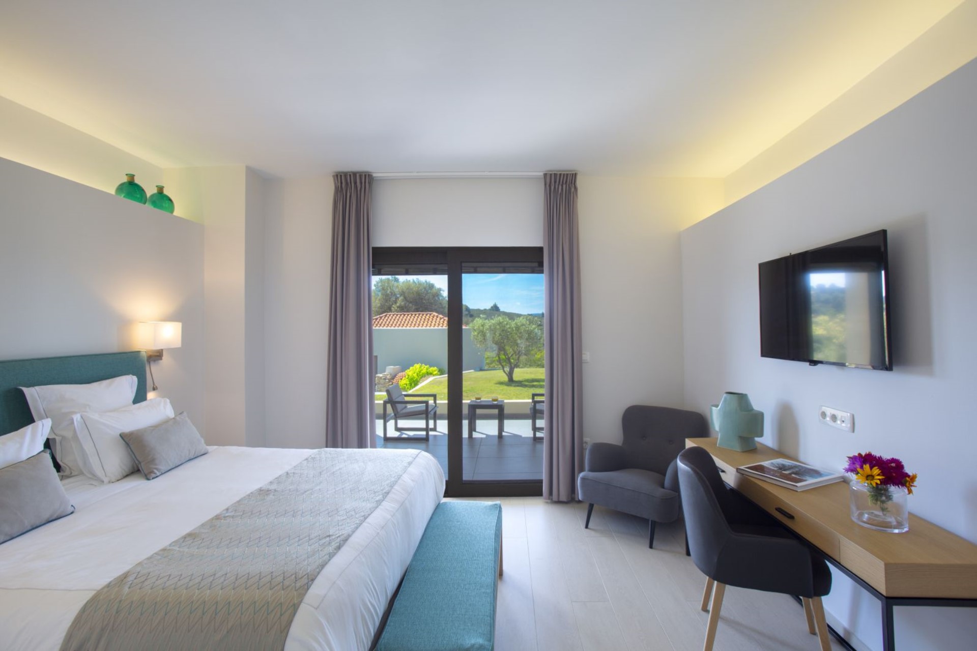 The main villa features a bright and spacious living room, a fully-equipped kitchen, and a winter dining area, as well as three bedrooms. There is also an elegant studio, which houses an additional bedroom. All bedrooms include well-appointed en-suite facilities.
