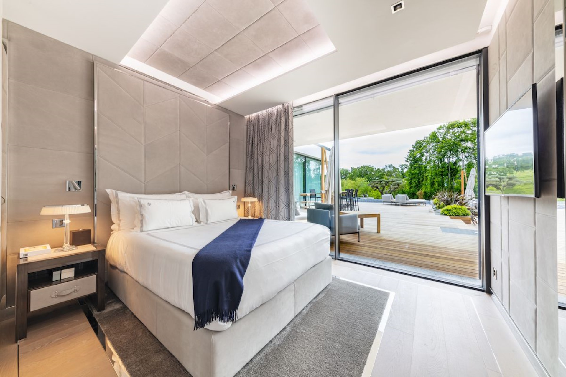 Bedroom 1 (Master) – king-size bed, dressing room, en-suite bathroom and private terrace with outdoor lounge