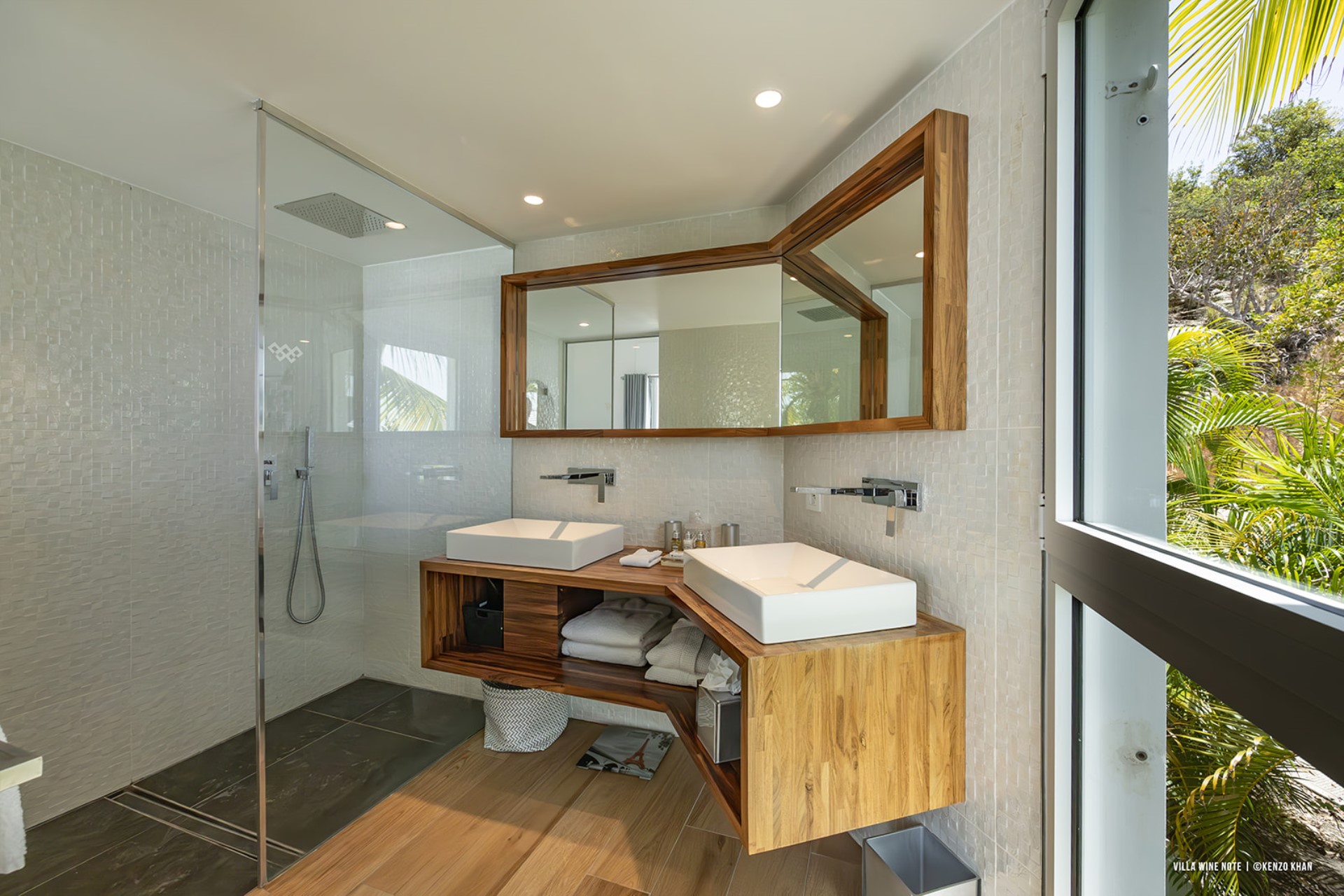 Villa Wine Note has a perfect location in the residential district of Les Hauts de Saint-Jean, offering fantastic views of the bay and the amazing beaches. Set slightly back from the coast, the villa offers an idyllic environment for nature lovers. Against a backdrop of truly lush greenery, guests can take advantage of the location’s serenity and sumptuous panoramas in total peace and tranquillity.