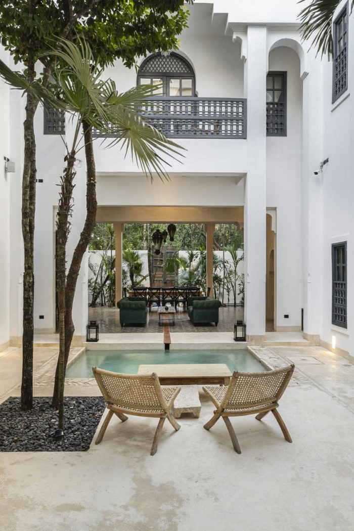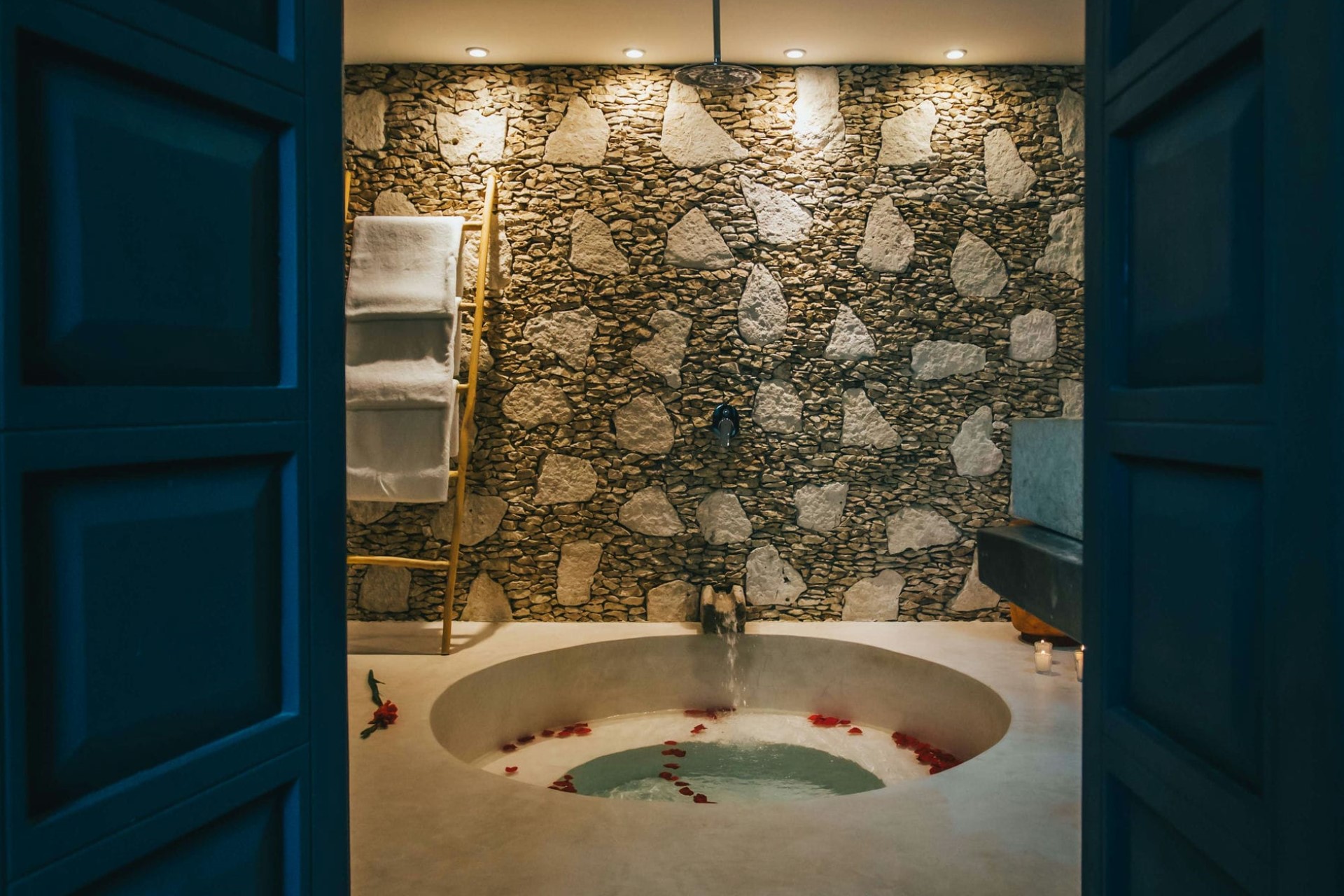 The first-floor terrace with a firepit is ideal for cosying around on cooler evenings. Lush gardens on the ground floor feature local flora and tranquil ponds, while a freshwater plunge pool with luxurious Jacuzzi jets beckons in the courtyard.