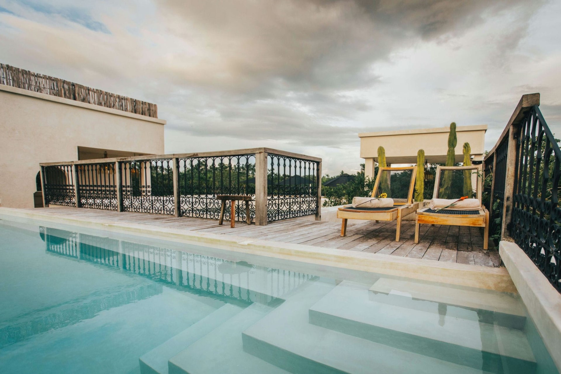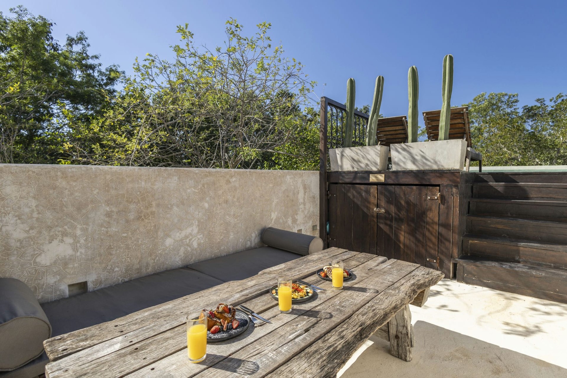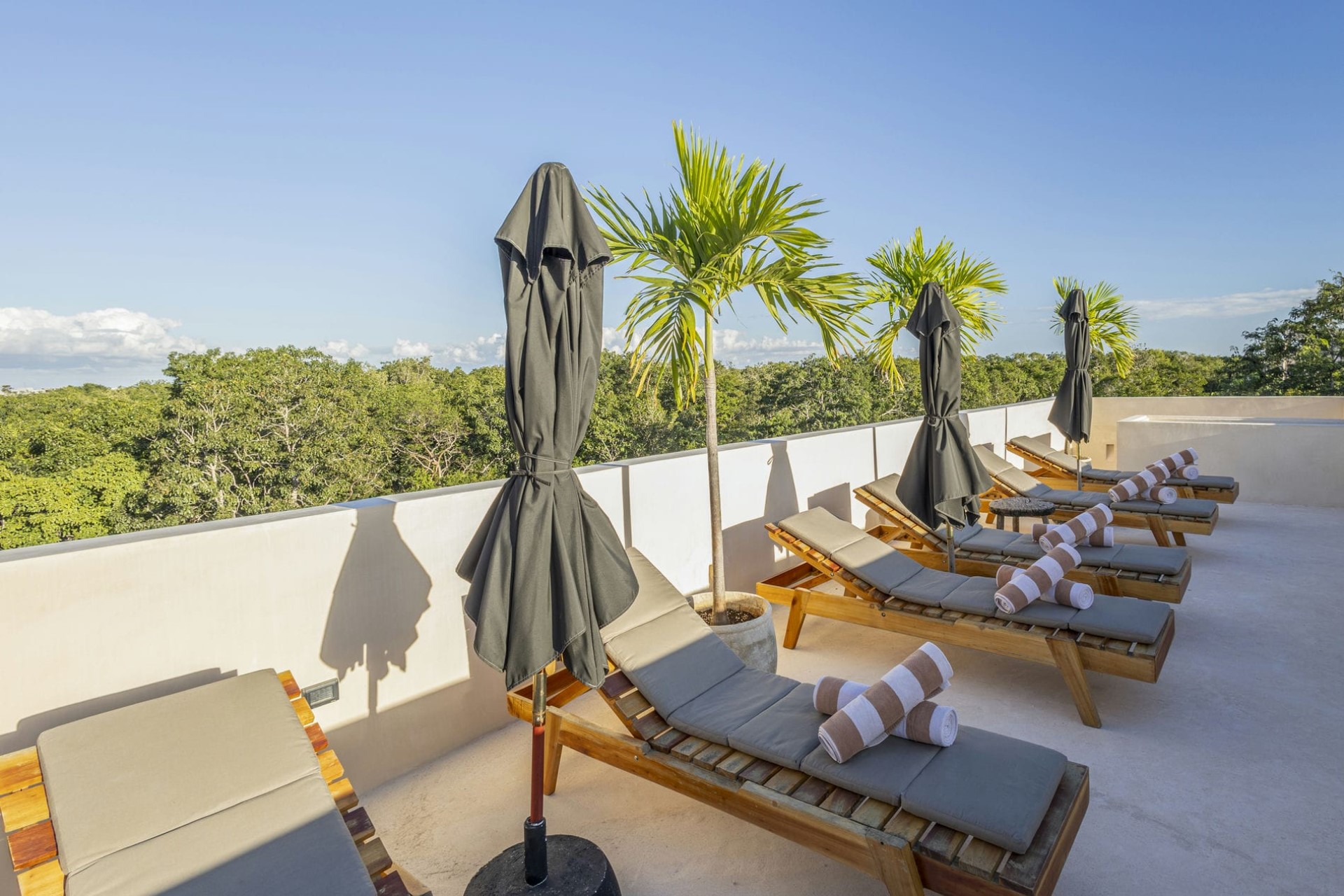 Enjoy panoramic views from the roof terrace and rooftop pool of this stunning villa in Tulum
