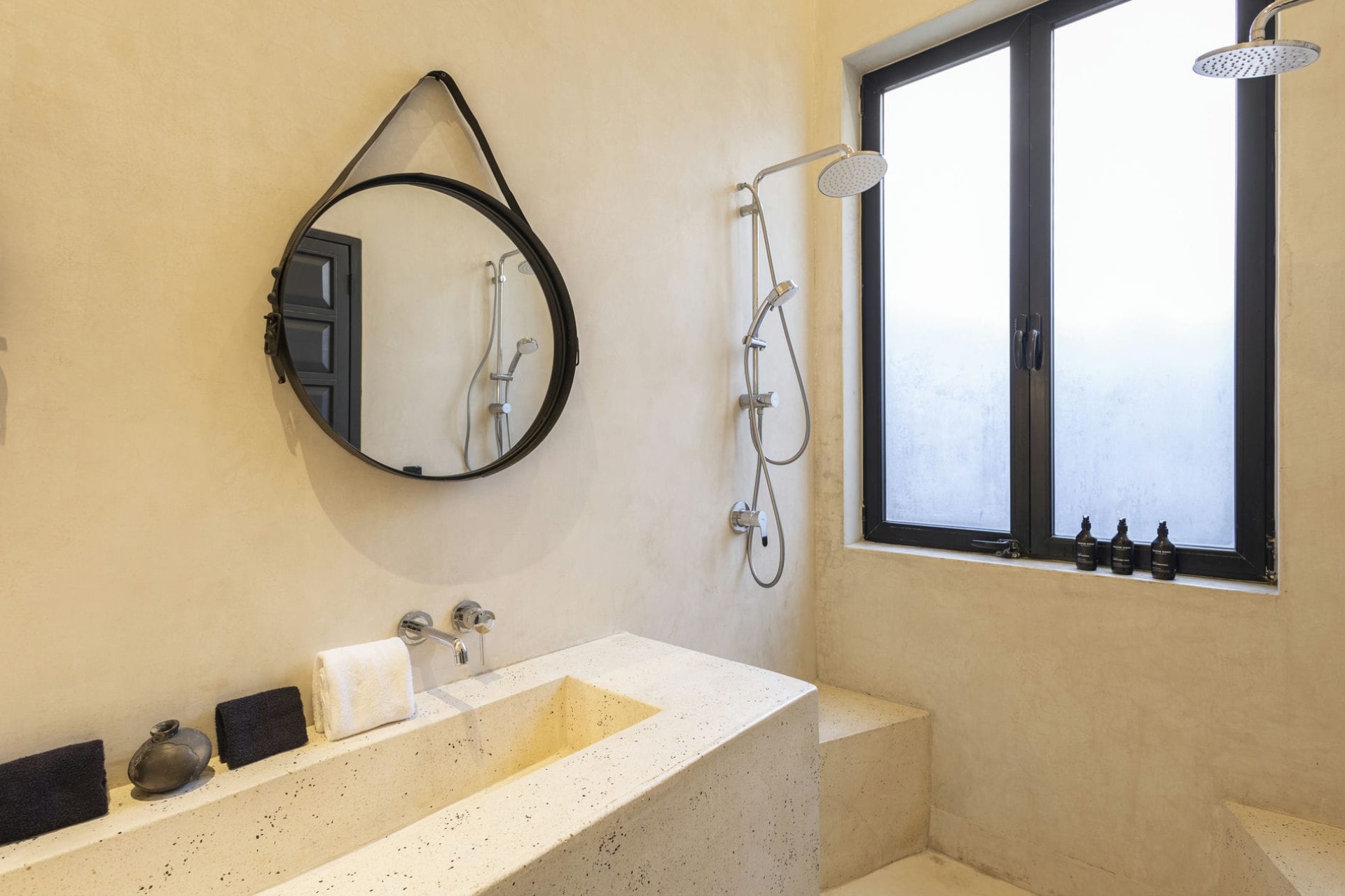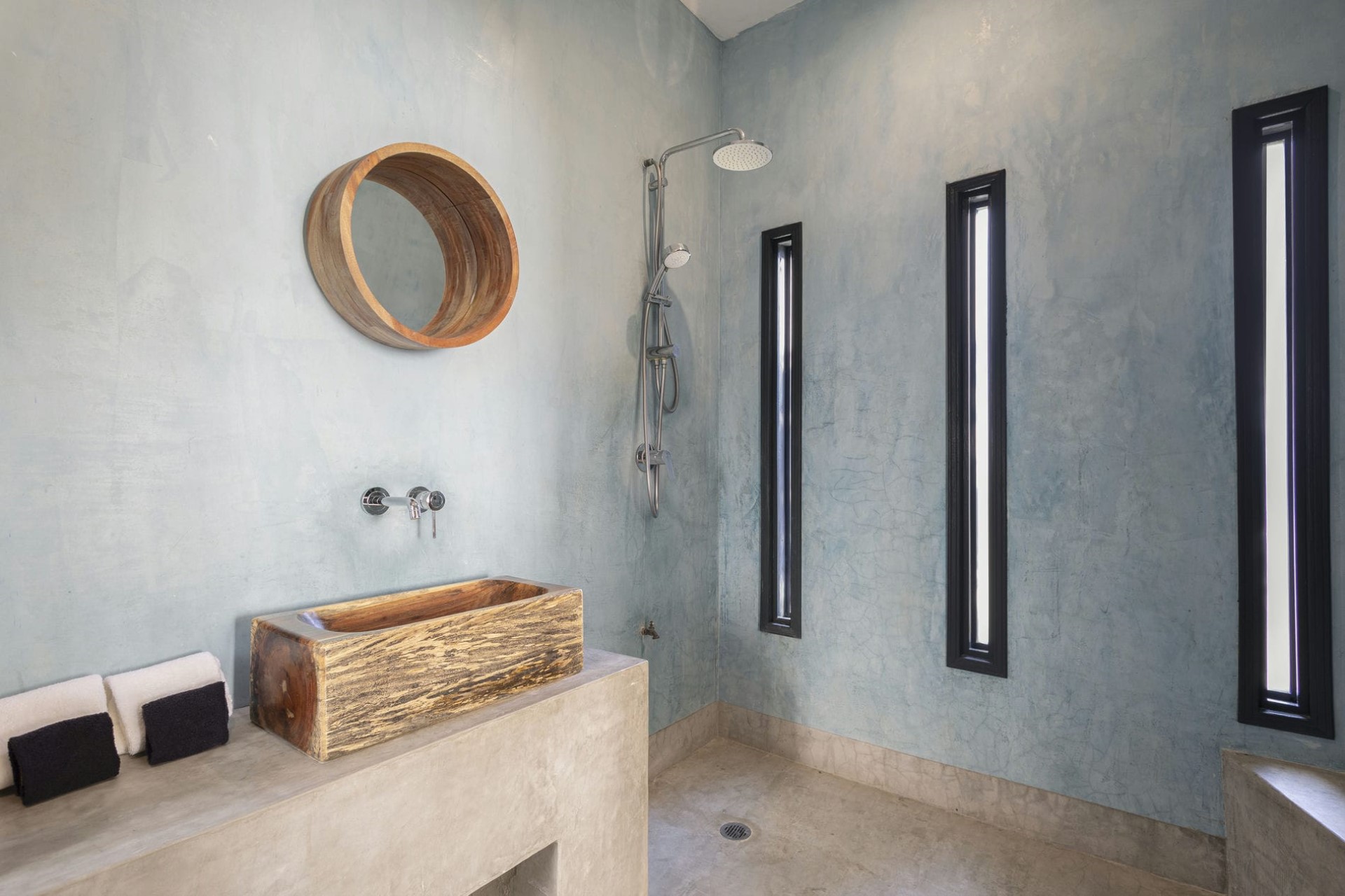 The villa is designed around a central courtyard, maximising the tropical climate with an abundance of outdoor living spaces for relaxation and socialisation. The highlight is a stunning roof terrace nestled in the canopy of the surrounding jungle vegetation. This private space features a swimming pool and a poolside bar, as well as plenty of room for guests to relax and soak up the sun or sip on a tropical cocktail while taking in 360-degree views.