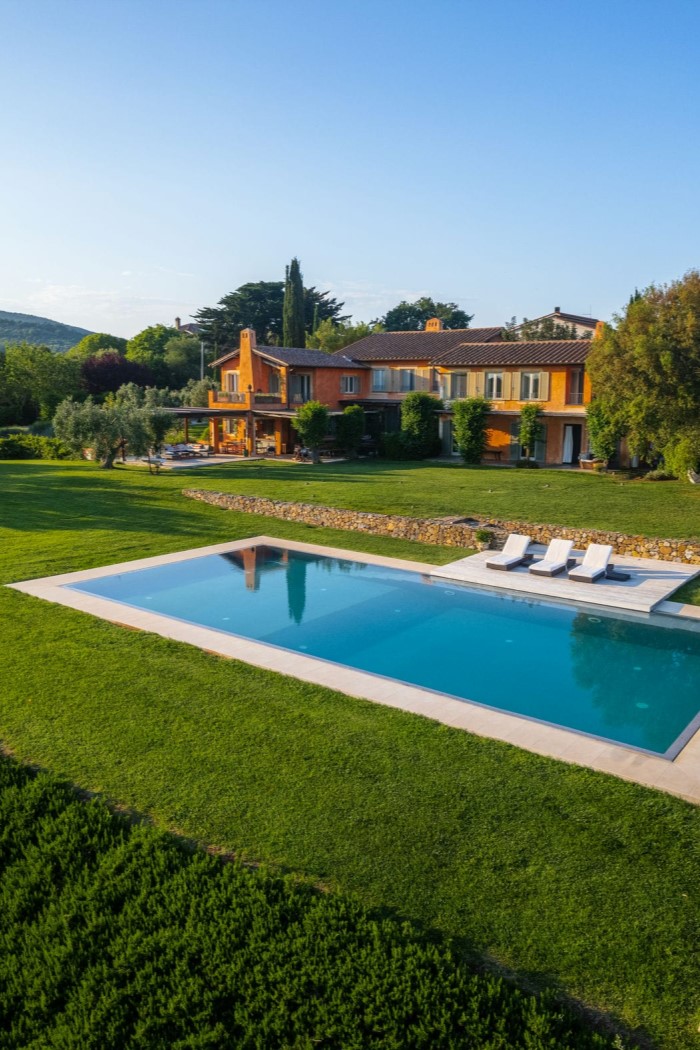 An idyllic retreat in the tranquil Tuscan countryside, offering sprawling gardens and two swimming pools