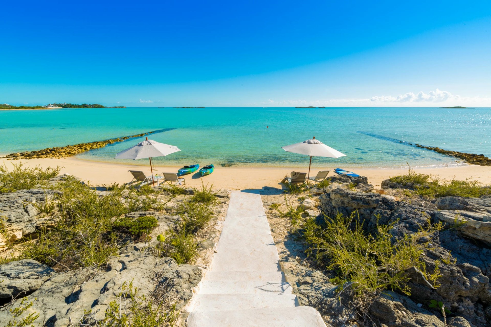 Further afield, Providenciales’ varied attractions, including the restaurants and boutiques of Grace Bay, are a short drive away. The nearby beaches of Sapodilla Bay and Taylor Bay offer calm, shallow waters perfect for families and those wanting a more relaxed beach day.