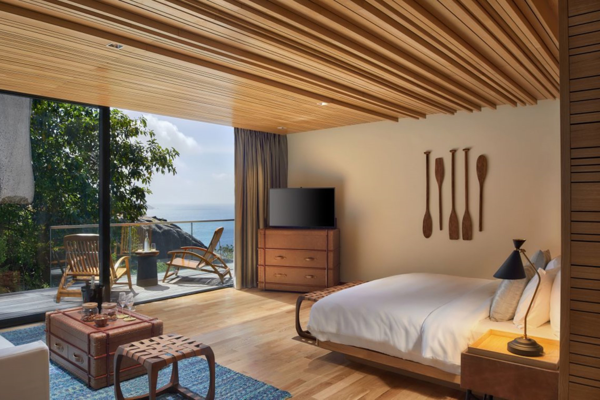 To get to the resort, visitors can take a scenic 20-minute helicopter flight from Mahé or a 20-minute speedboat trip from Praslin Island.