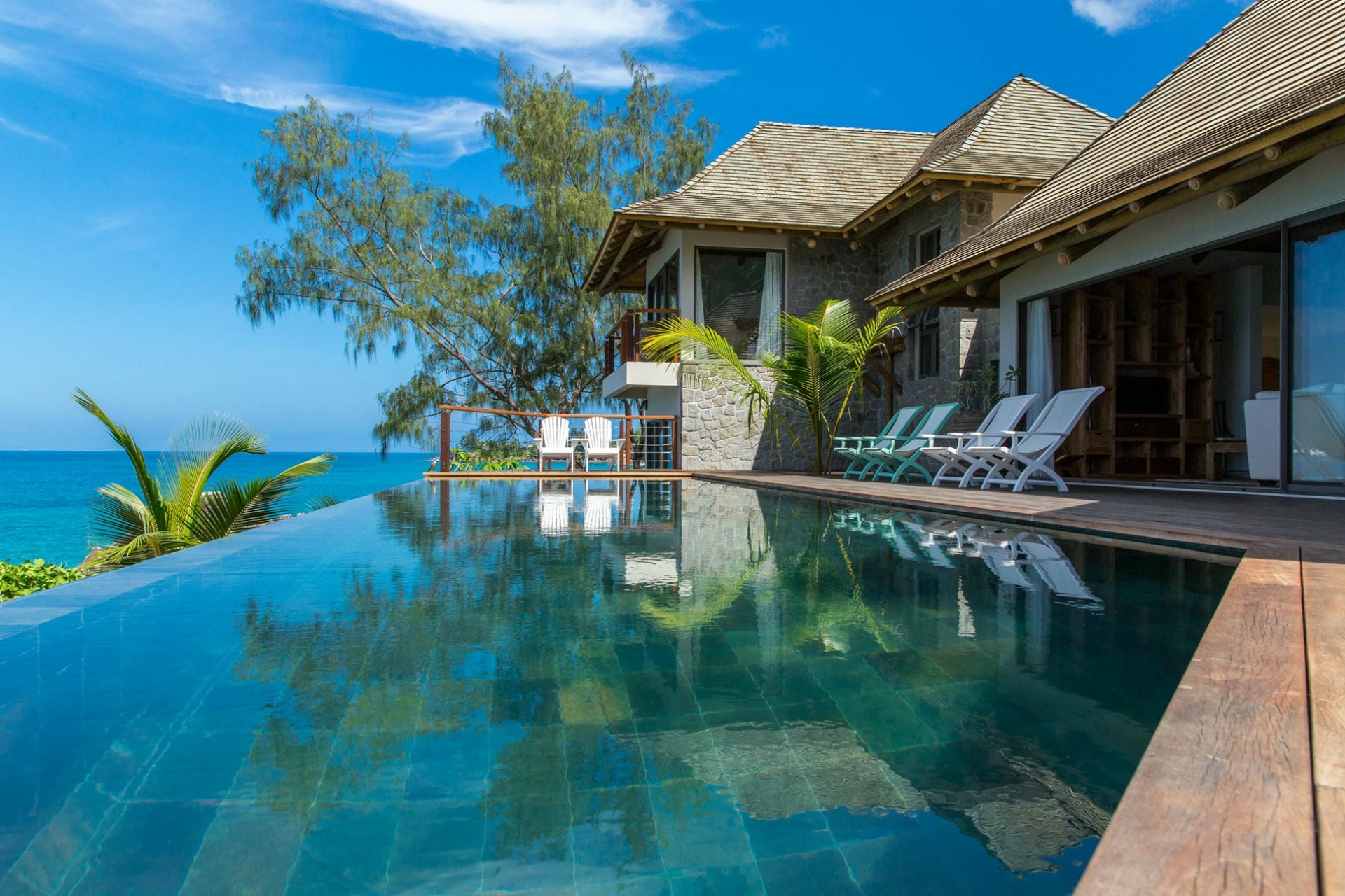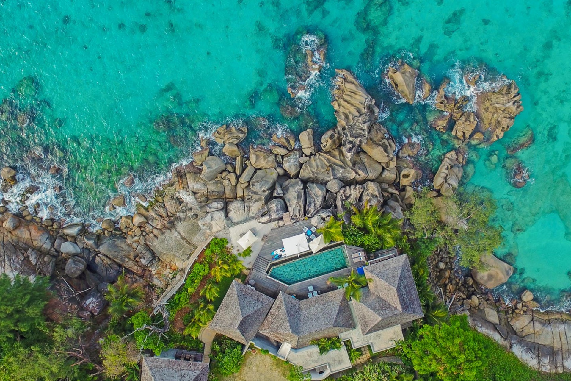 Villa Sea Monkey is a stunning property located in the exclusive region of Glacis in the northern part of the Mahé Island in the Seychelles. The luxury villa occupies a privileged location on a secluded rocky peninsula, which affords unparalleled panoramic views of the Indian Ocean.