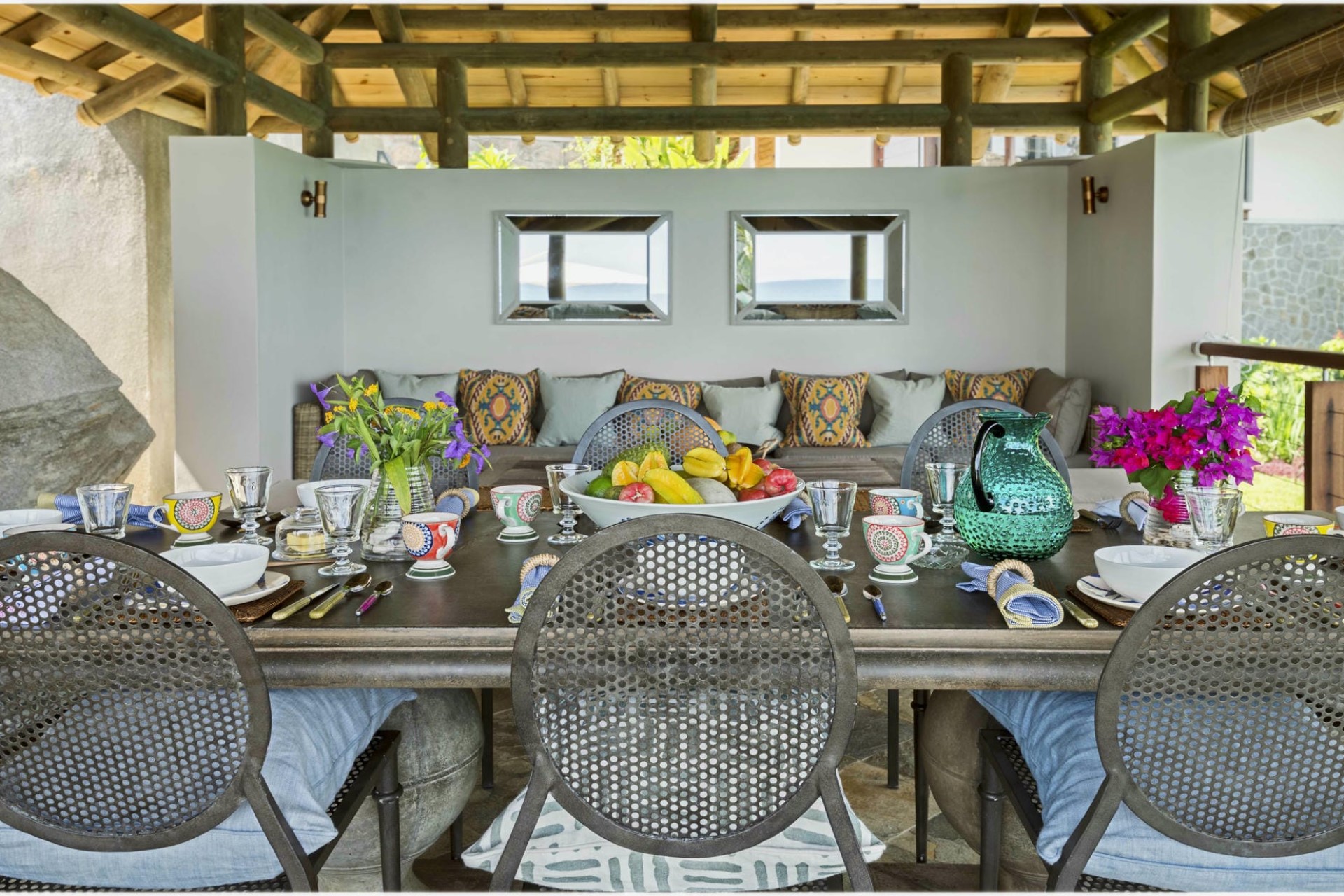 With four well-appointed bedrooms, the villa can sleep up to eight guests in style. Each bedroom boasts air conditioning, en-suite facilities and private balconies with spectacular ocean views, with the master bedroom featuring a luxurious outdoor shower. The bedrooms are individually decorated with carefully-chosen lamps, mirrors, and cushions, along with stunning headboards made from local Takamaka wood.