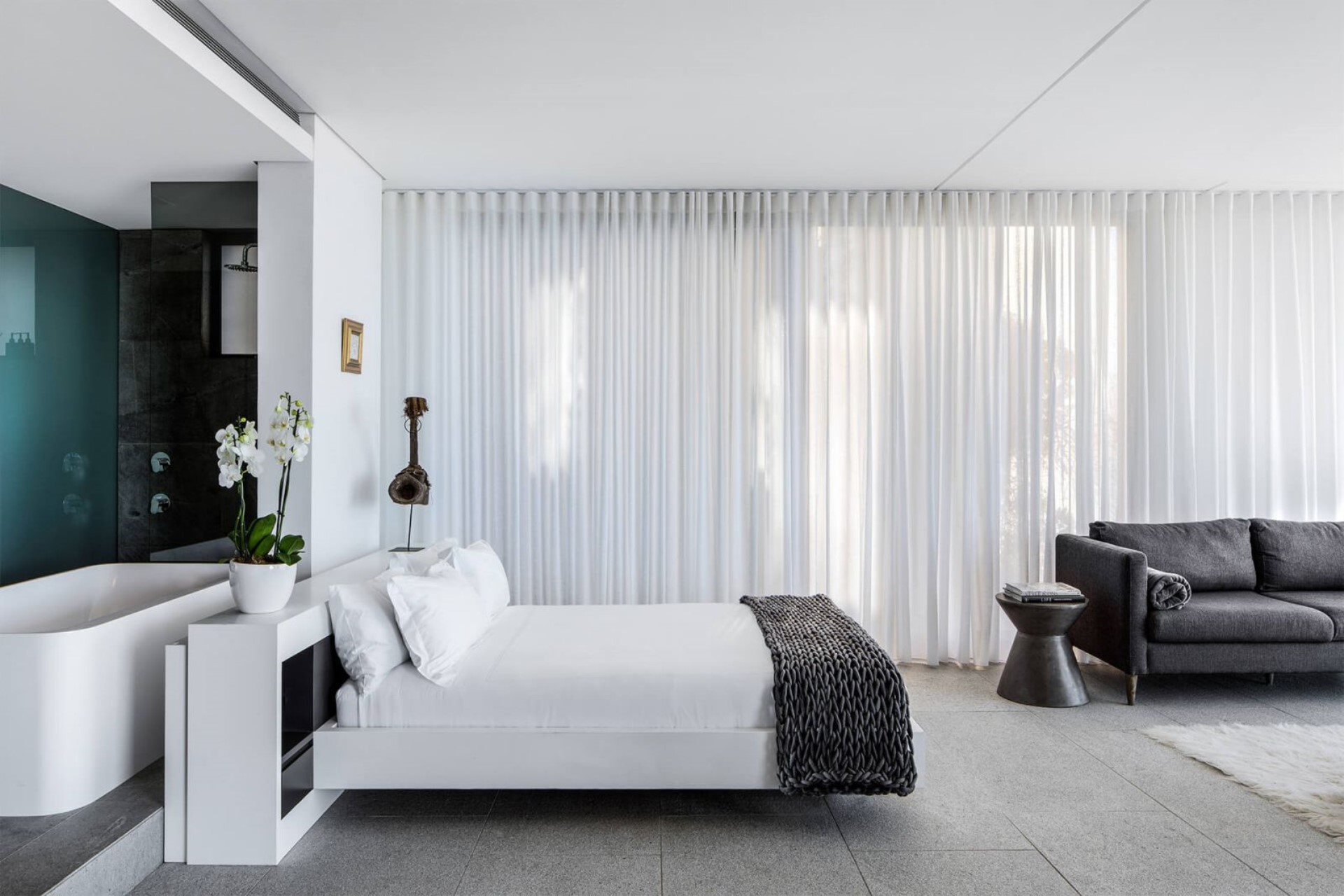 Bedroom 4 – king-size bed, en-suite bathroom with bathtub & separate shower, heated towel rail, and ocean views