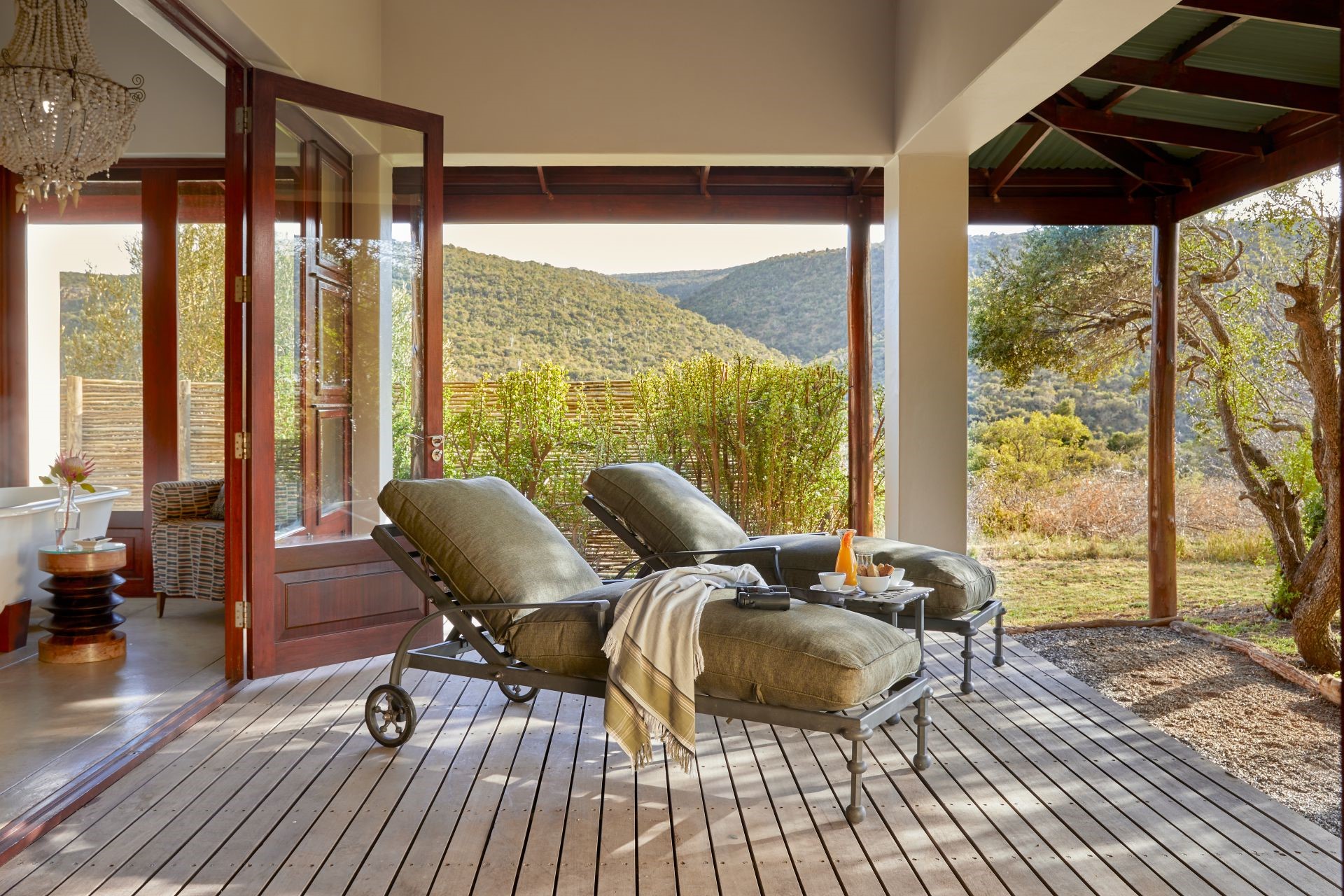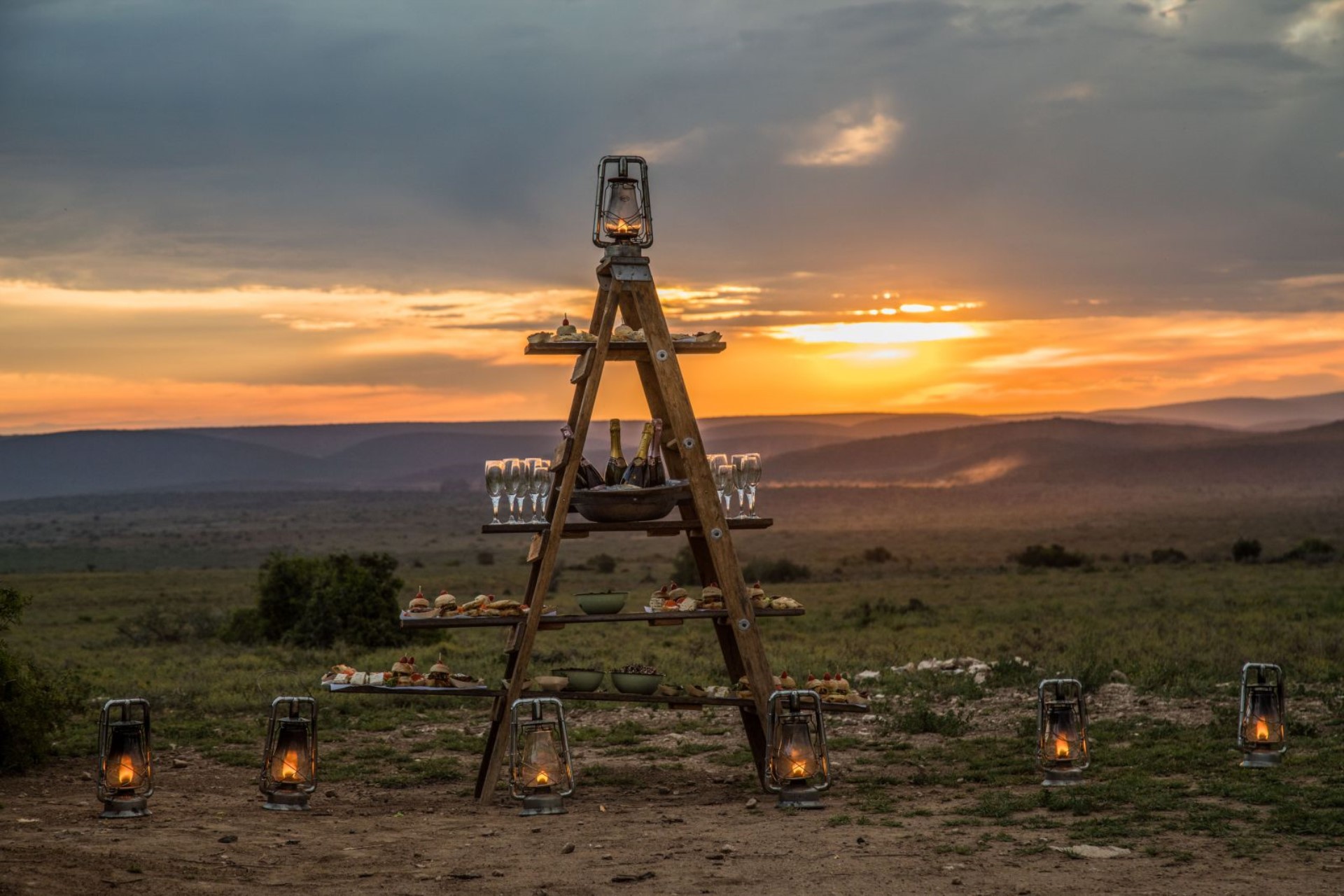 A day at Kwandwe is filled with adventure, from early morning until dusk, set against a backdrop of star-filled nights. You can opt for a morning game drive setting out in an open 4×4 safari vehicle accompanied by a ranger and tracker team. You will then return to the lodge to enjoy a delicious breakfast followed by the indulgent treat of having an in-room massage. If you wish to continue with the activities, you can go on a short walk near the lodge with your ranger, who can show insight into the smaller animals and vegetation in the area. A big highlight of the day might be a late-afternoon game drive. You can stay until after dark to gain a glimpse of nocturnal bush life. Spot the rarely seen porcupine, aardwolf, or aardvark. For those seeking something more active, you can also choose to track the big game on foot. At the end of the day, you can return to your luxury villa for a mouth-watering dinner around a blazing fire in a boma, or in your private dining area at the lodge.