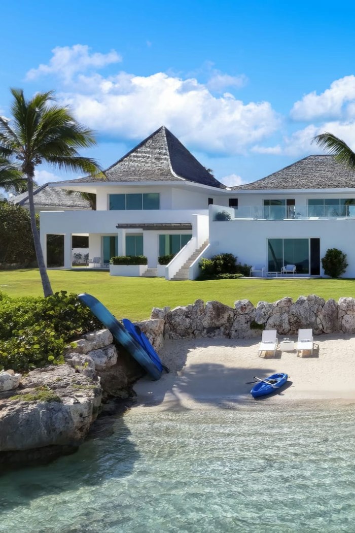 Indoors, a spectacular entrance hall welcomes guests into a fusion of magnificent light, airy spaces that offer understated elegance created by high ceilings, floor-to-ceiling windows, indulgent soft furnishings, beautiful linens, and sweeping views of the islands beyond.