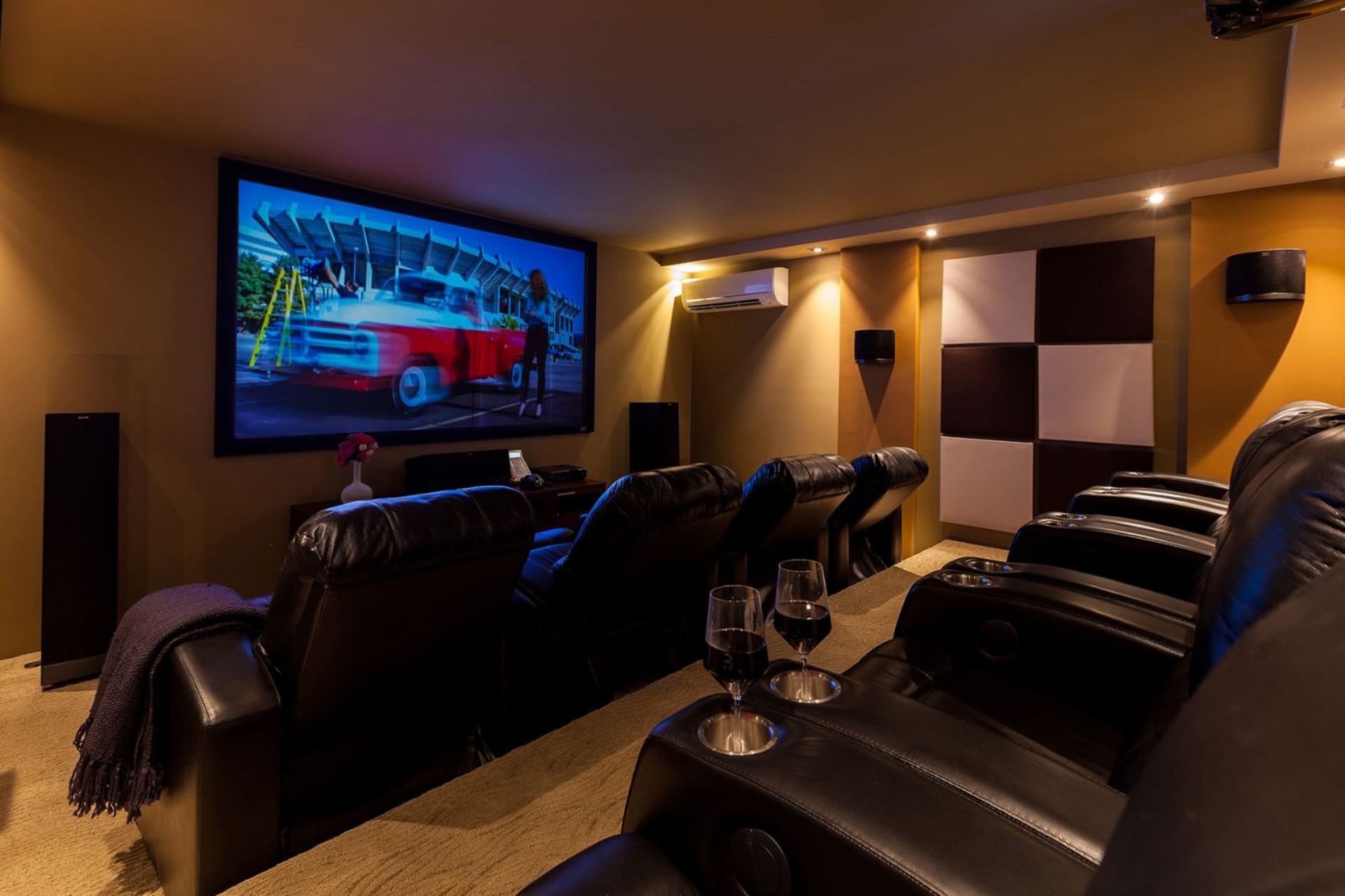 Indoors, there are plenty of spaces to unwind or socialise. These include a spacious living room and cosy TV room in the main house, plus a large home cinema room – complete with recliner seats, a 120” screen, surround sound system, and X-box console – in the guest house. Also located in the guest house is the gym and the golf simulator room, where enthusiasts can practise their game in at hundreds of golf courses from around the world.
