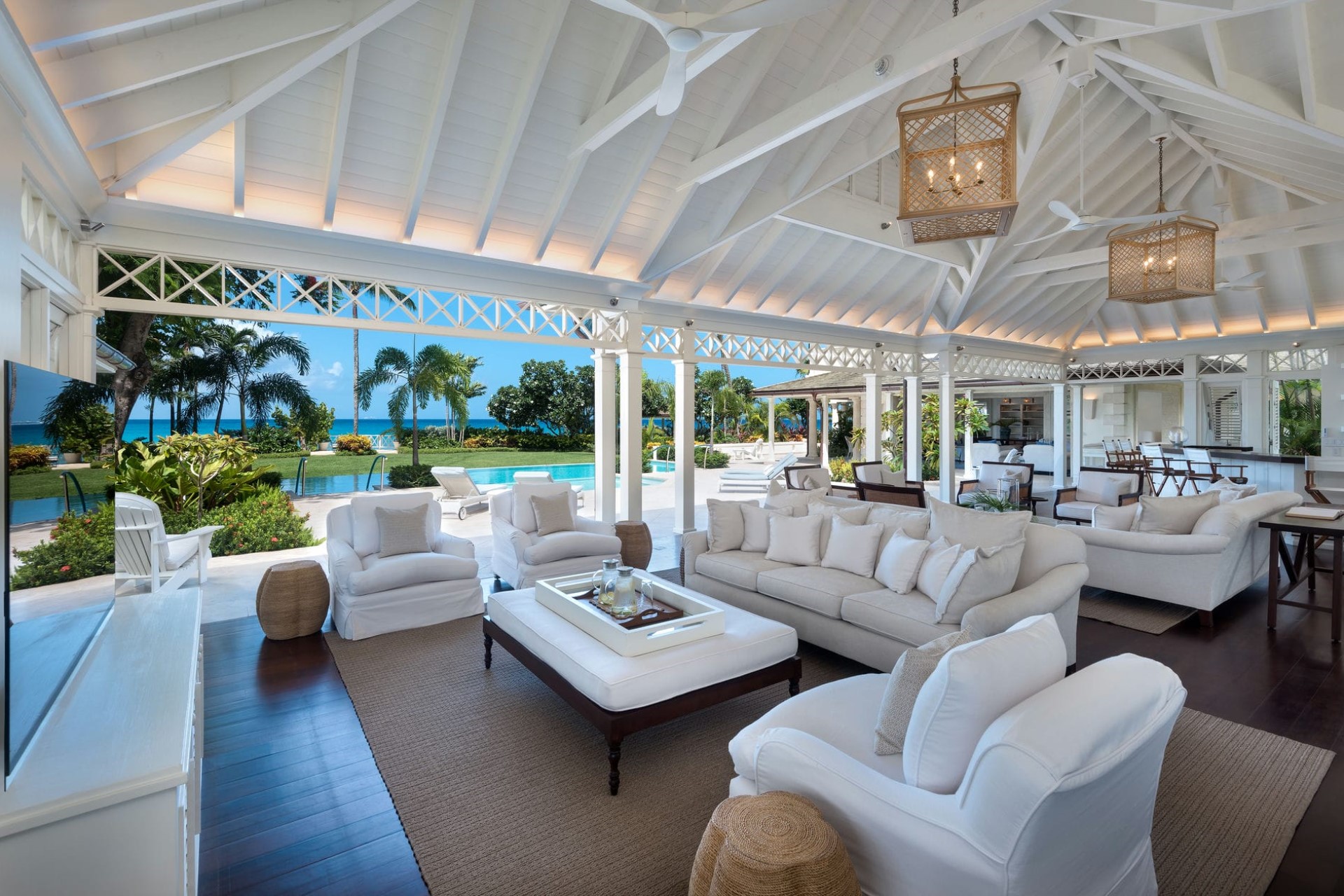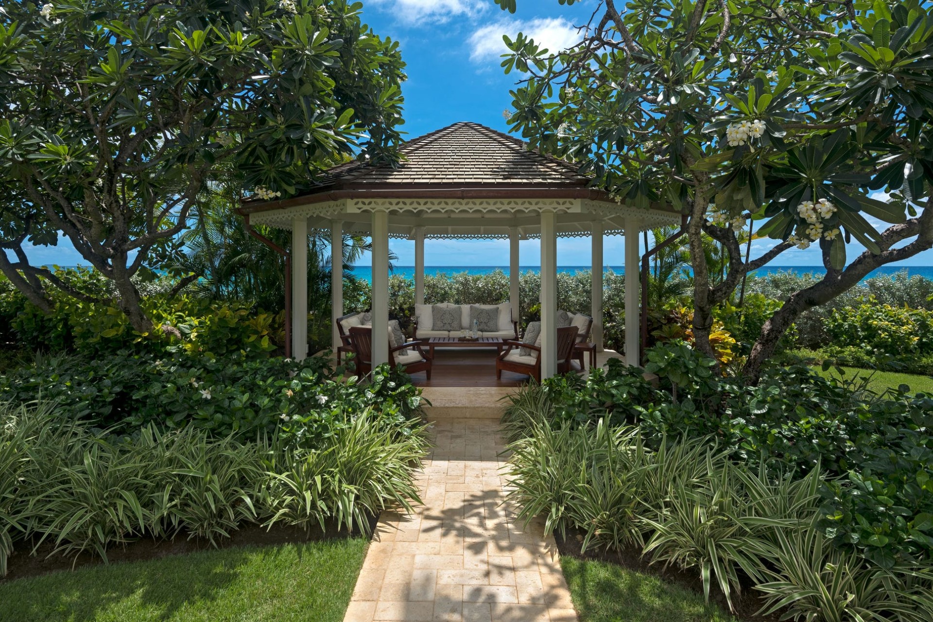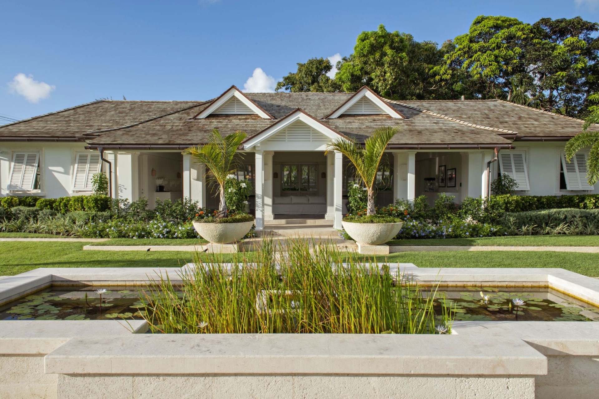 Surrounded by 2.5 acres of manicured tropical gardens, the villa offers plenty of outdoor space to soak up the sunshine and sea air. It is split between the main estate, which faces the sparkling waters of the Caribbean, and a smaller estate on the land side, with lush garden views.