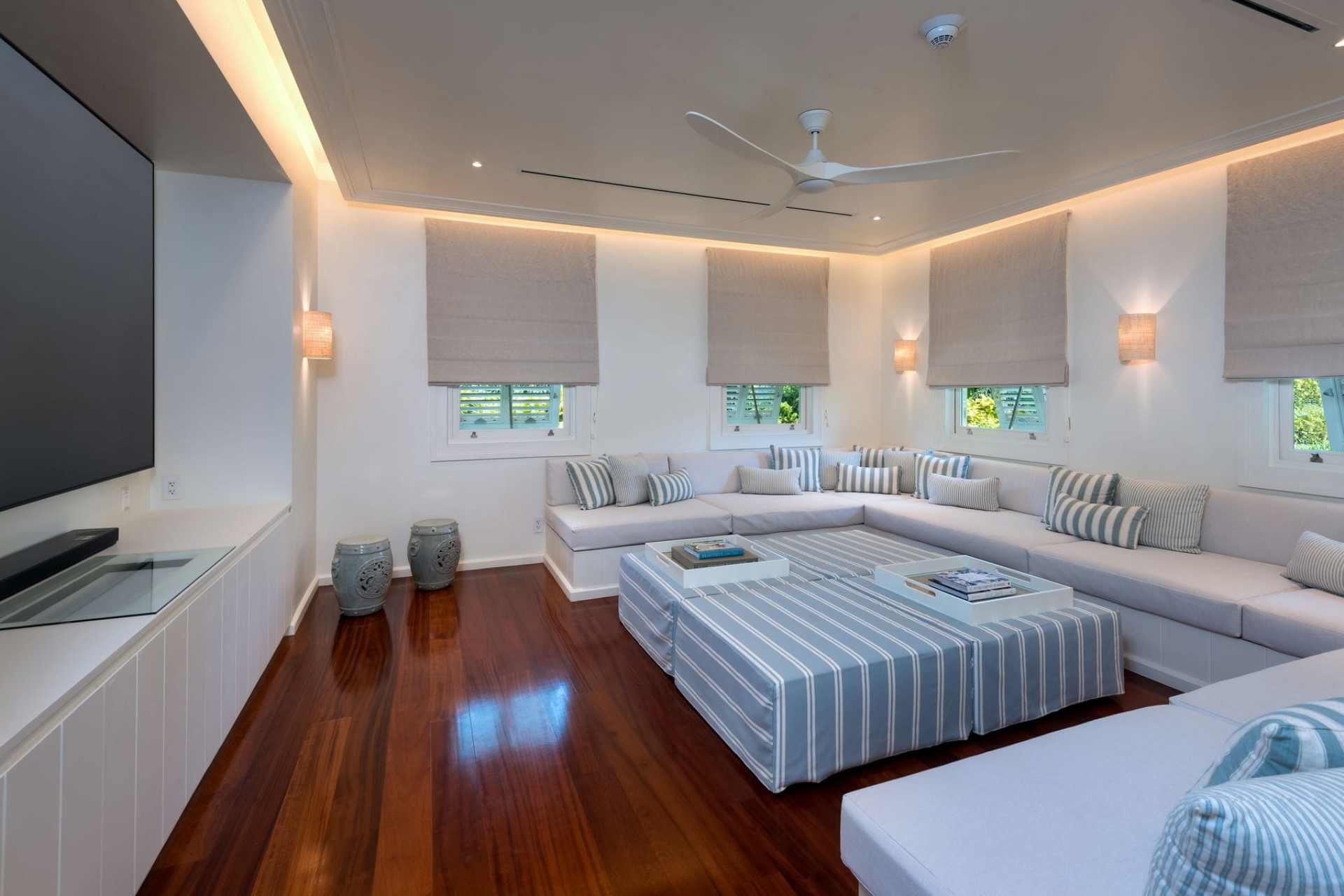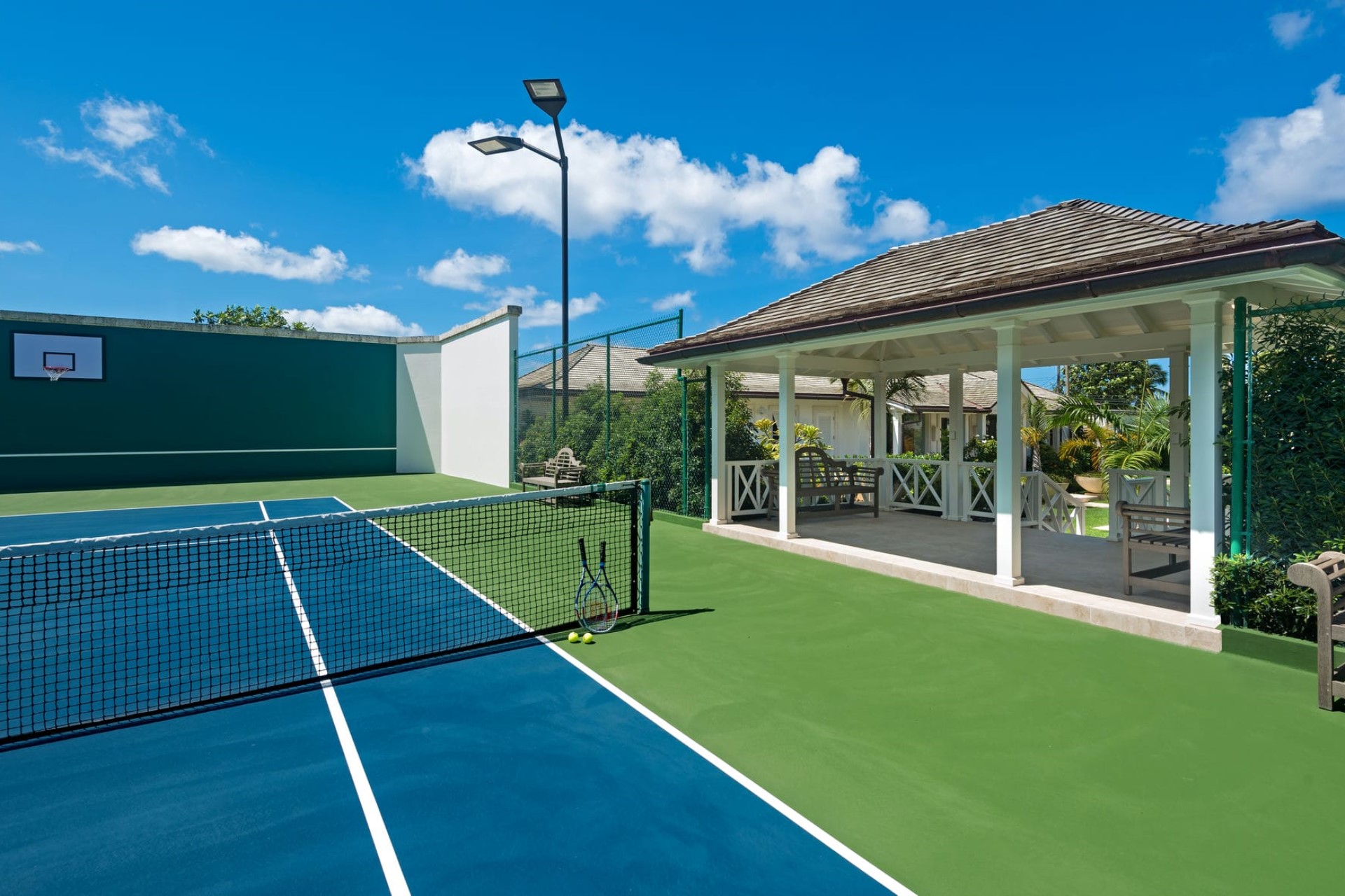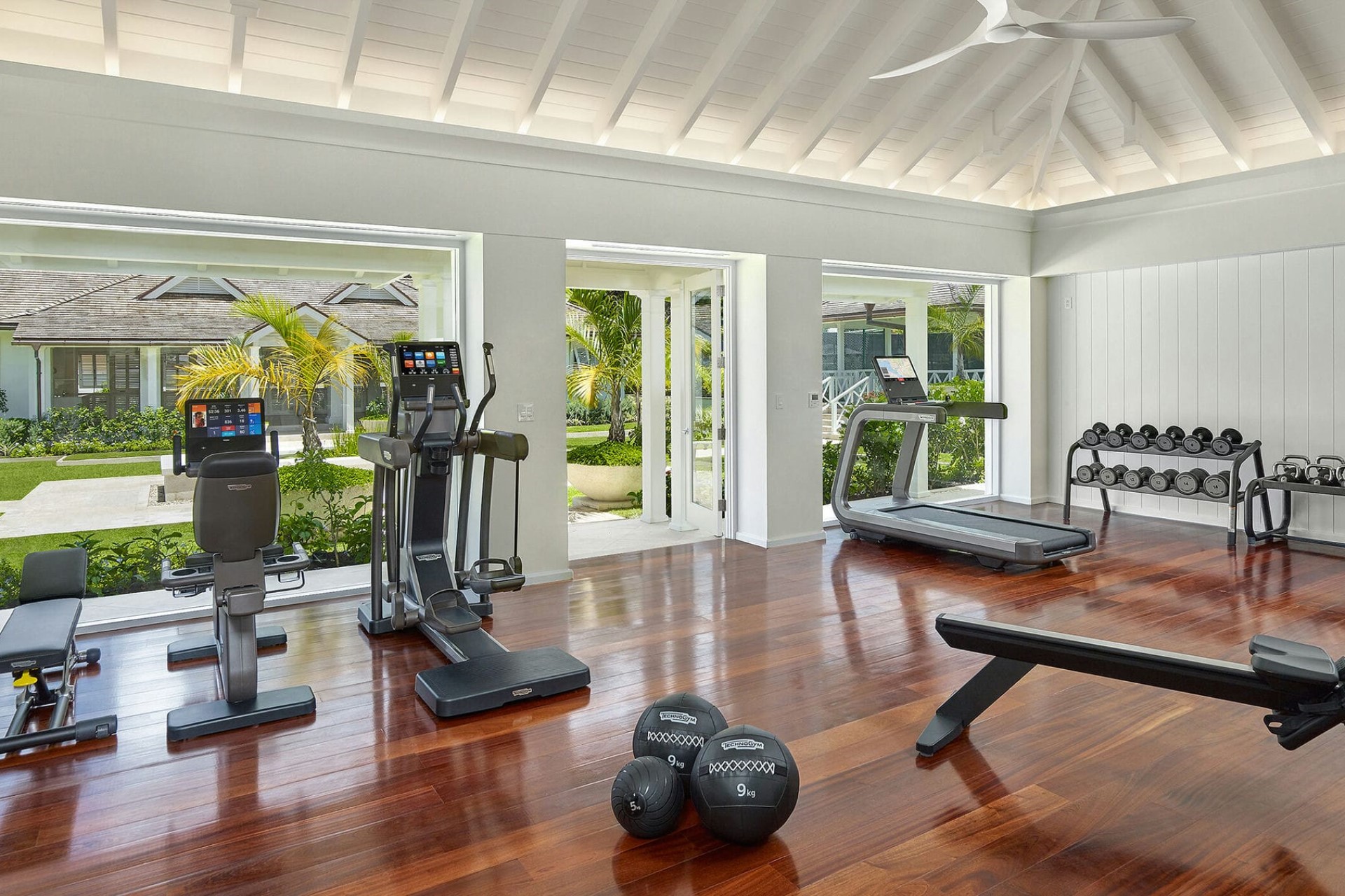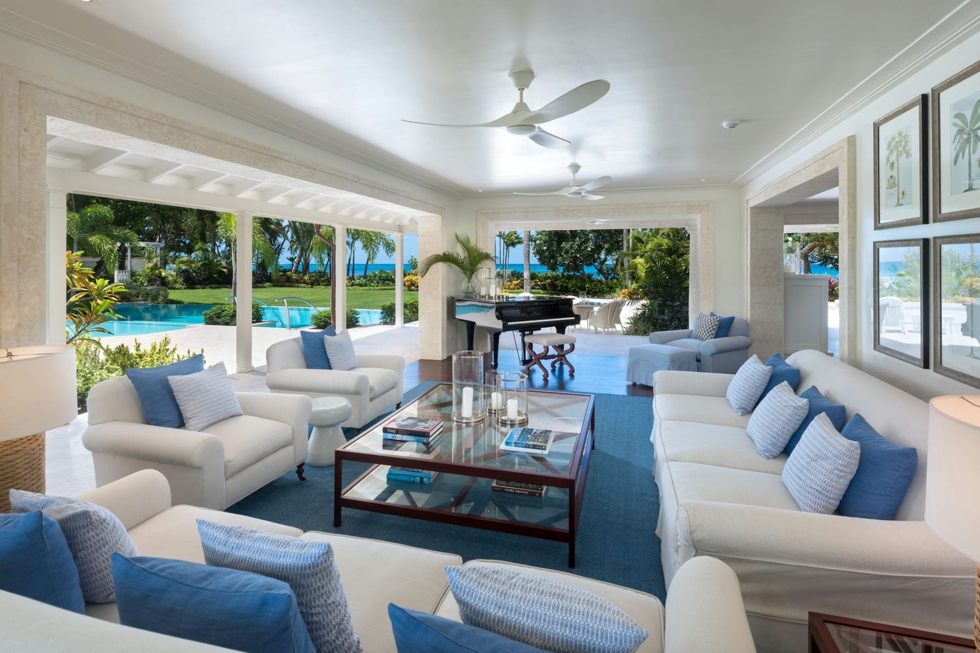 Surrounded by 2.5 acres of manicured tropical gardens, the villa offers plenty of outdoor space to soak up the sunshine and sea air. It is split between the main estate, which faces the sparkling waters of the Caribbean, and a smaller estate on the land side, with lush garden views.