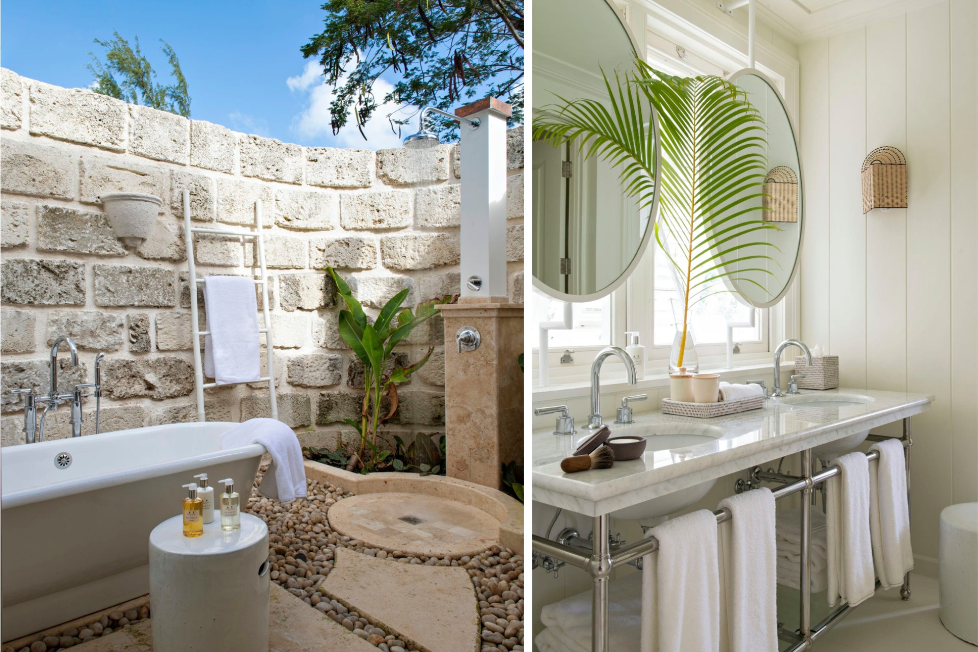 Cottage Suite 2 – king-size bed (converted to 2 x twin beds on request), sitting area, en-suite bathroom with dual vanity & shower, private courtyard with outdoor bathtub & separate outdoor shower, and private terrace with sea views