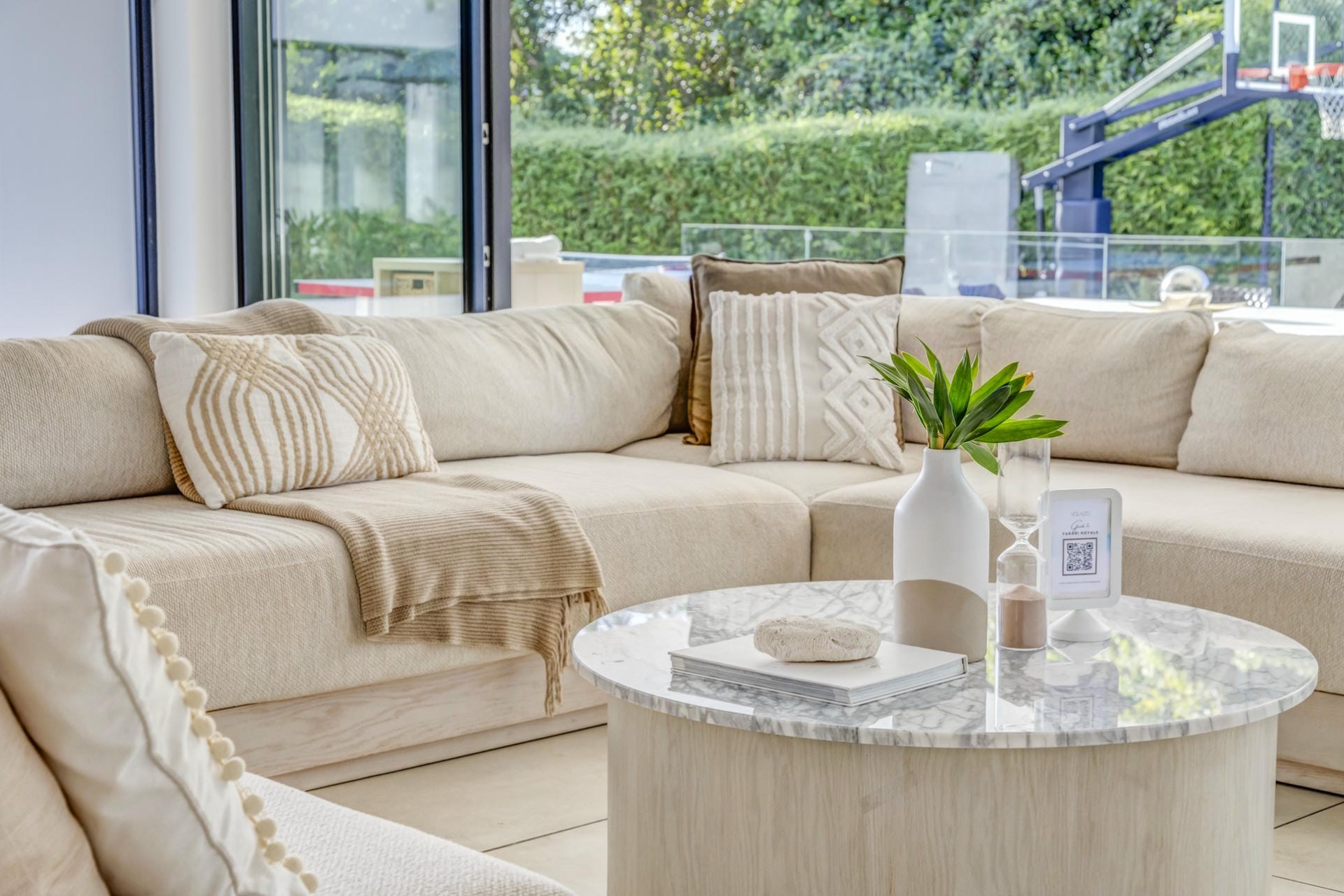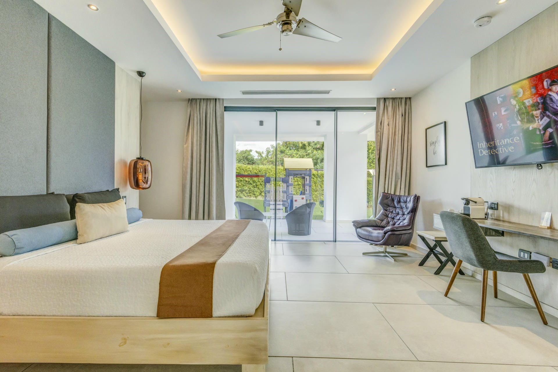 Upon entering the villa, a large foyer with high ceilings greets guests, with cool garden breezes from the terrace. In the main living areas, and throughout the property, the villa is sprinkled with subtle modern touches and governed by a minimalistic outlook. The furniture is cleverly positioned to find the perfect balance, giving a relaxed ambiance for all guests to provide a relax ambience enabling guests to fully enjoy its unique amenities.