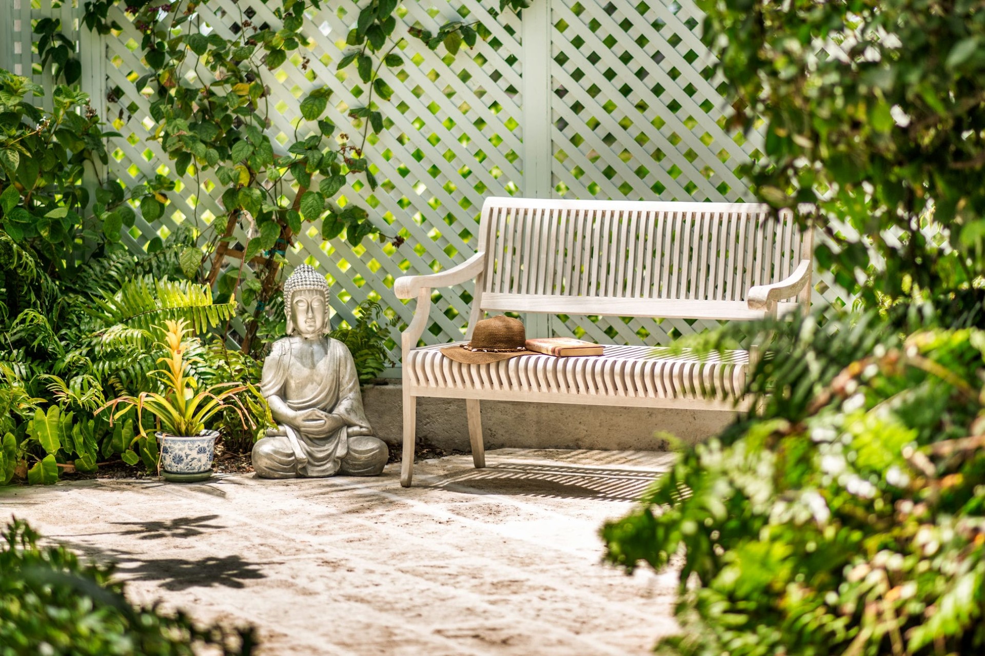An internal courtyard shaded by tropical greenery provides the perfect place to enjoy some peace and tranquillity, or perhaps catch up on a holiday read.