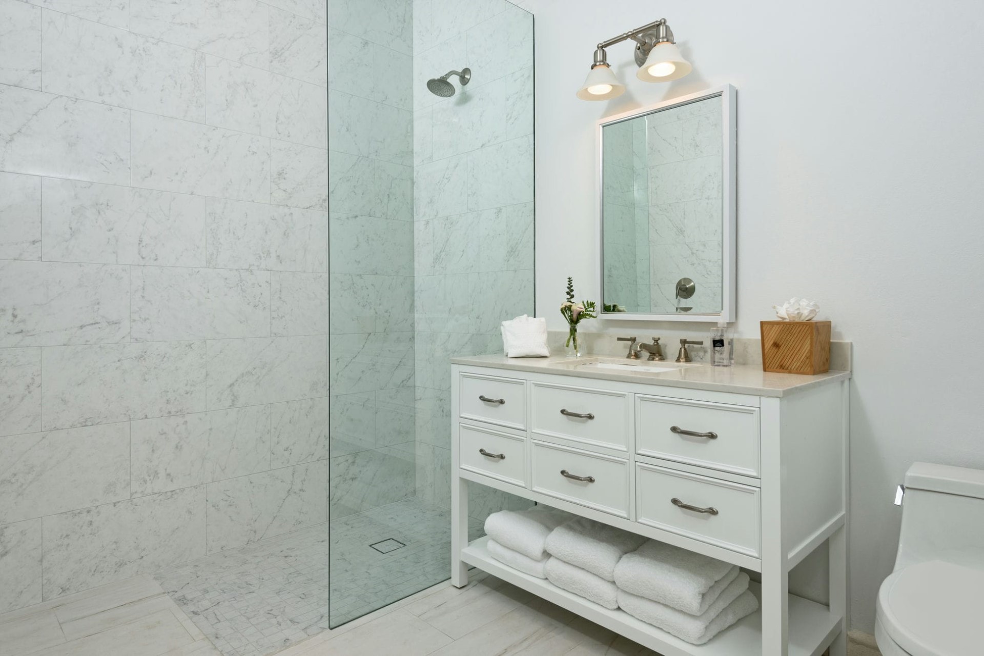 Bedroom 3 – queen-size bed and en-suite bathroom with shower