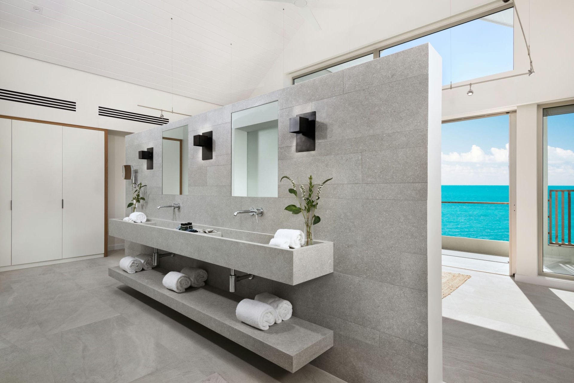 Nine bedrooms are spread across the villa’s two main floors, sleeping up to 16 adults and six children in total. Most bedrooms boast en-suite facilities and ocean or lagoon views. A bunk room is ideal for children, while teens will love the twin rooms tucked away near the conference room, offering more privacy.