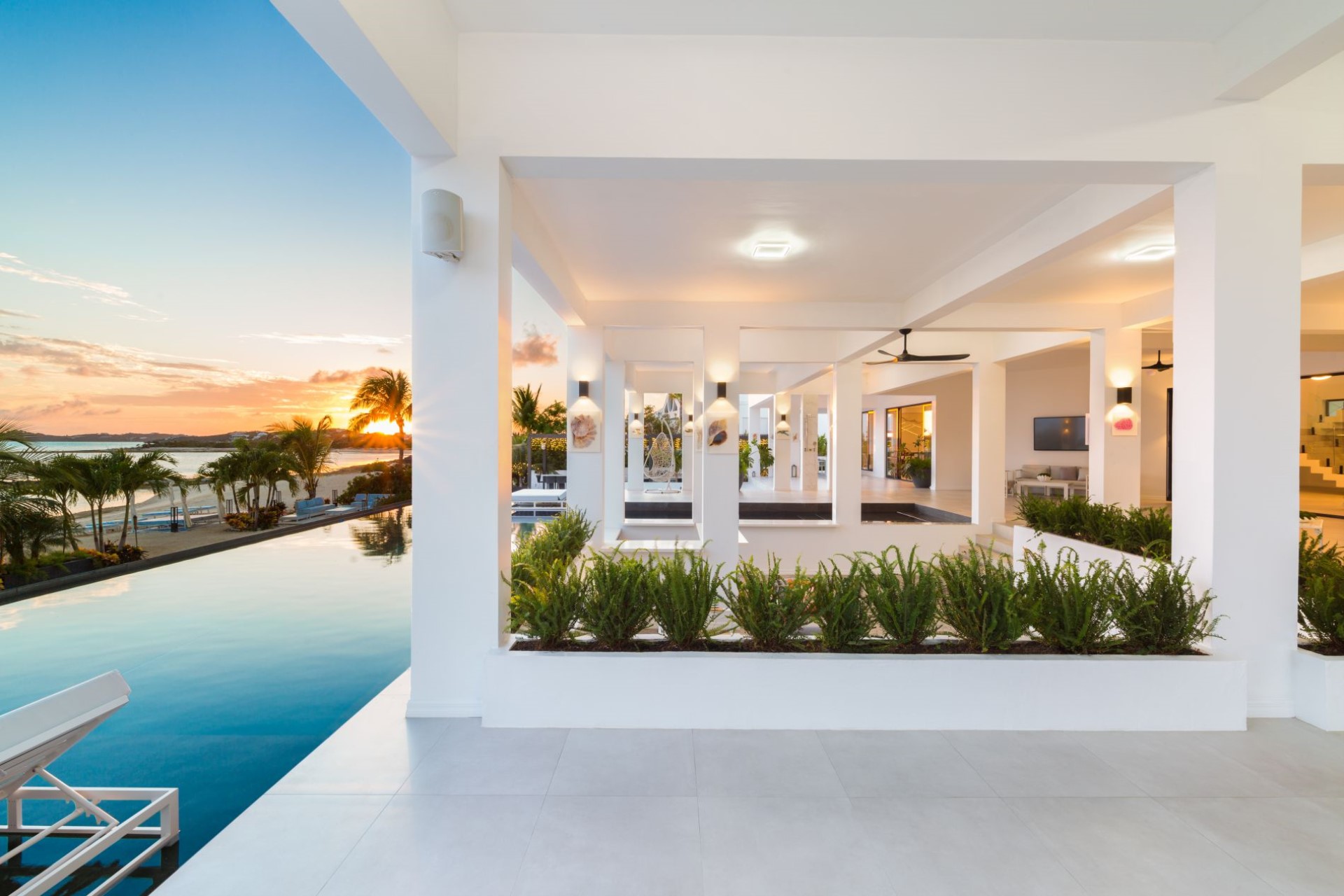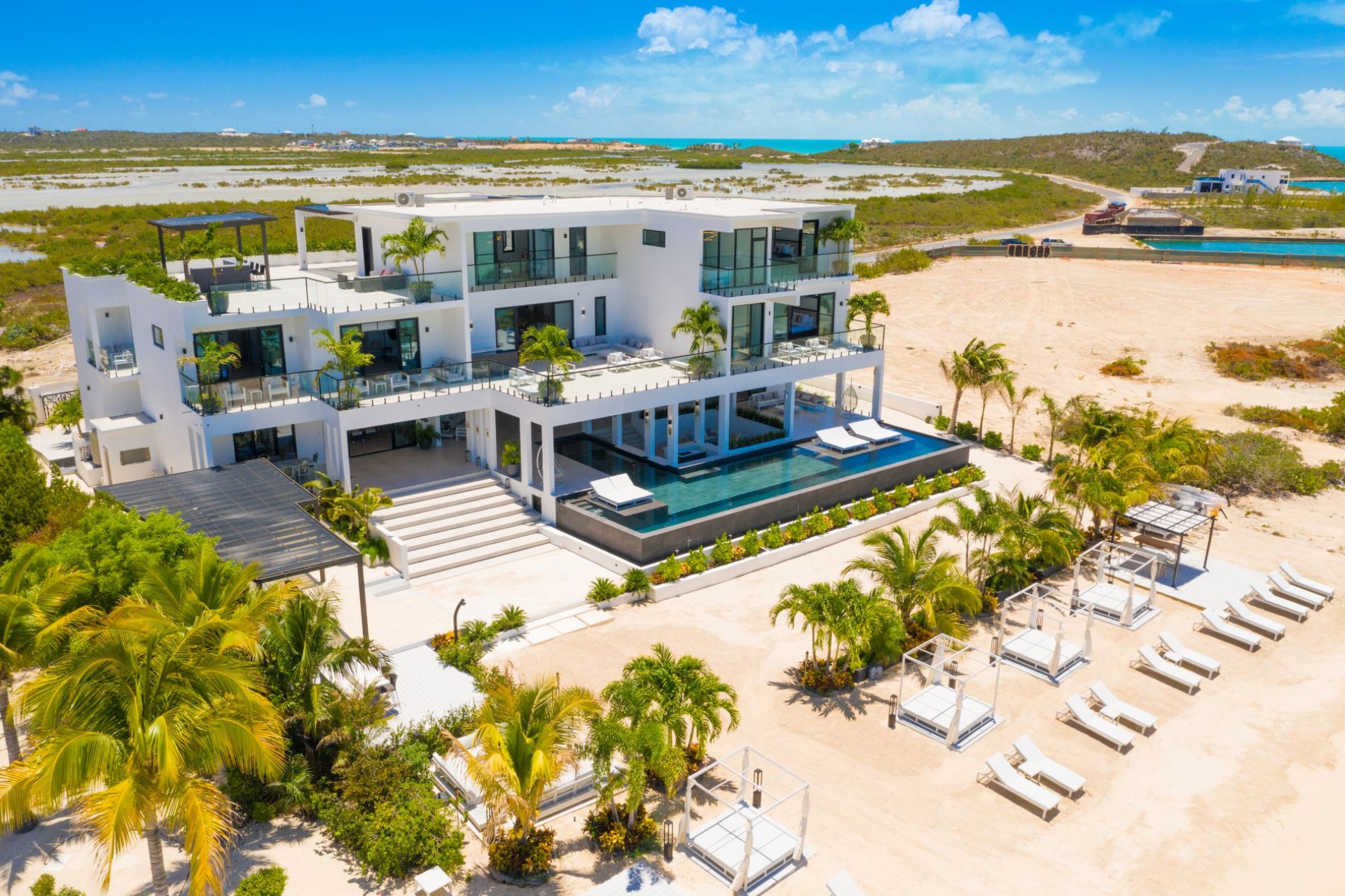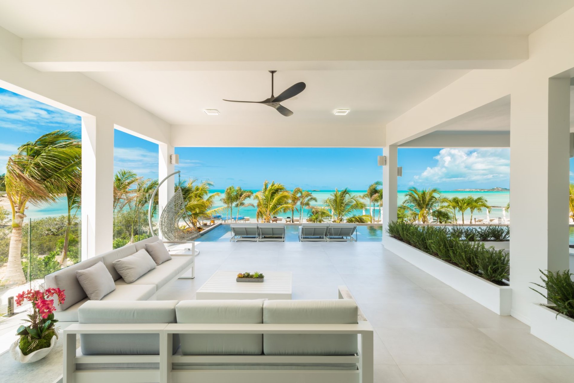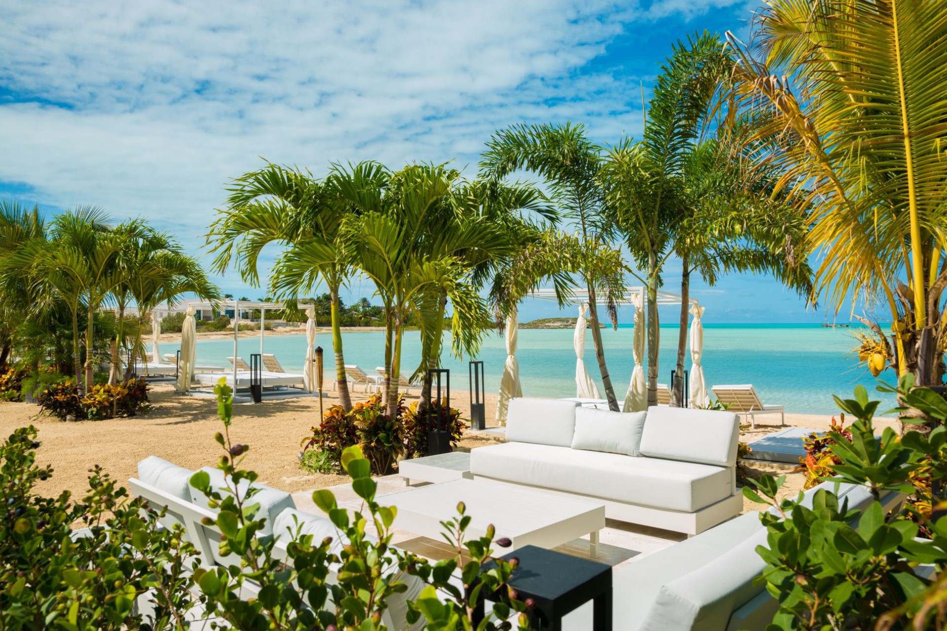 The villa lies on a long stretch of beach with white sand and stunning turquoise waters. Moreover, the world-famous Grace Bay and Long Bay beaches are just a short drive away. Grace Bay is known for its clear and still waters, ideal for snorkelling, paddle boarding and parasailing, whilst Long Bay is the perfect place for horse riding through the shallows.