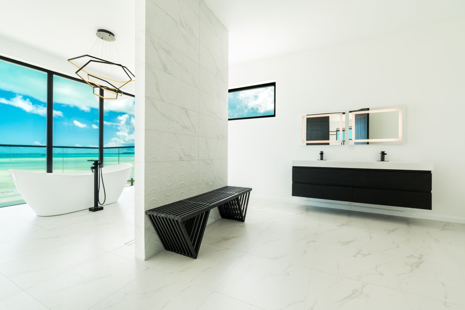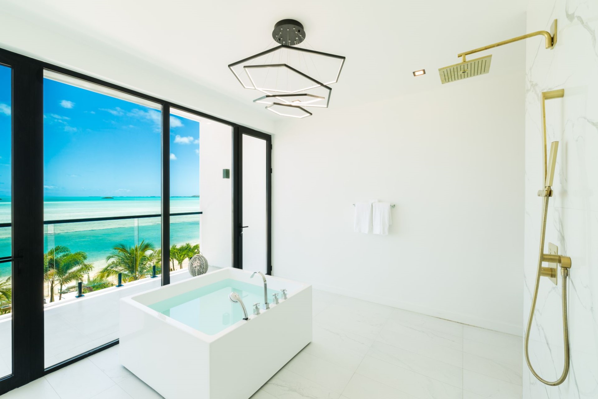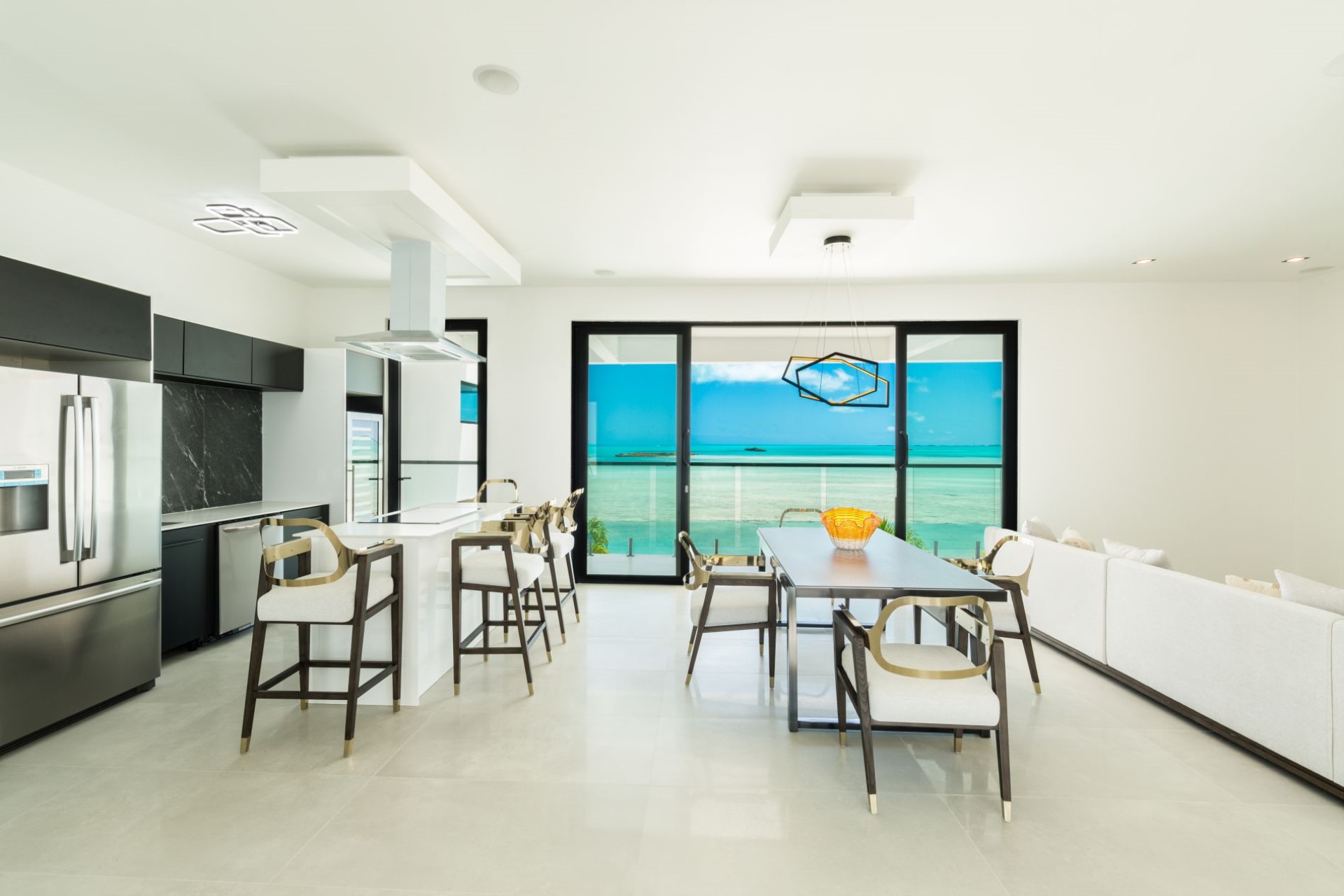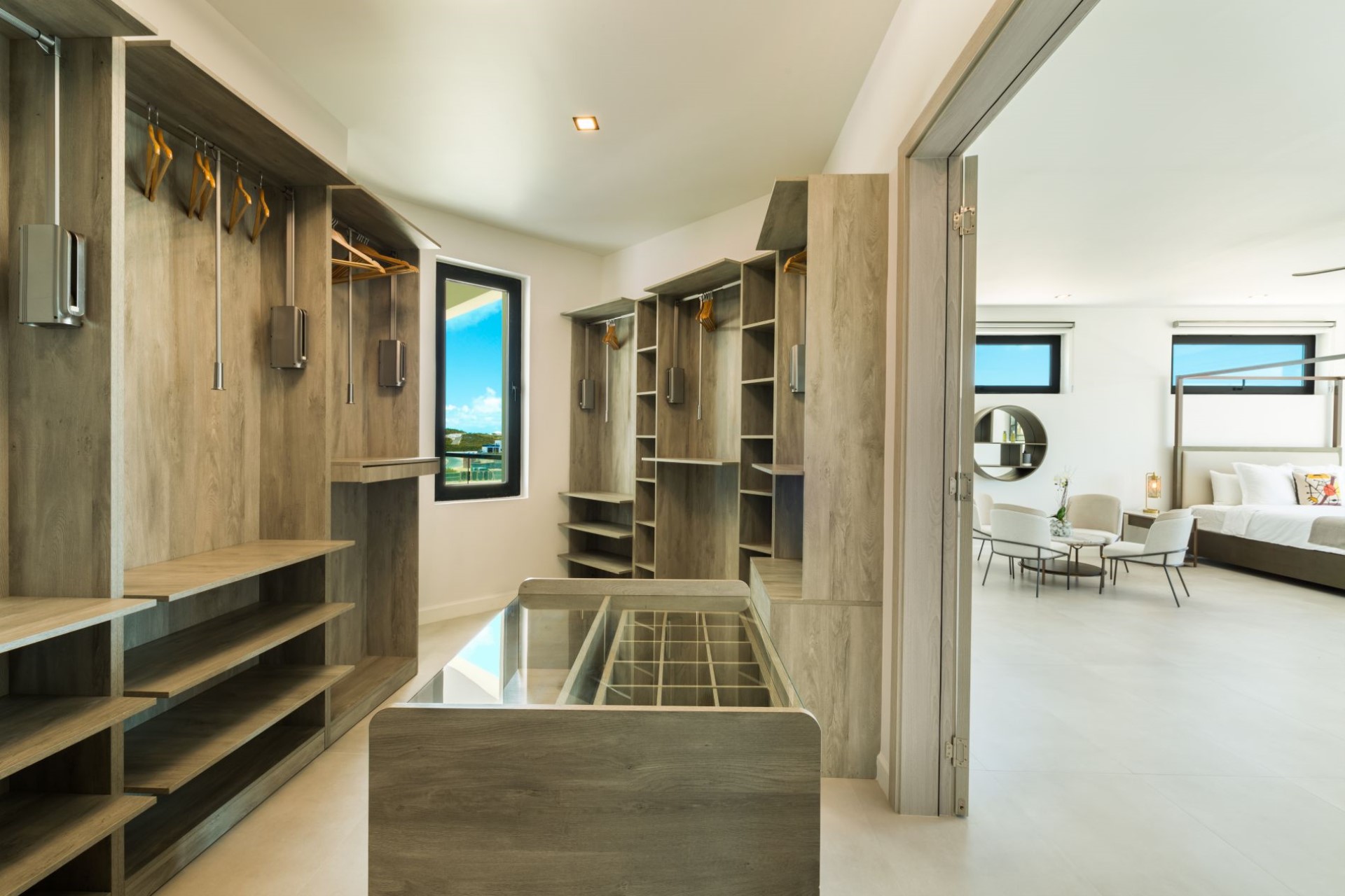 Across the ground and first floors and eight of the nine spacious bedrooms, all with sitting areas and either private balconies or terrace access with ocean views. Most of the rooms have en-suite facilities, though two share a Jack-and-Jill style shower room, ideal for families with children. The master suites also boast dressing rooms and large bathrooms overlooking the turquoise waters of the Caicos Banks.