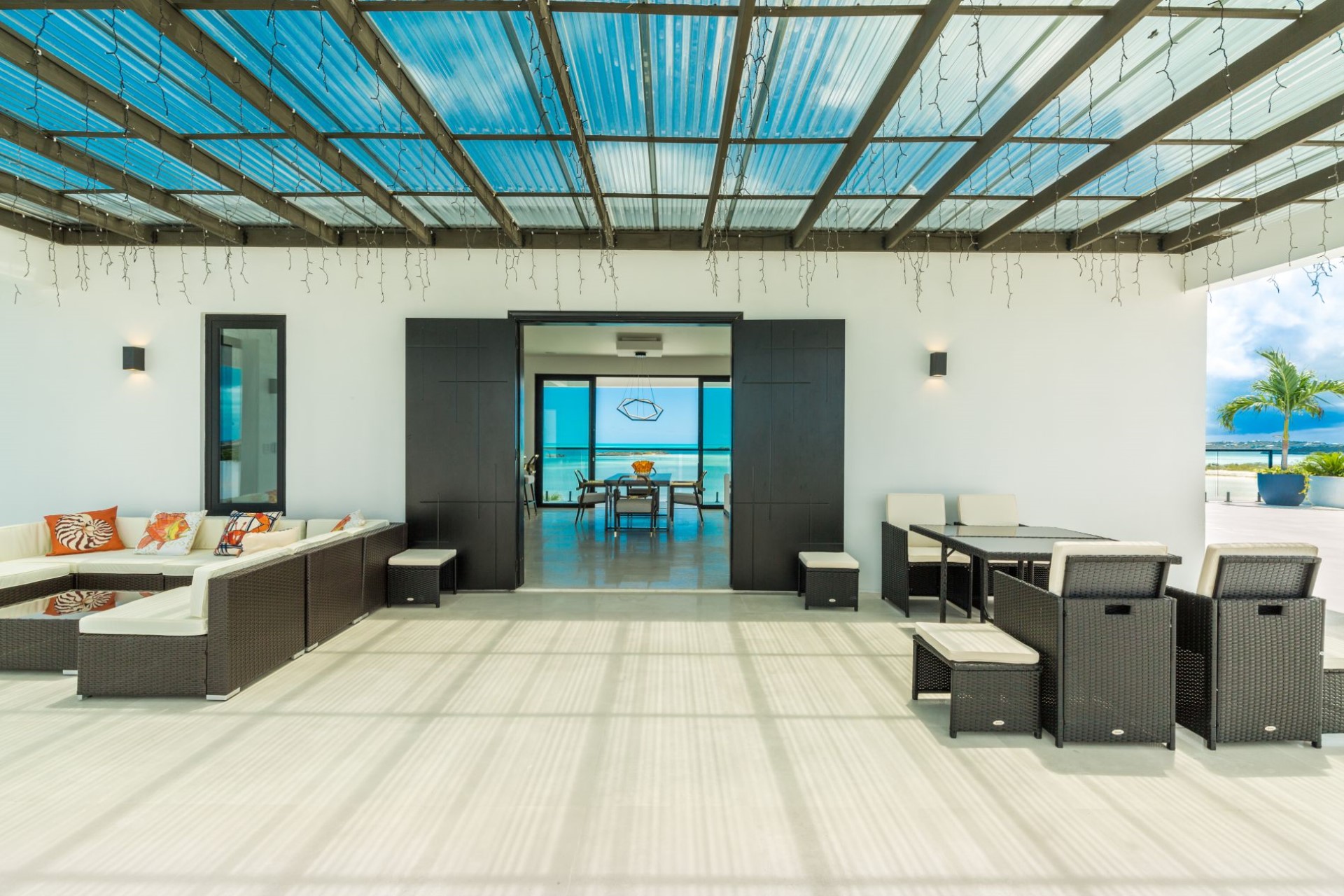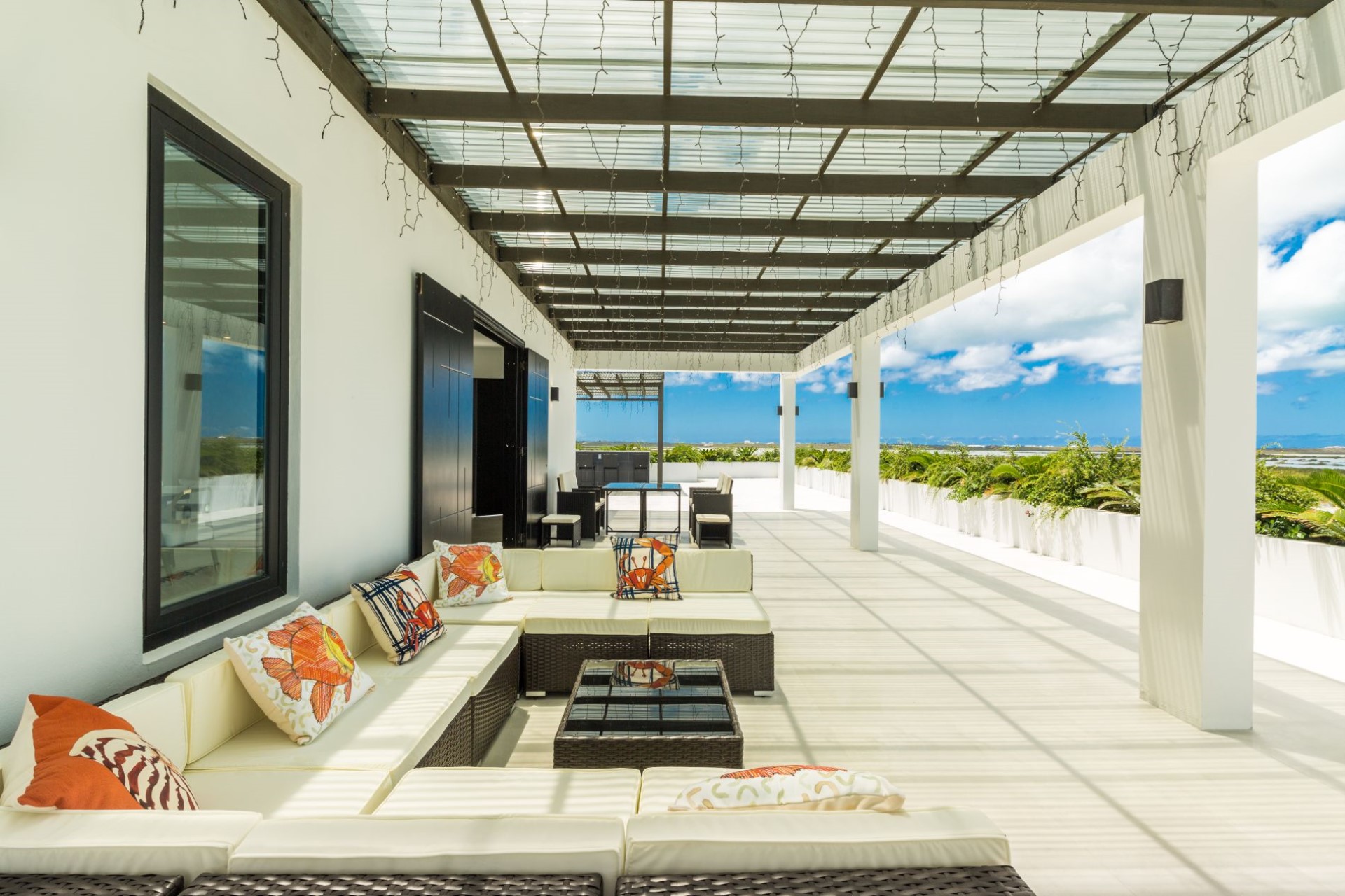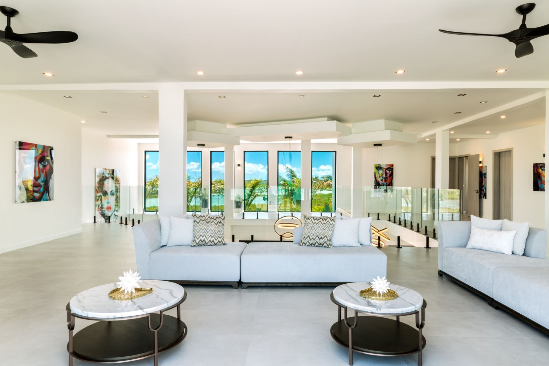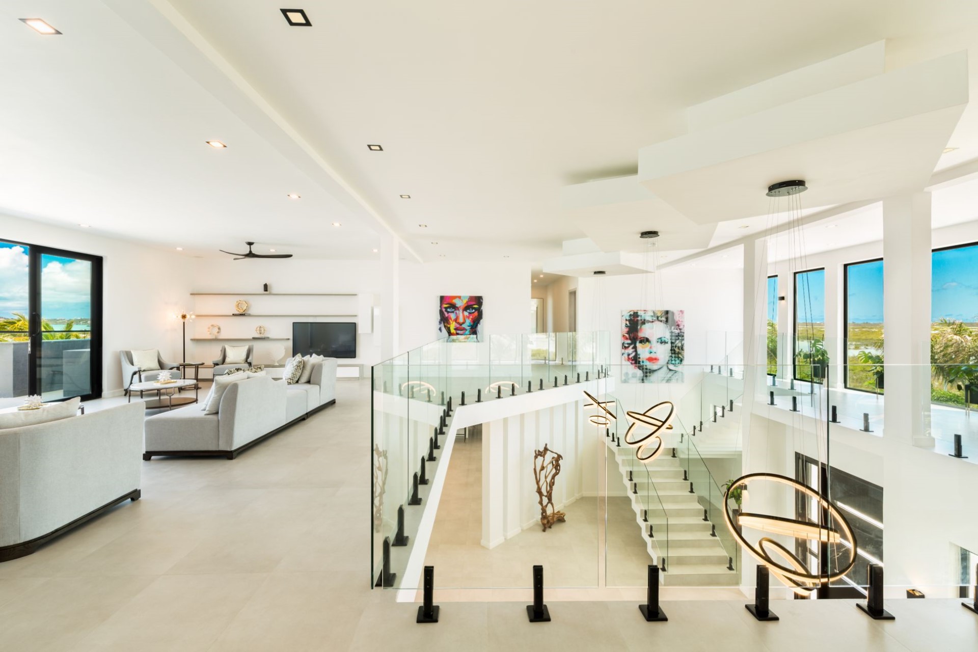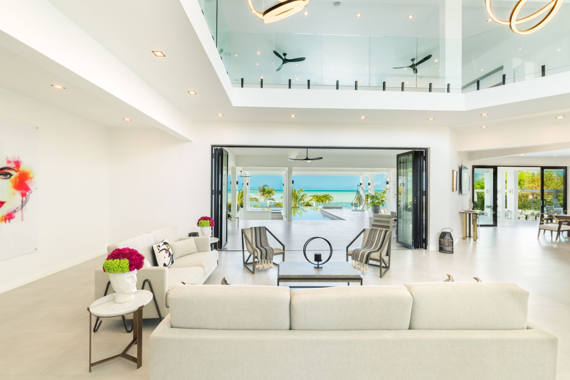 Above the atrium is another bright and spacious TV lounge with spectacular views and direct access to the expansive first-floor balcony.