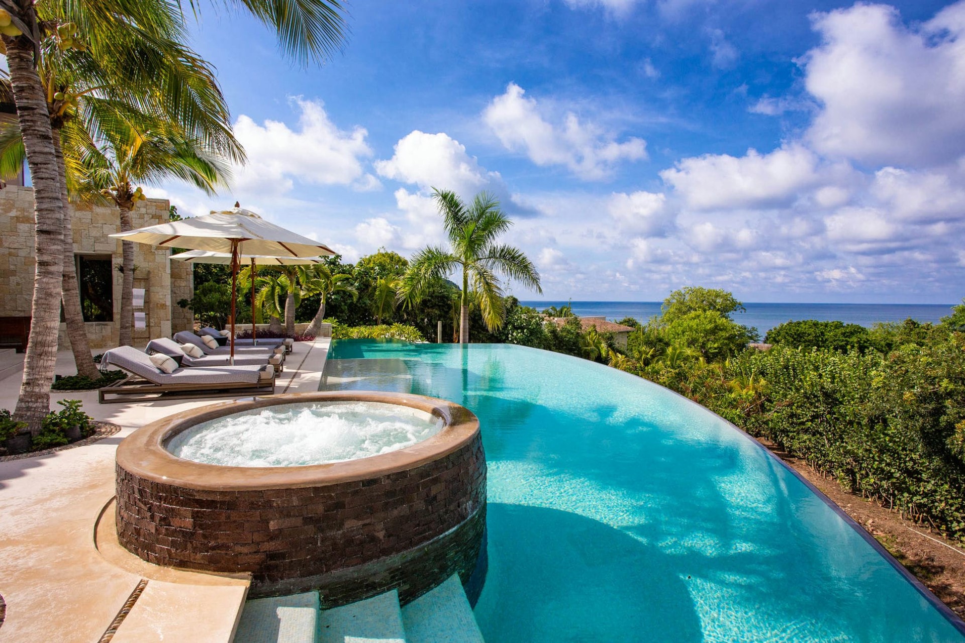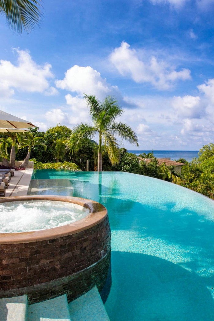 The stunning infinity pool with ocean views is the villa’s focal point. Its waters seemingly melt into the horizon, offering an idyllic setting for a refreshing dip or topping up a tan on poolside loungers. A bubbling Jacuzzi at one end of the pool is the perfect spot to enjoy a tropical cocktail and take in a spectacular sunset.