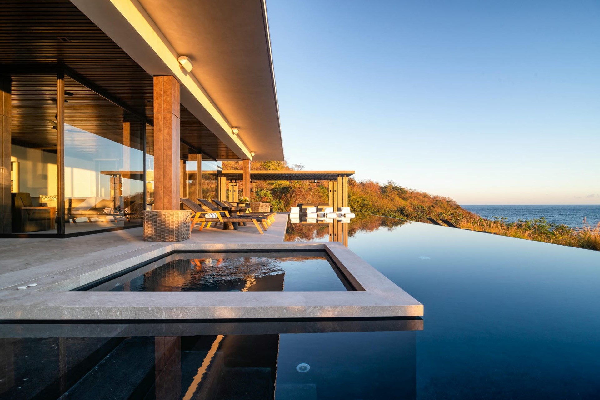 The villa is a contemporary masterpiece, with the outdoor areas seamlessly flowing into spacious interiors. The vast floor-to-ceiling windows frame panoramic views of the Pacific Ocean and the lush jungle, creating a truly immersive connection with nature. Modern furnishings and tasteful décor throughout create an atmosphere of sophistication and tranquillity.