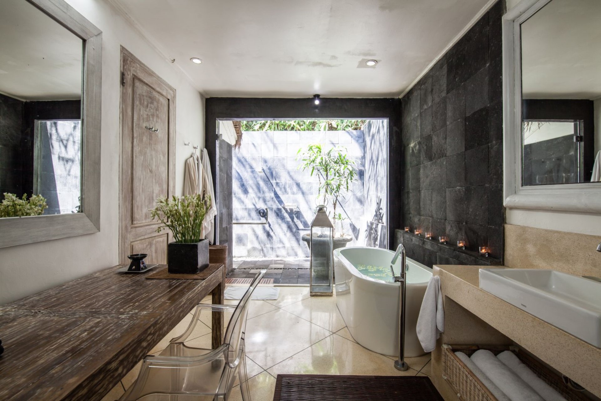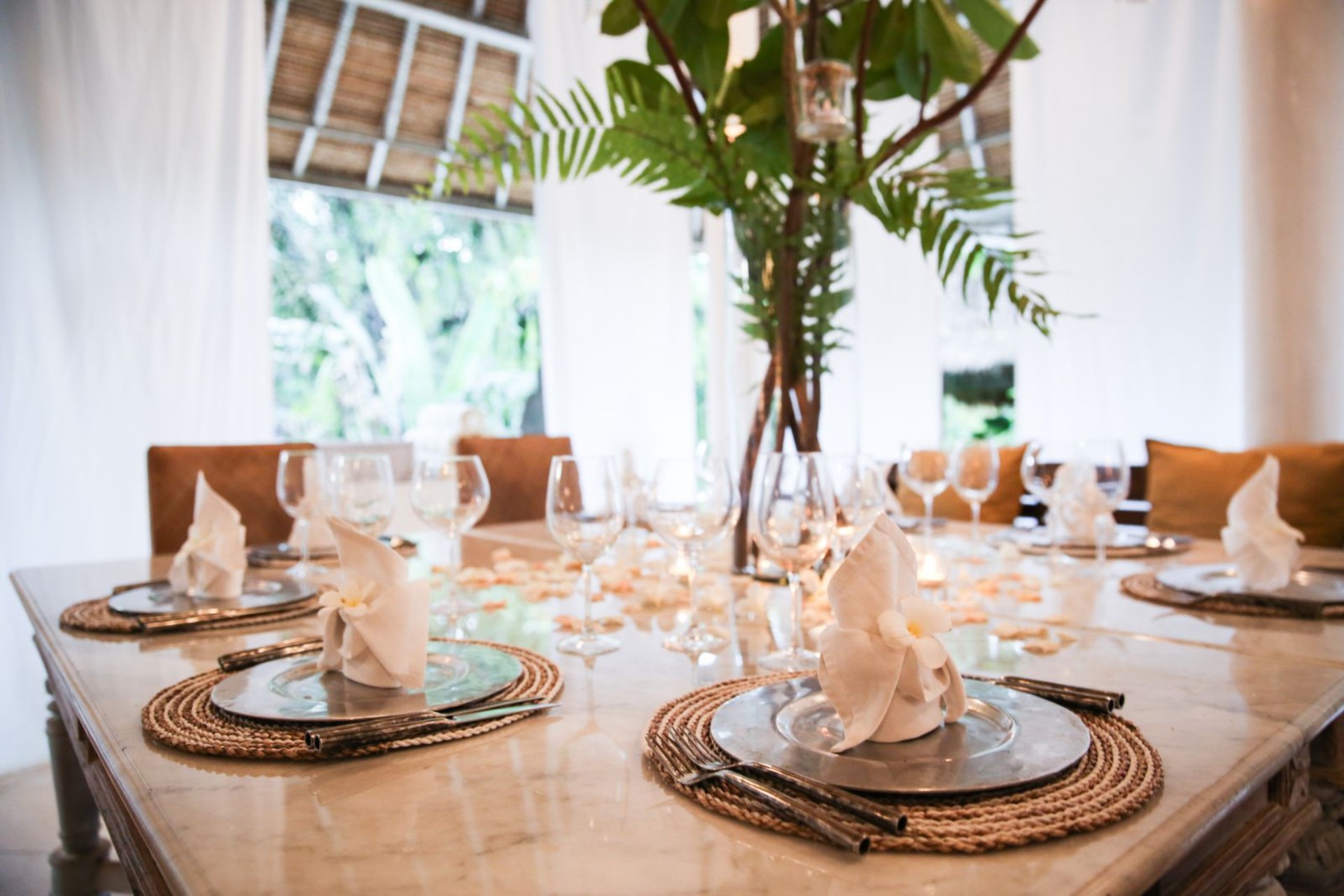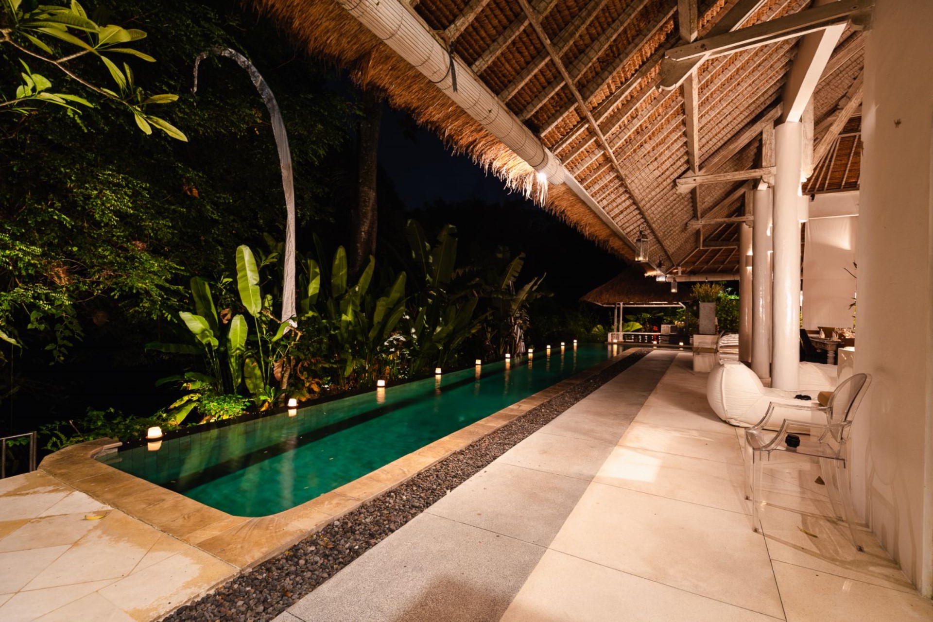 The villa design is simple yet elegant, enhancing the beauty of the natural surrounds, with traditional Balinese thatched roofing and high ceilings, stone floors, custom-made lime-washed and waxed furniture, and stunning furnishings.