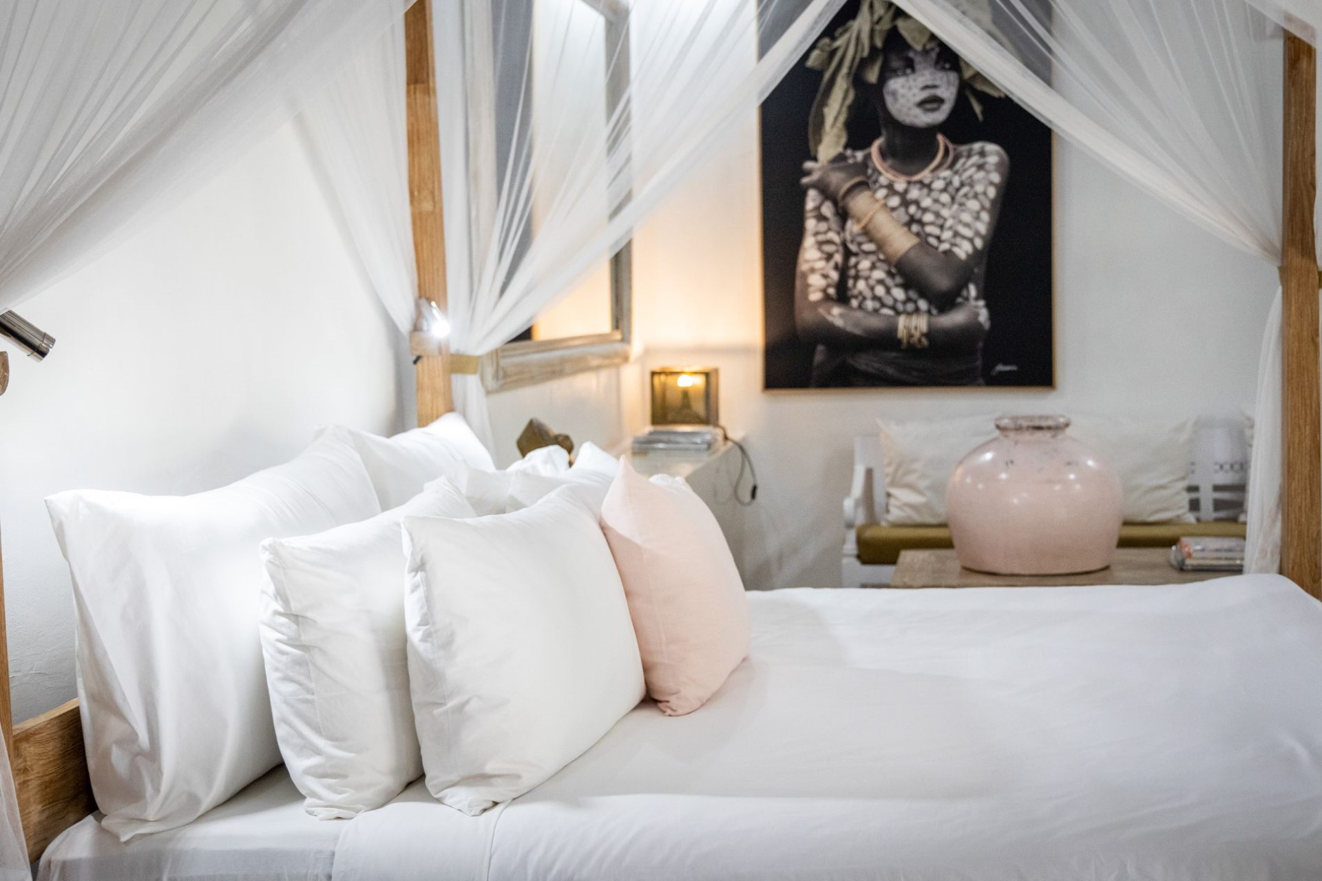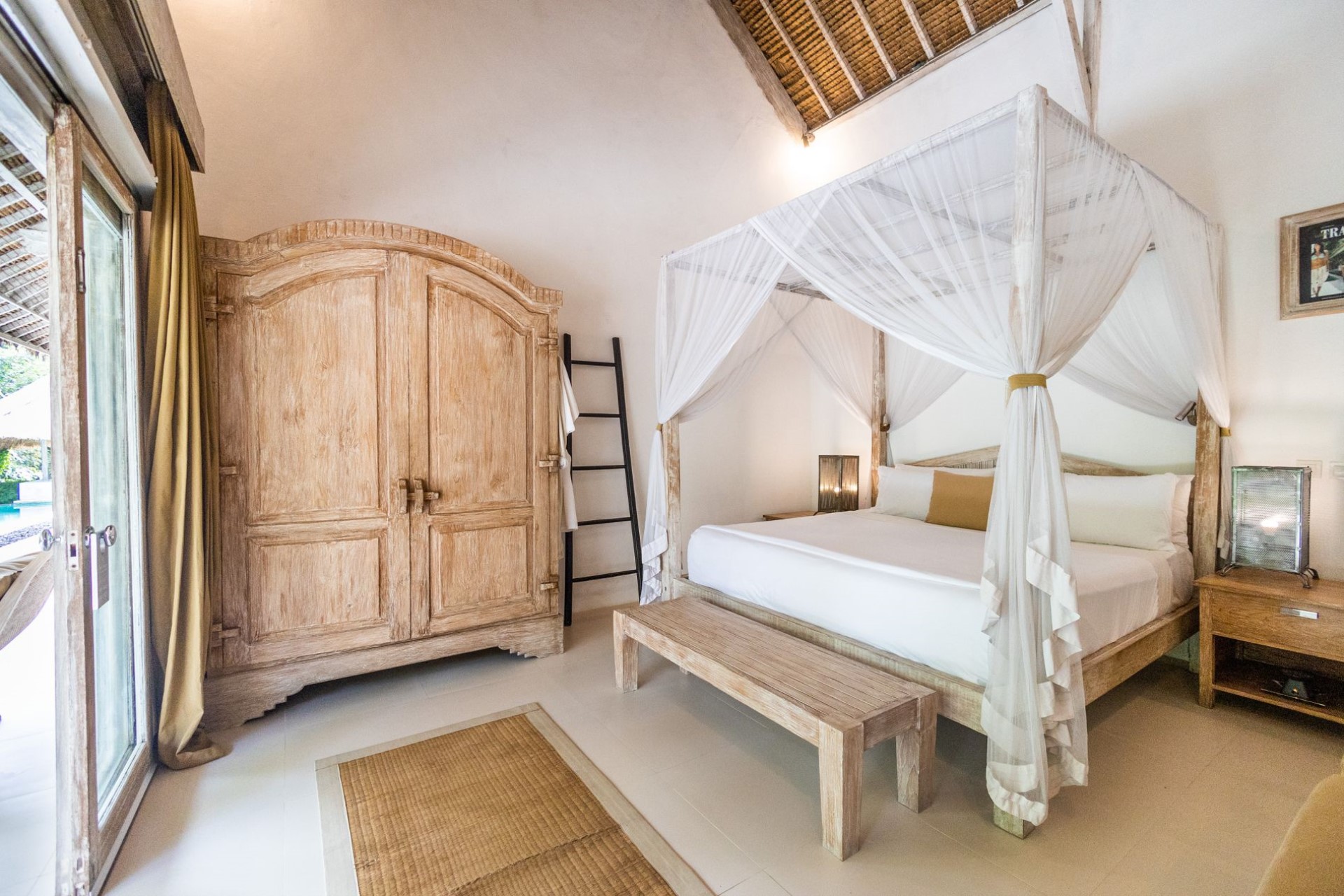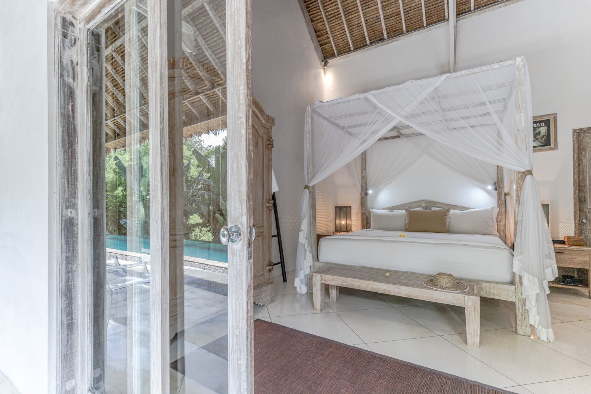 Bedroom 3 – king-size bed, dressing room en-suite bathroom with bathtub & outdoor twin showers, and direct access to pool terrace & dining pavilion (cot may be added on request)