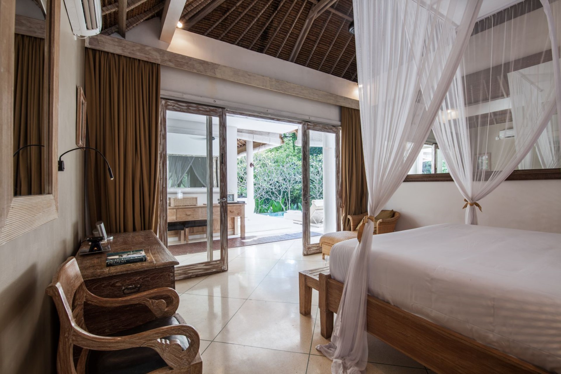 Master Suite – king-size bed, dedicated spa room, en-suite bathroom with outdoor bathtub & twin showers, and direct access to pool terrace (single cot may be added on request)