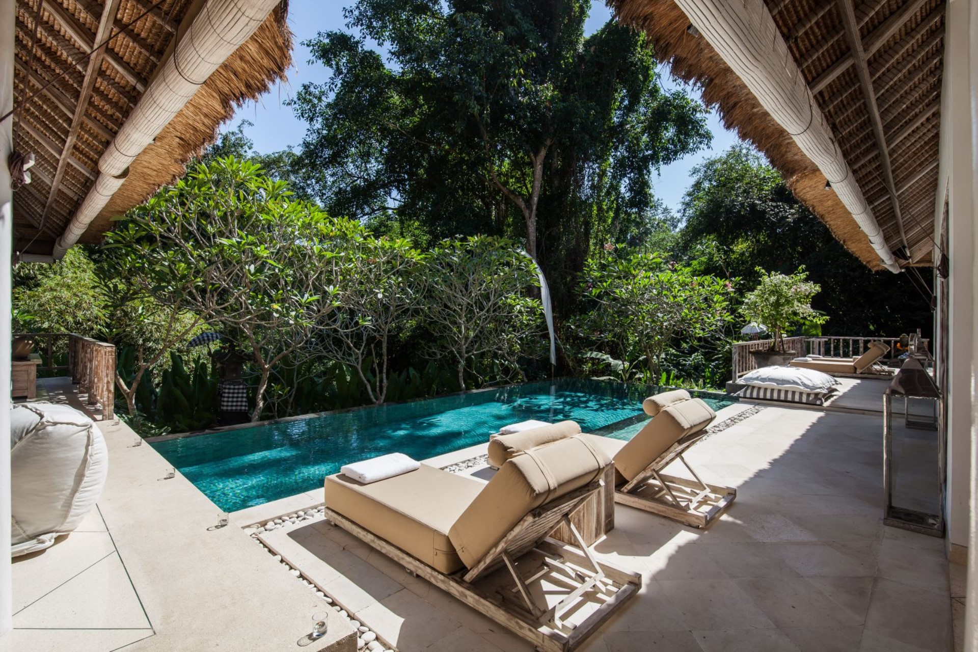 Each villa boasts a large swimming pool flanked by stone terraces with sun loungers, day beds and al fresco dining settings to make the most of the tropical climate.