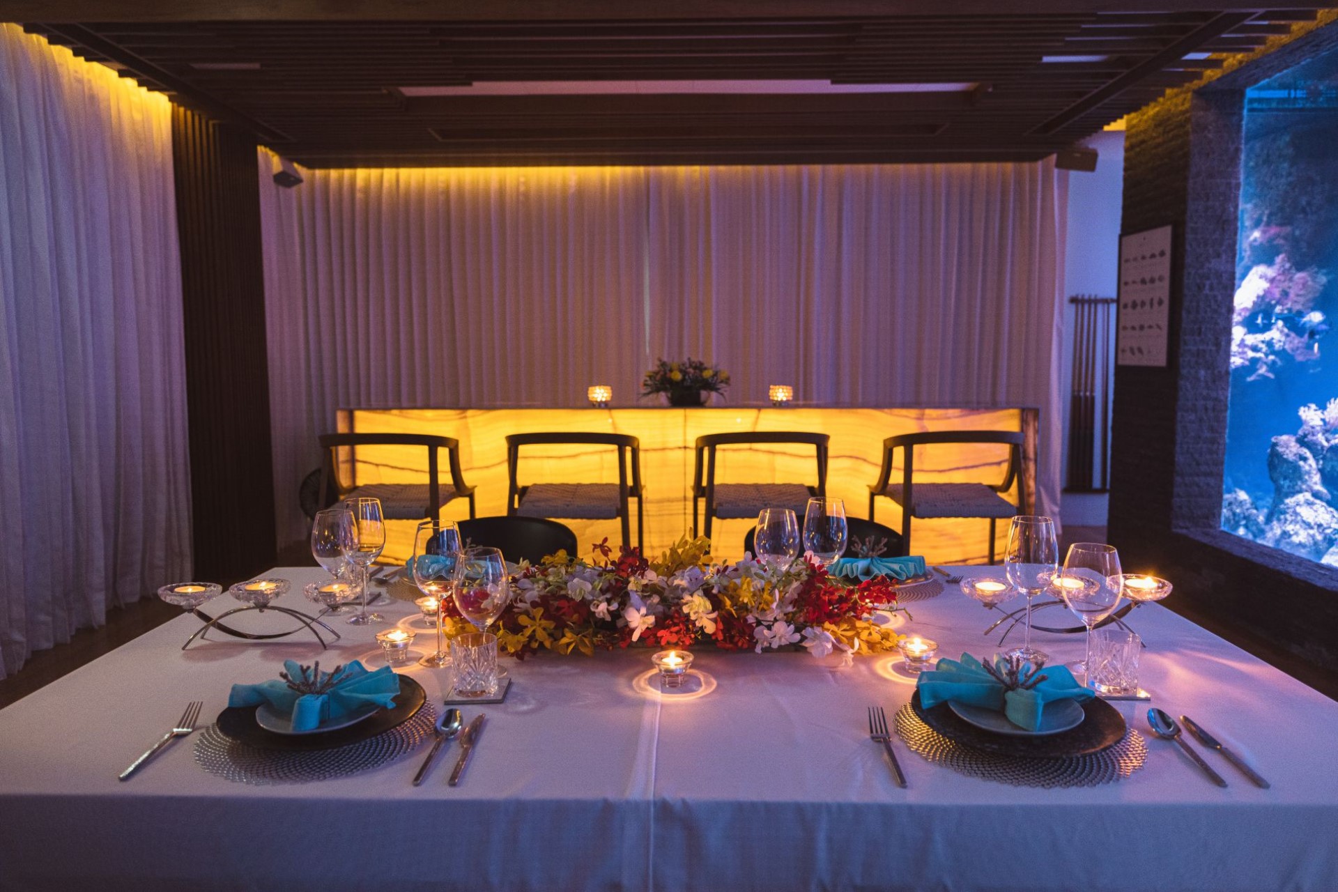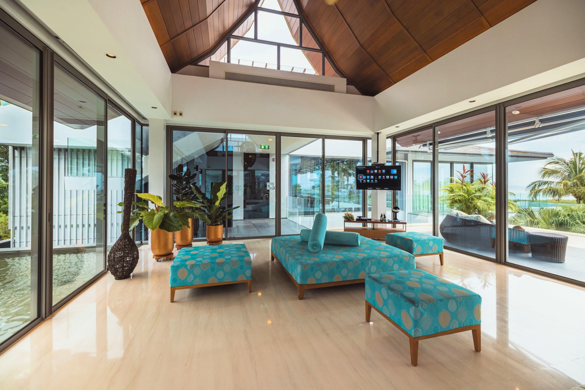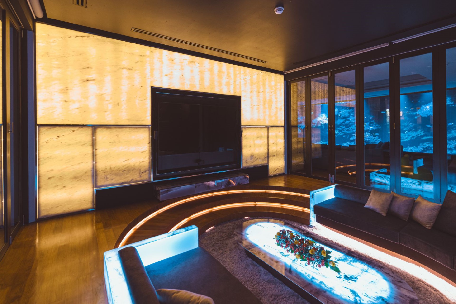 There are a range of entertainment facilities to keep guests of all ages busy, including indoor and outdoor cinemas, a pool table, games consoles, flat screen TVs with satellite and cable stations, and Netflix. Creating a relaxing atmosphere is the 15 m aquarium with over 800 fish of 50 different species.