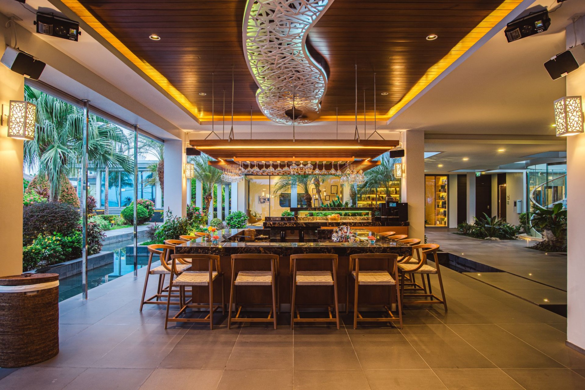 With nine dining areas there’s plenty of opportunity for al fresco fine dining, experiencing the culinary masterpieces prepared by the chef, using locally sourced ingredients. It is also the perfect place for socialising with friends, having a few drinks, and tasting some private label wines at one of the four bars.