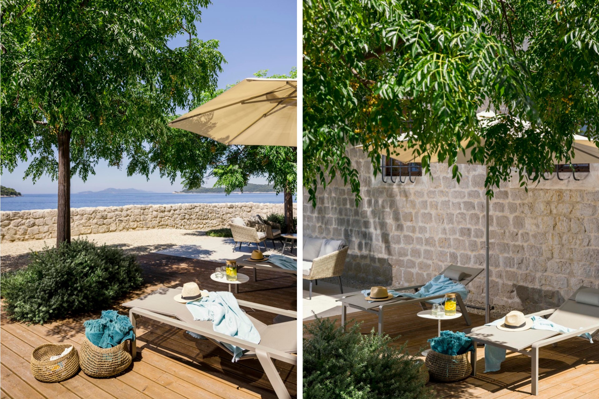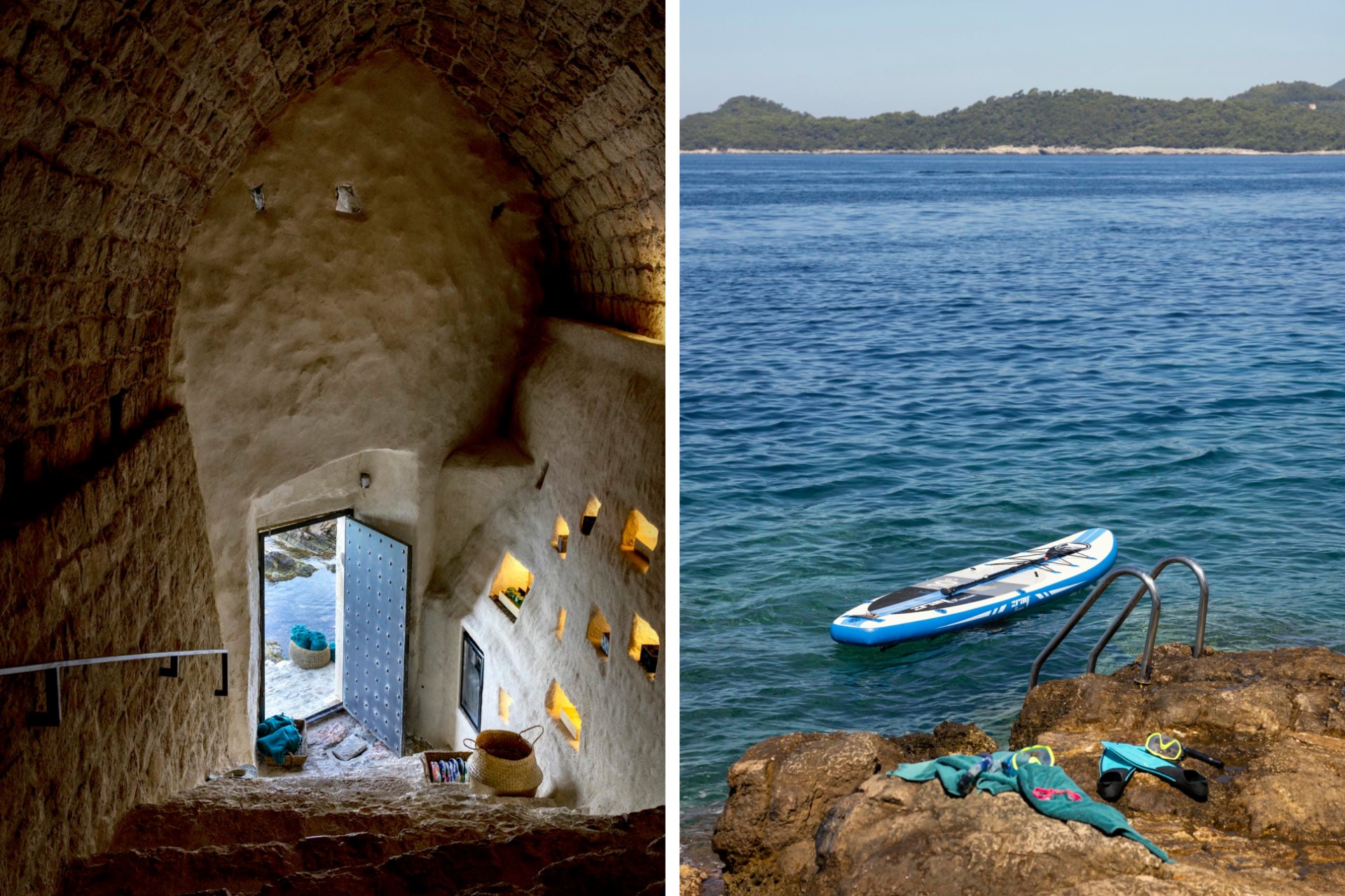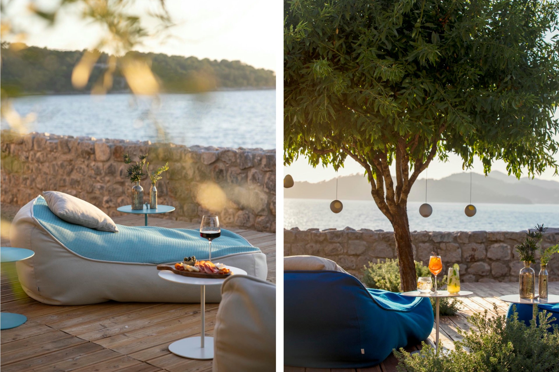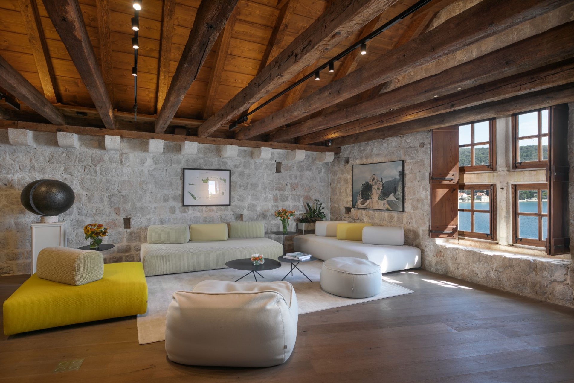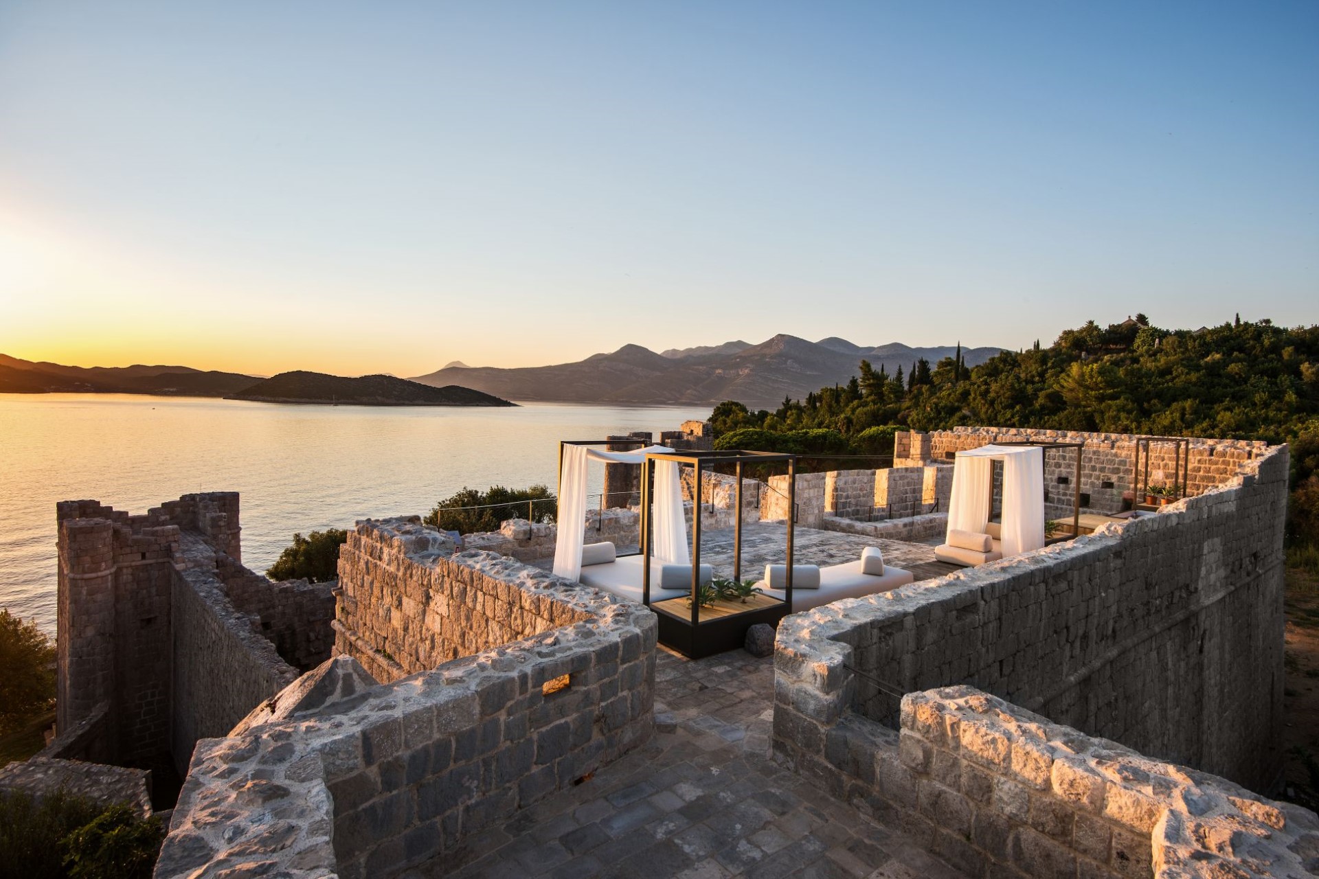 The massive walls of the fortress offer fantastic acoustics, perfect for an evening of outdoor cinema or private concerts. On top of the fortress, a sunset roof terrace offers panoramic views of the sea, the surrounding islands, and the lush national park on Mljet. It’s the perfect space for sipping cocktails as the sun sets over the water or enjoying quiet stargazing from the canopied day beds.