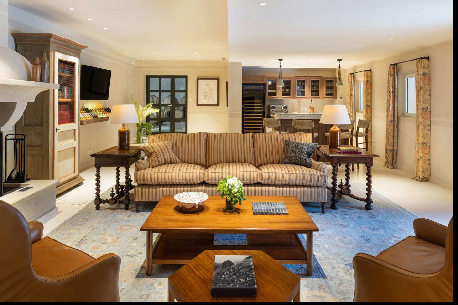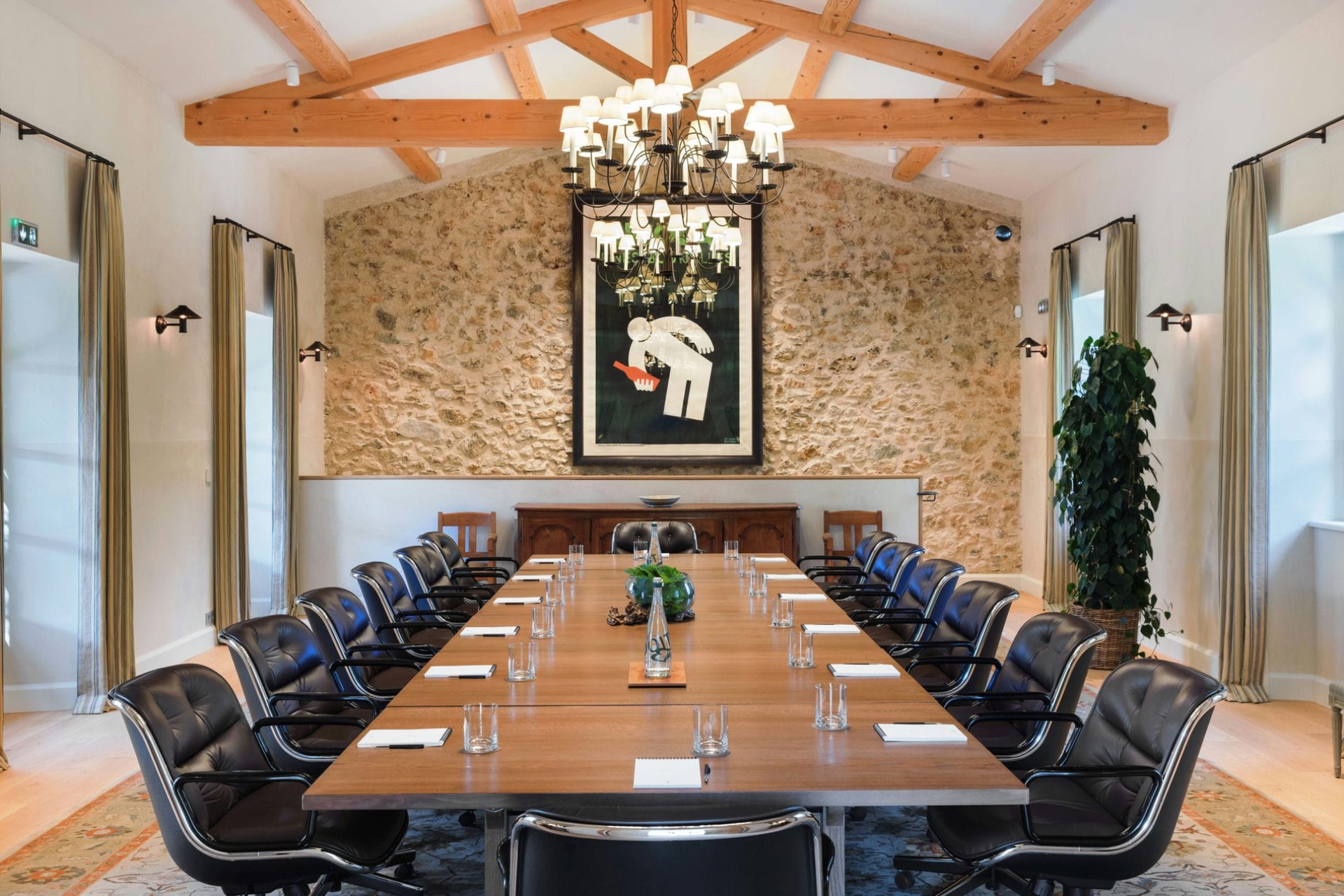Sitting between the stunning gardens and the sprawling vineyard is the menagerie, a space dedicated to entertainment. It features a state-of-the-art cinema seating 20, where guests enjoy exclusive access to the latest cinema releases and blockbusters. Beside this is a games room with a TV, a pool table, shuffleboard and cards tables, plus a table football set. Ideal for corporate trips, the second floor is home to a modern meeting room with conference facilities and a spacious terrace.