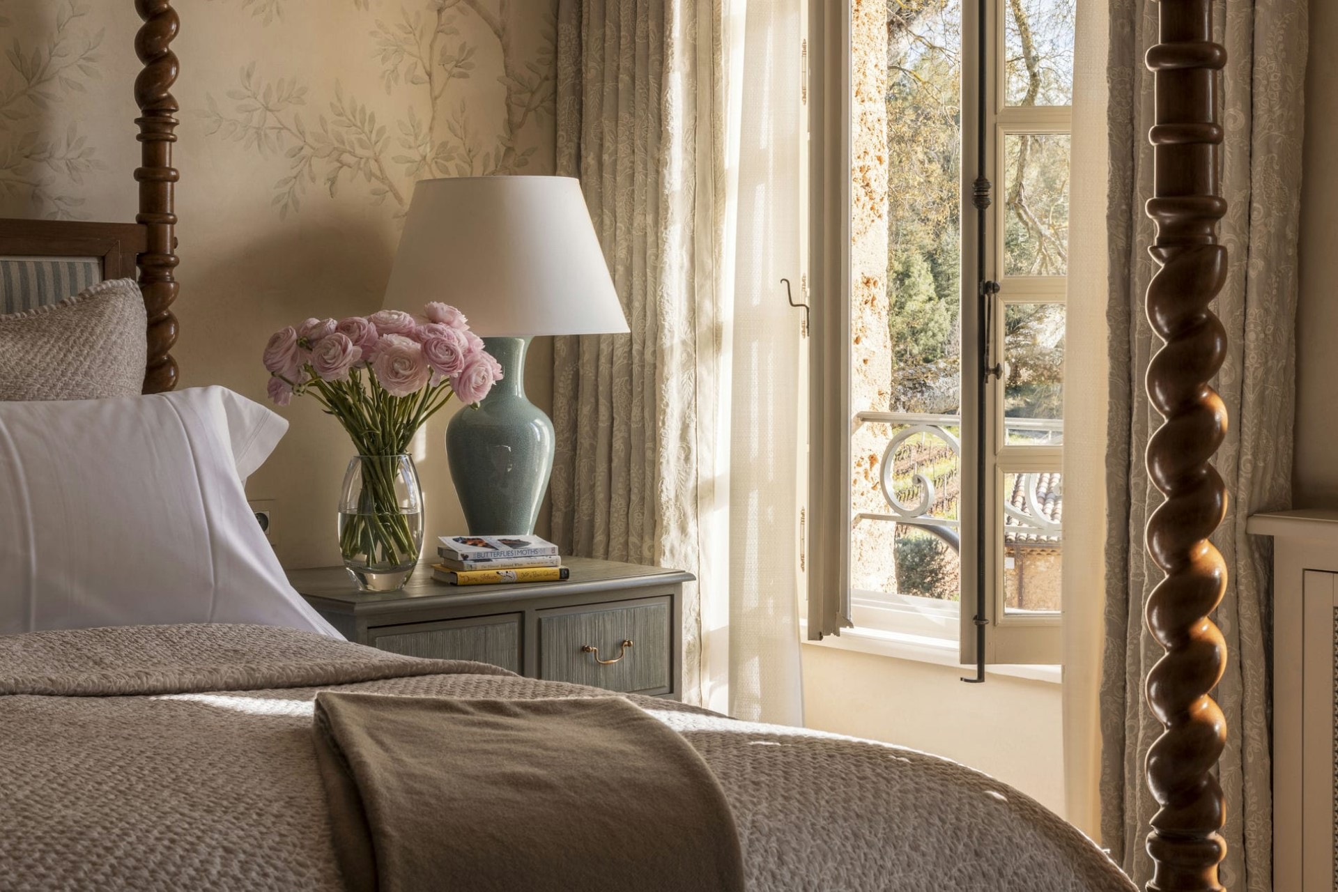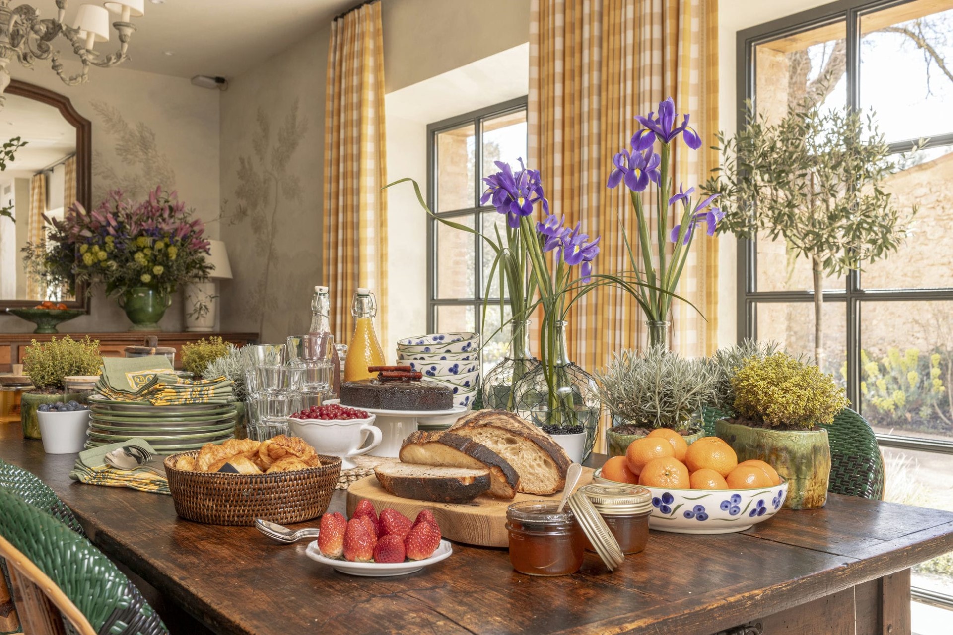 Guests are welcomed into the bastide via large wooden doors leading to a beautiful entrance hall with a grand piano. There is a comfortable sitting room connecting to the property’s chapel and a cosy, well-stocked library featuring titles from all over the world. Delicious meals are served in the elegant dining room, plus there’s an informal breakfast room.
