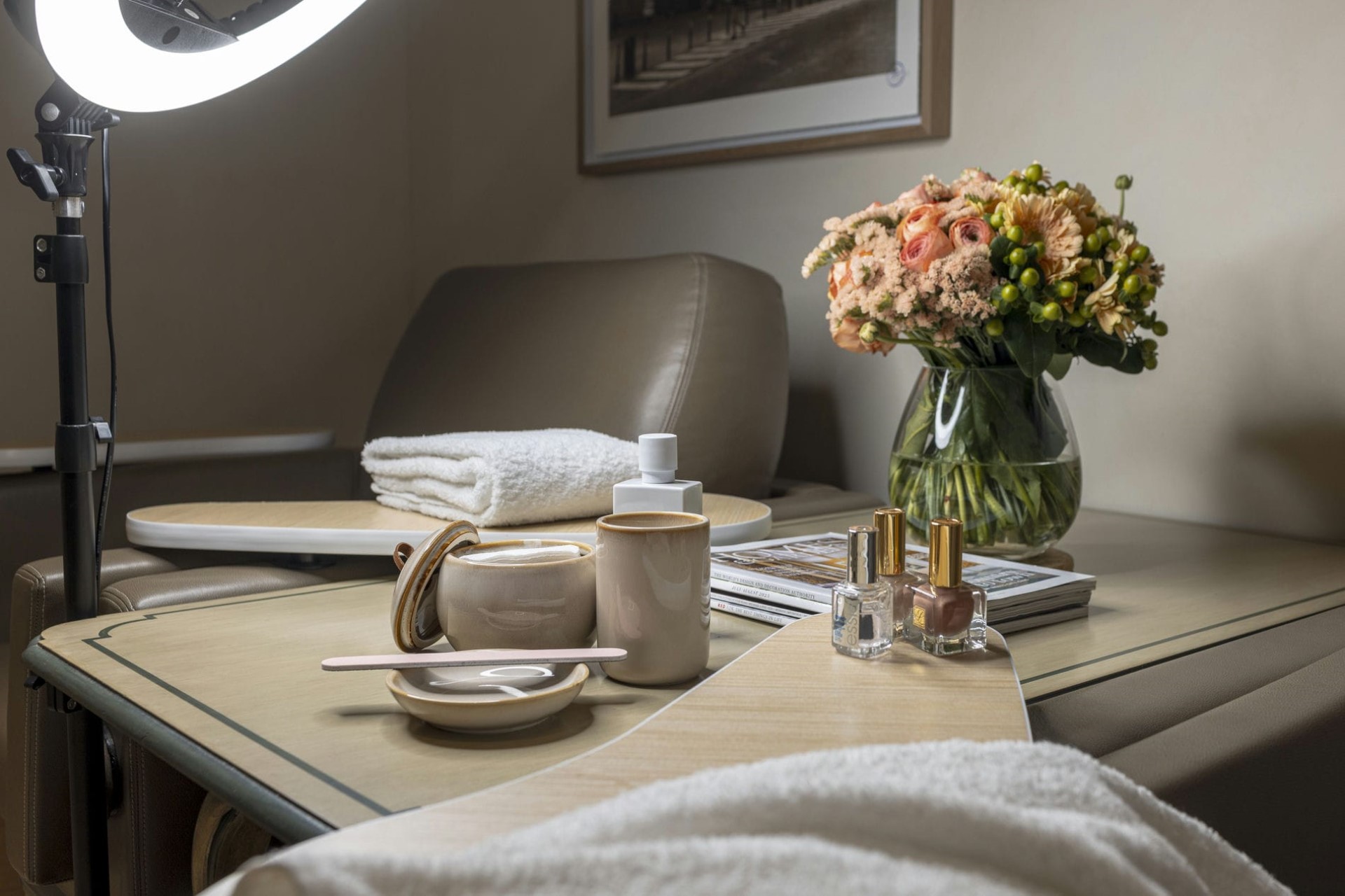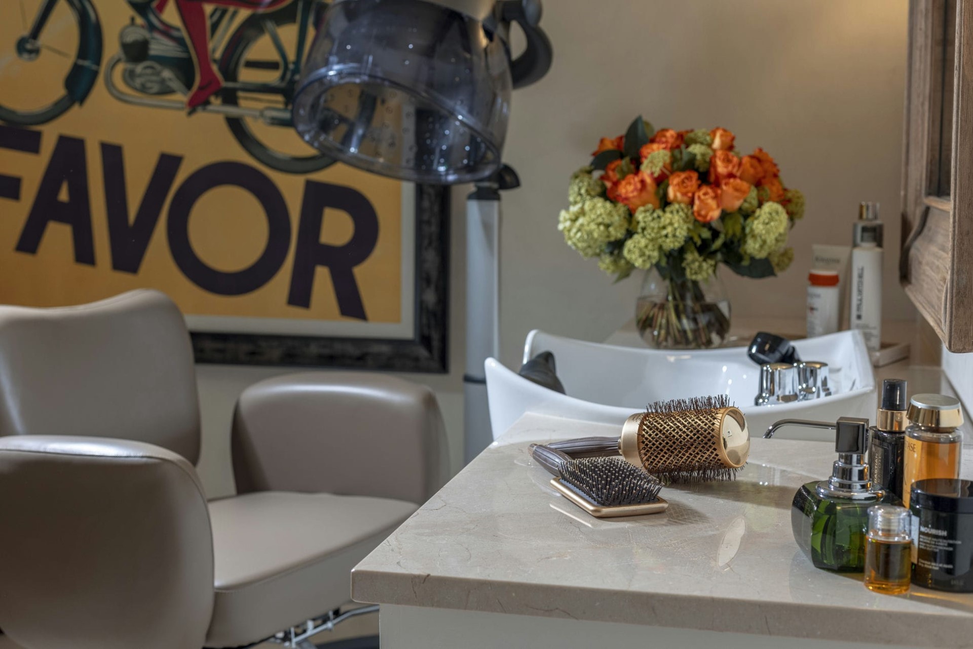 Within the grounds is a heated 25-metre lap pool lined with sun loungers, ideal for soaking up the rays or enjoying a holiday read under the shade of an umbrella. The adjacent pool house features a fully-equipped gym, two massage rooms, and a nail and hair salon for the ultimate relaxation.