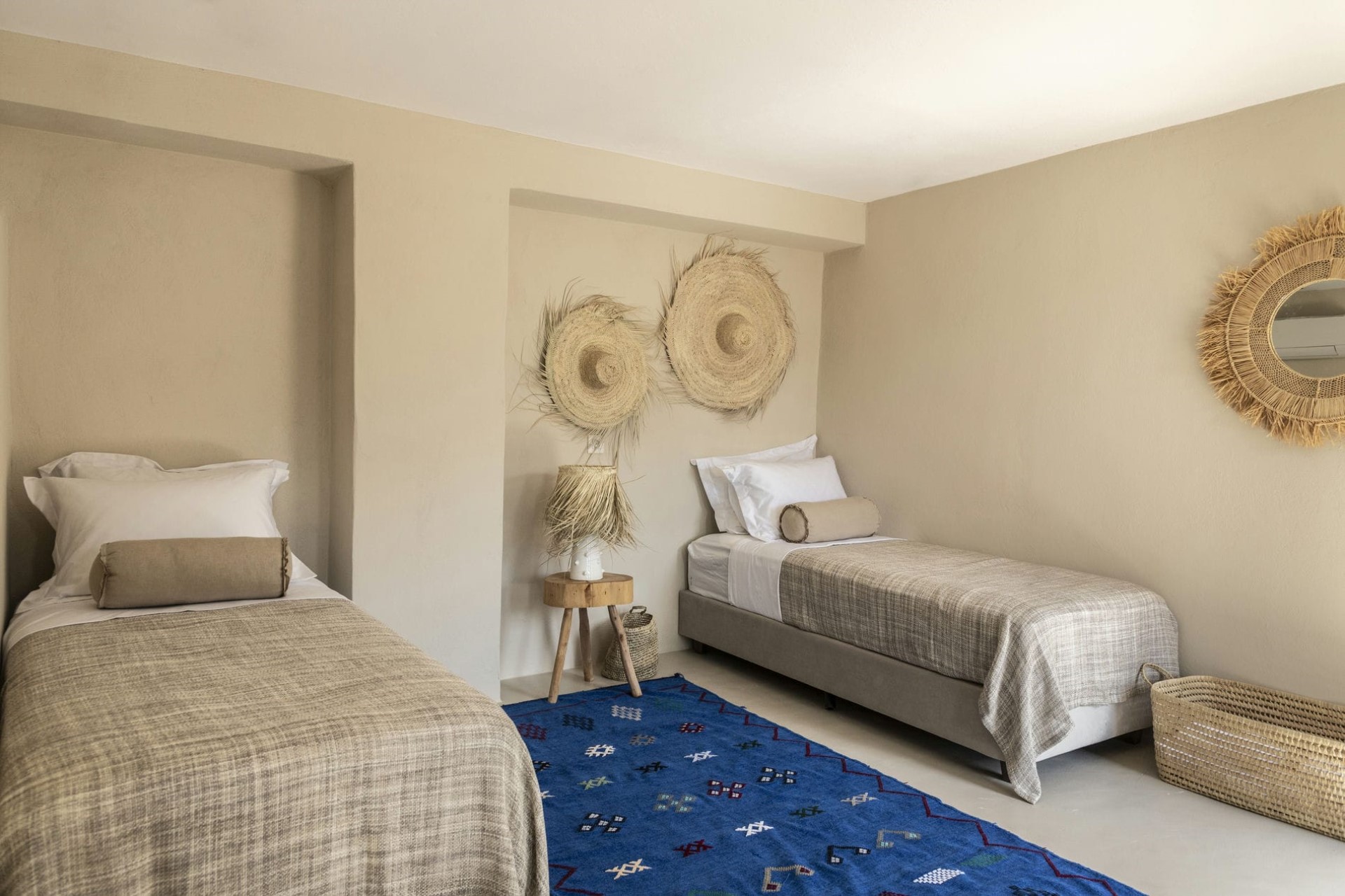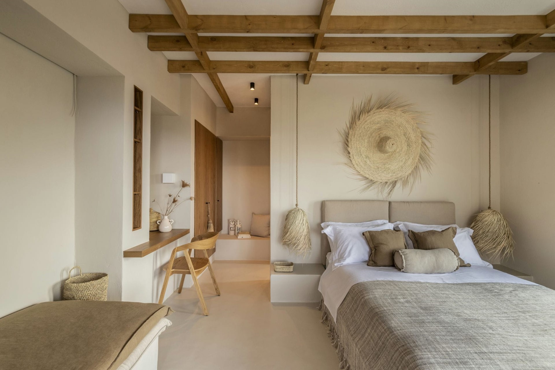 Karthea – king-size bed (converted to twins on request), en-suite bathroom with shower, and terrace access (NB: Bedroom has external access only)