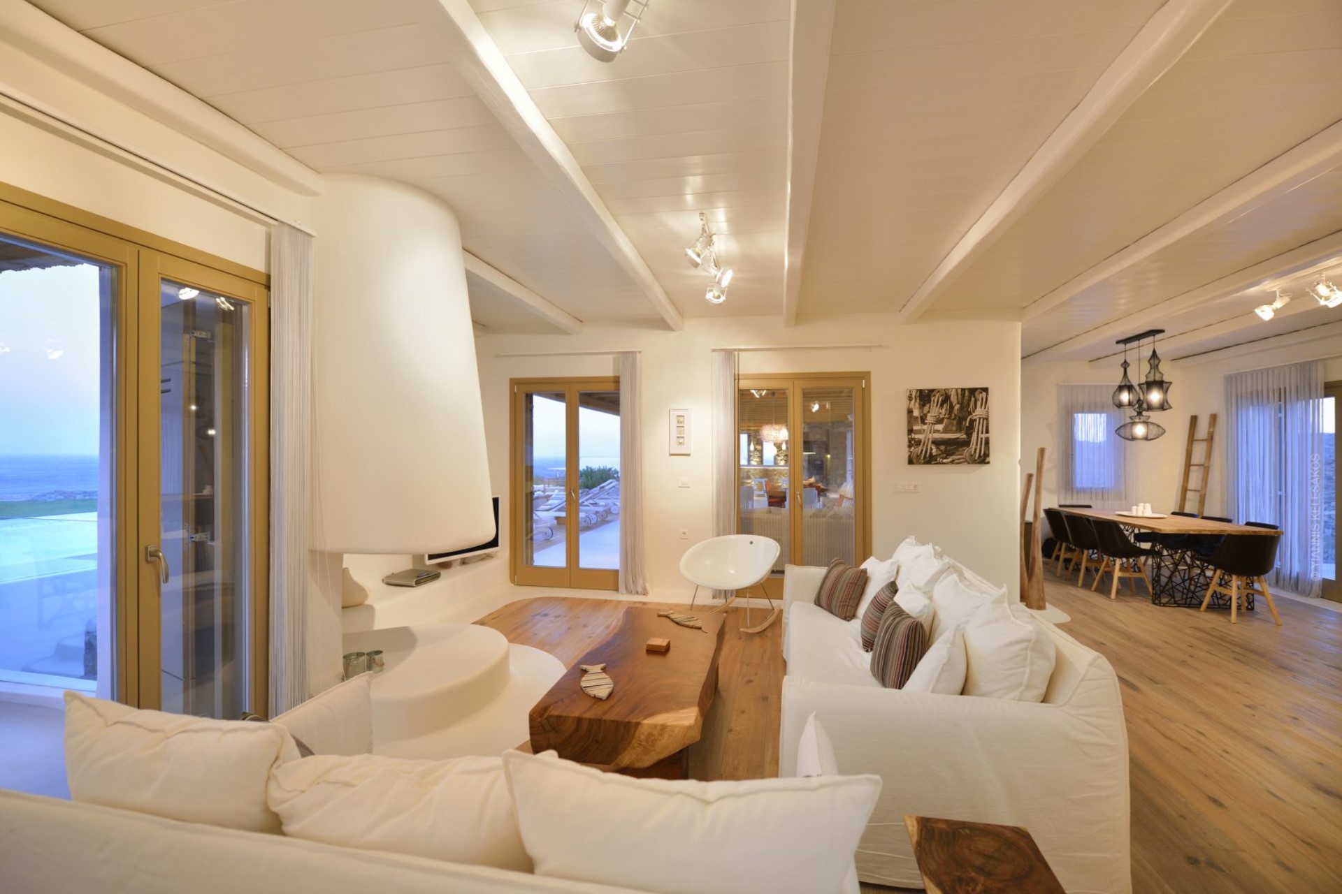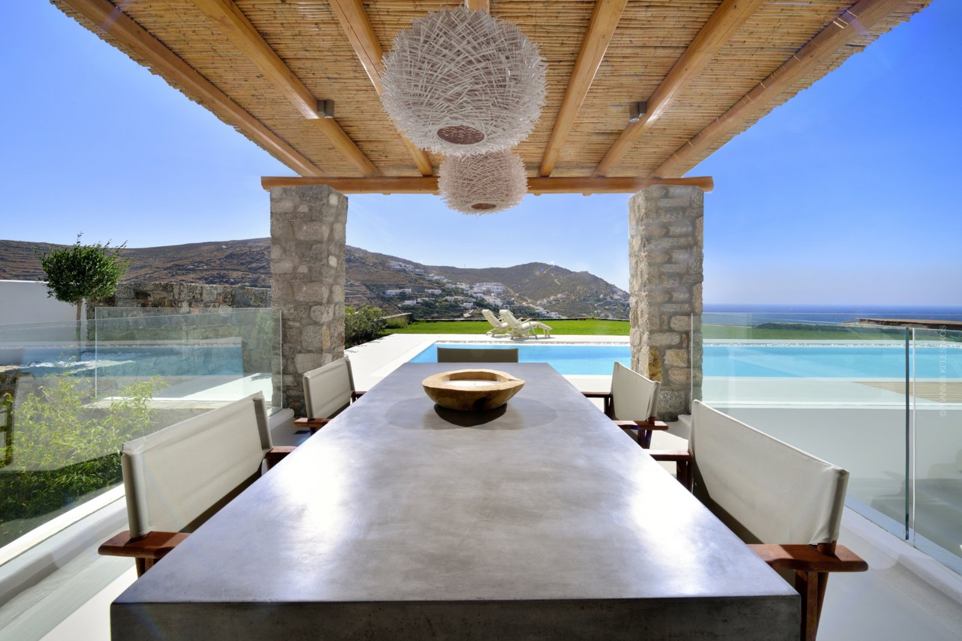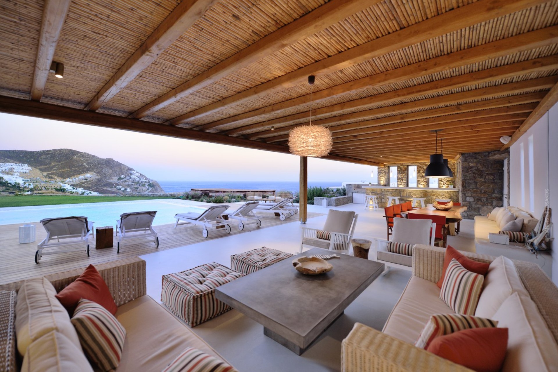 Splendid uninterrupted sea views of Naxos and Paros from a modern villa in Mykonos