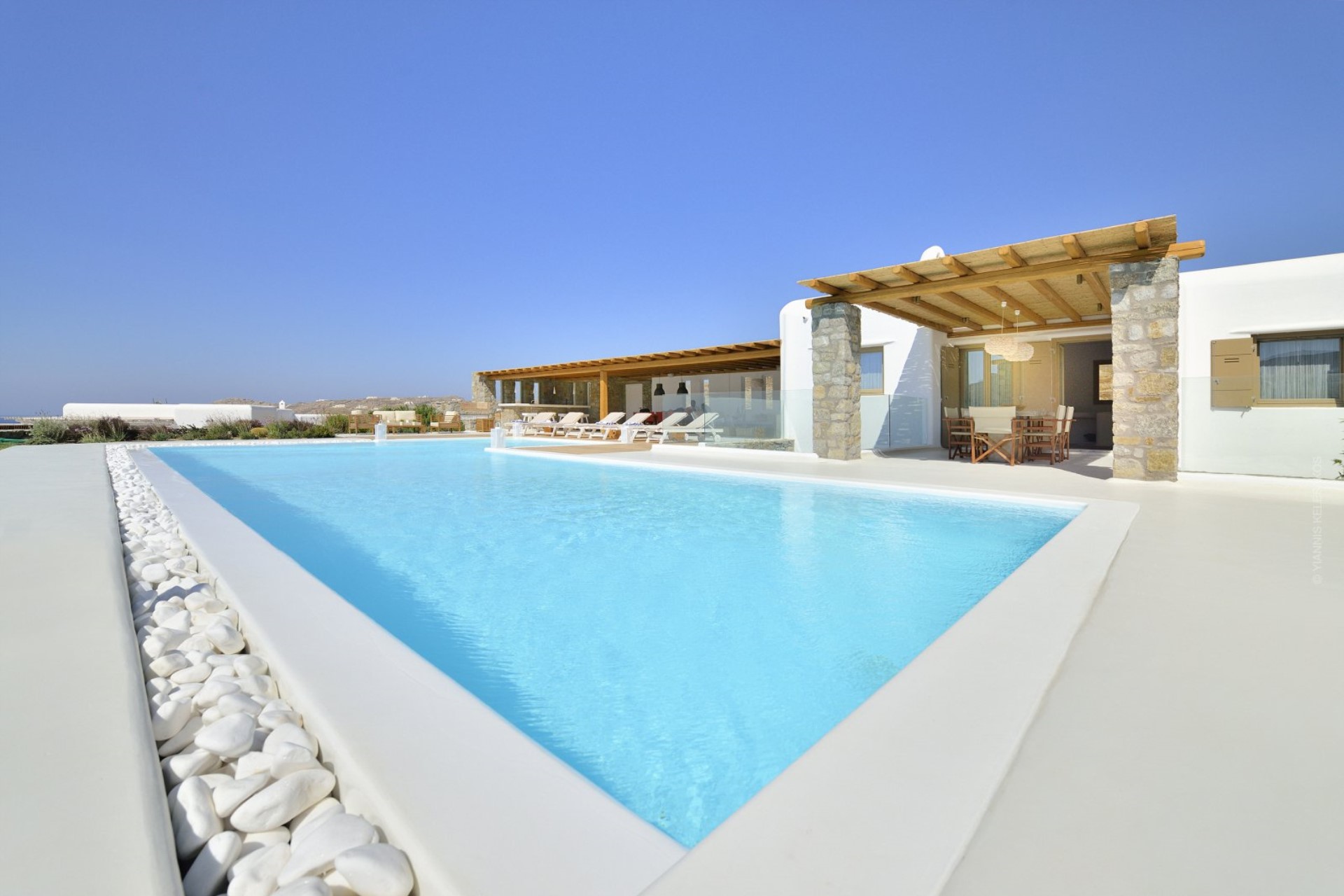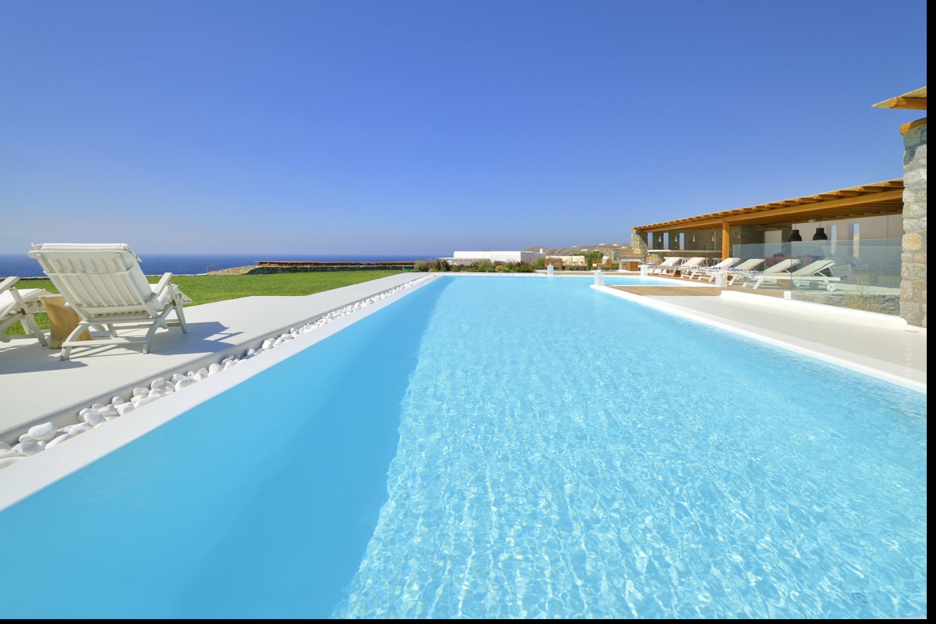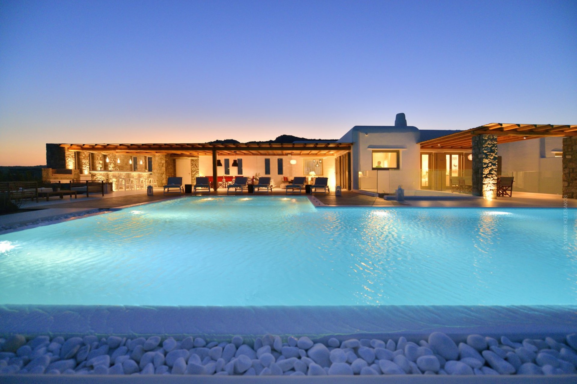 Splendid uninterrupted sea views of Naxos and Paros from a modern villa in Mykonos
