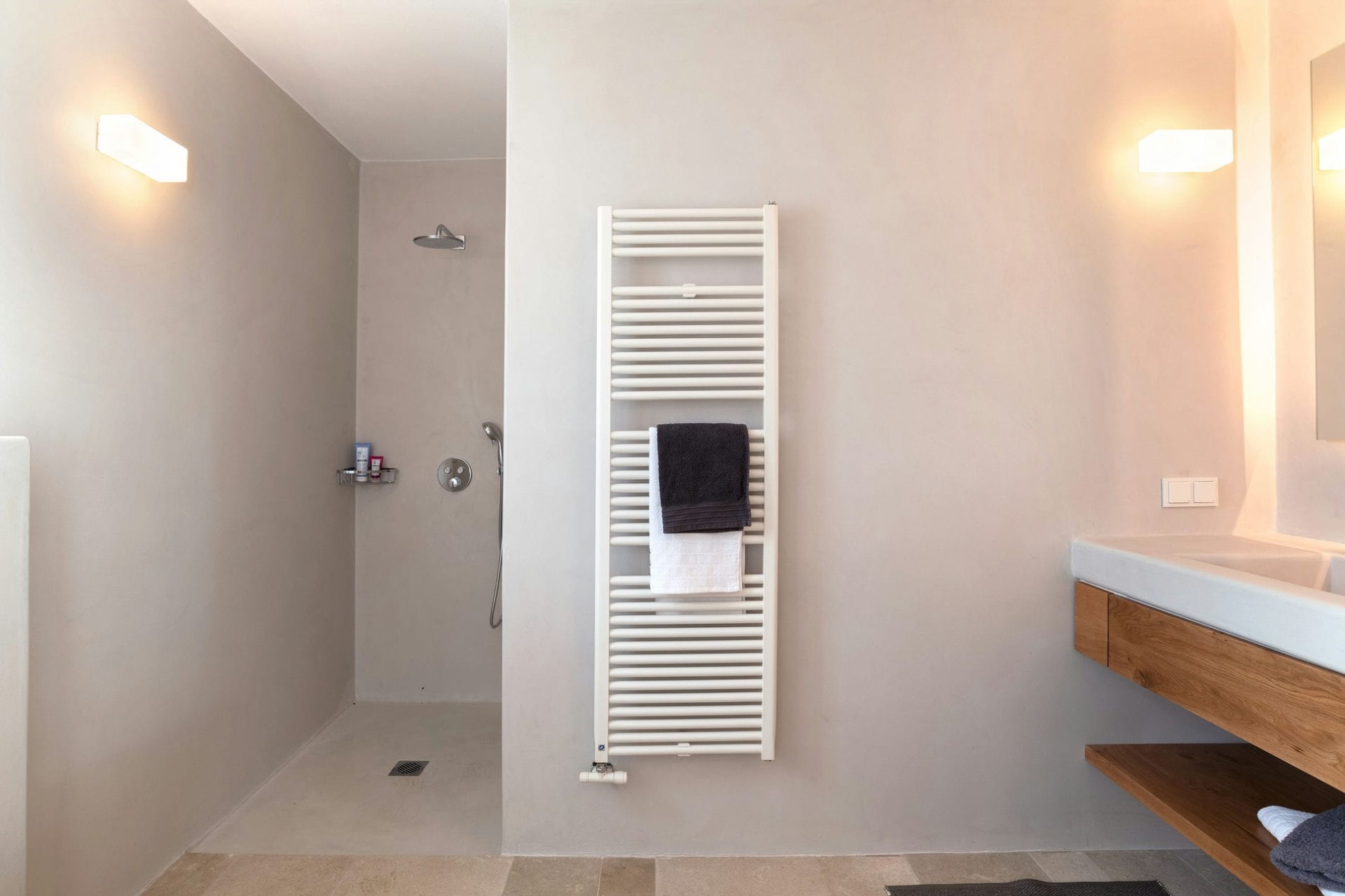 Up to 10 guests can be accommodated in the villa’s five en-suite bedrooms. On the ground floor is a double bedroom with a sitting area and direct terrace access, plus a second double room and a twin. The first floor is home to the master bedroom, which boasts a private sea-view terrace. In addition, there is a separate studio on the lower ground floor, perfect for those seeking more privacy. It comprises a large double bedroom with a sitting area, a kitchenette, and a peaceful private terrace with sea views.
