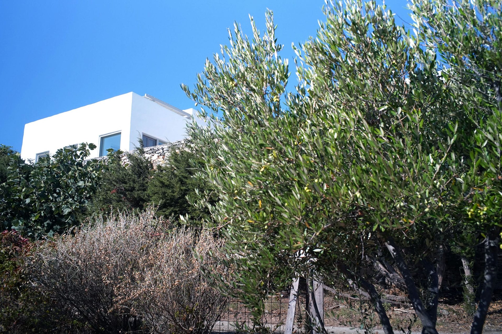 Villa Orian enjoys a peaceful location on the hills of Paros, overlooking the scrubland and the sea below. The nearest beaches are less than 10 minutes’ drive away.
