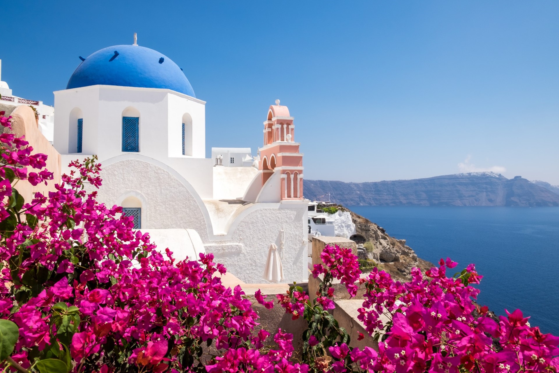 • The iconic blue-domed churches of Oia